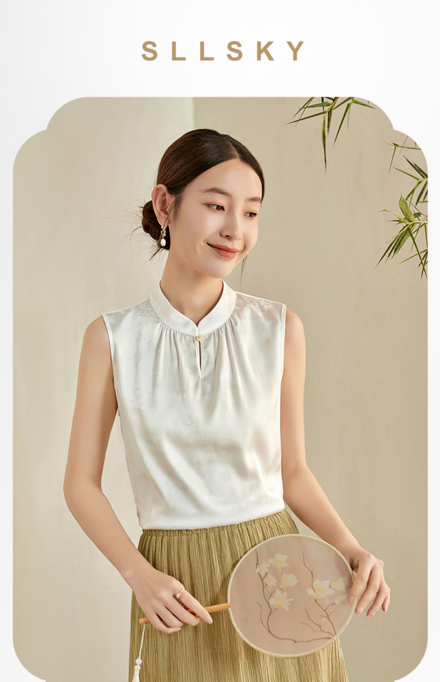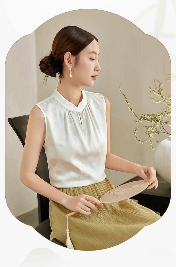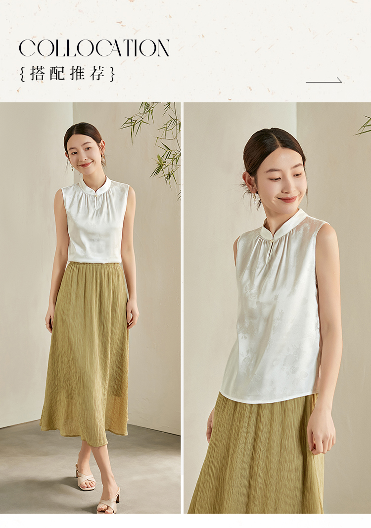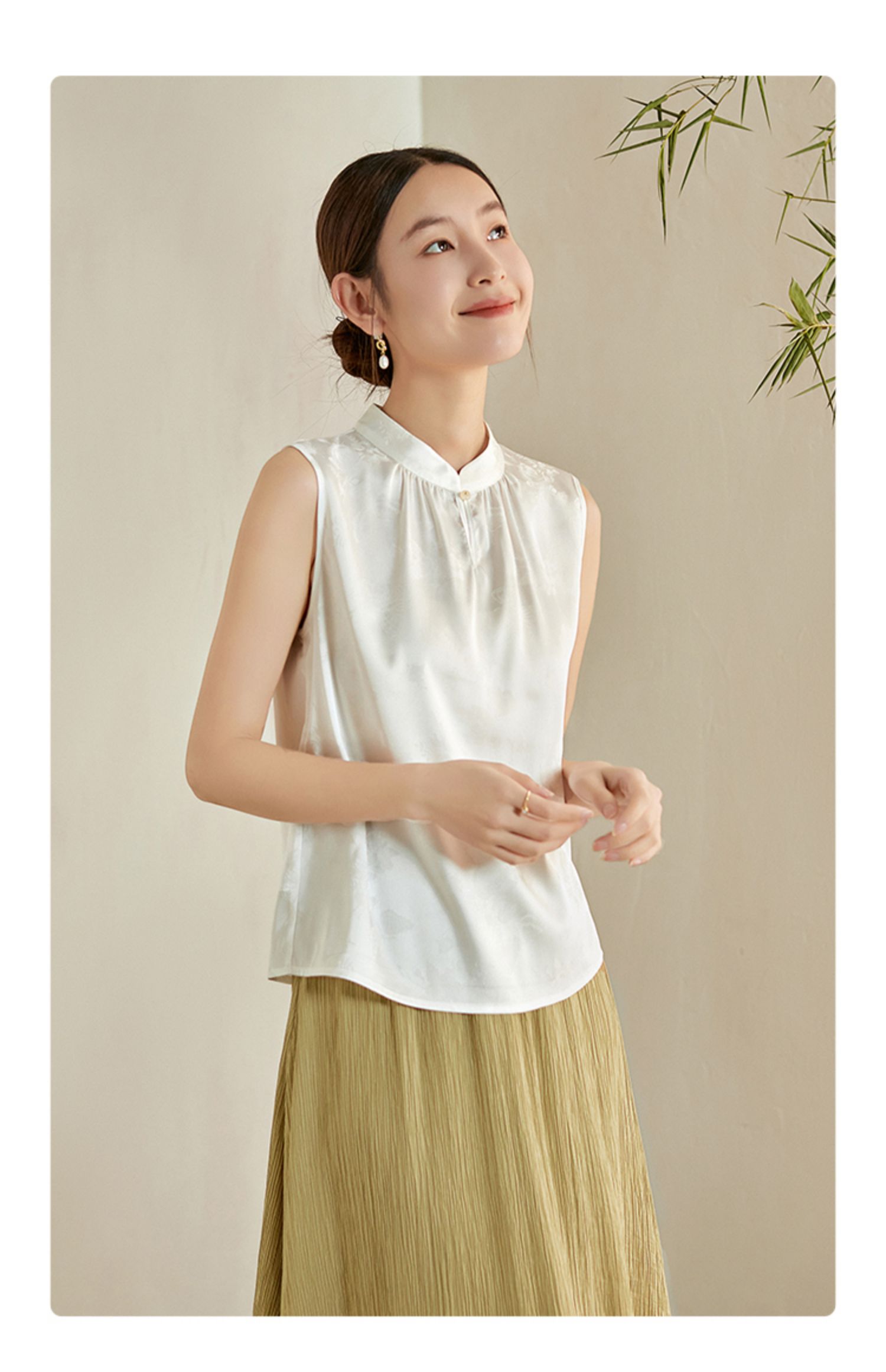 【1件72折】熙世界轻国风提花无袖雪纺衫女24年秋夏新款立领小衫内搭中式上衣