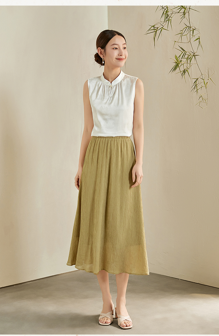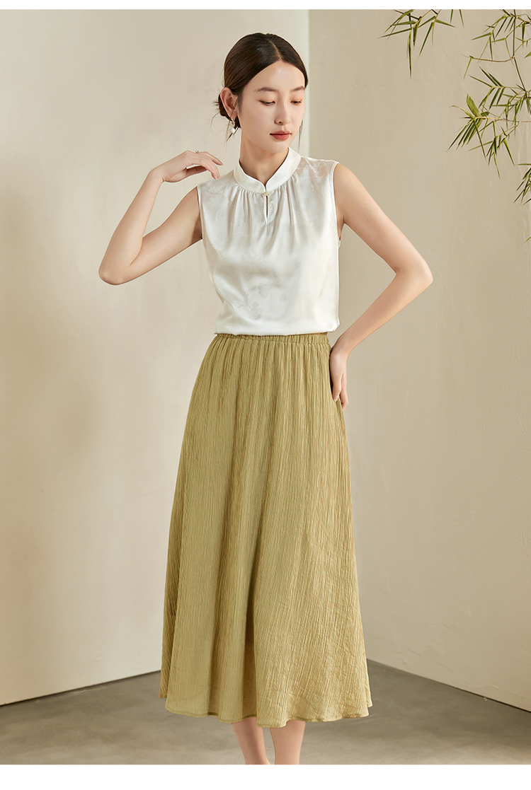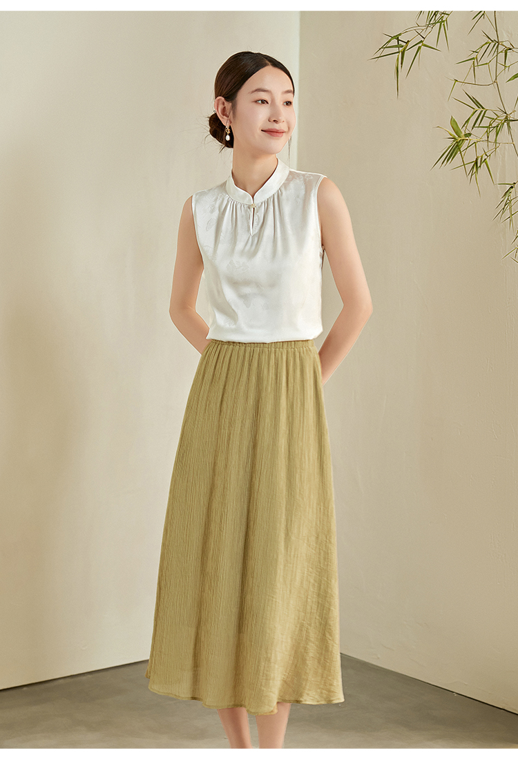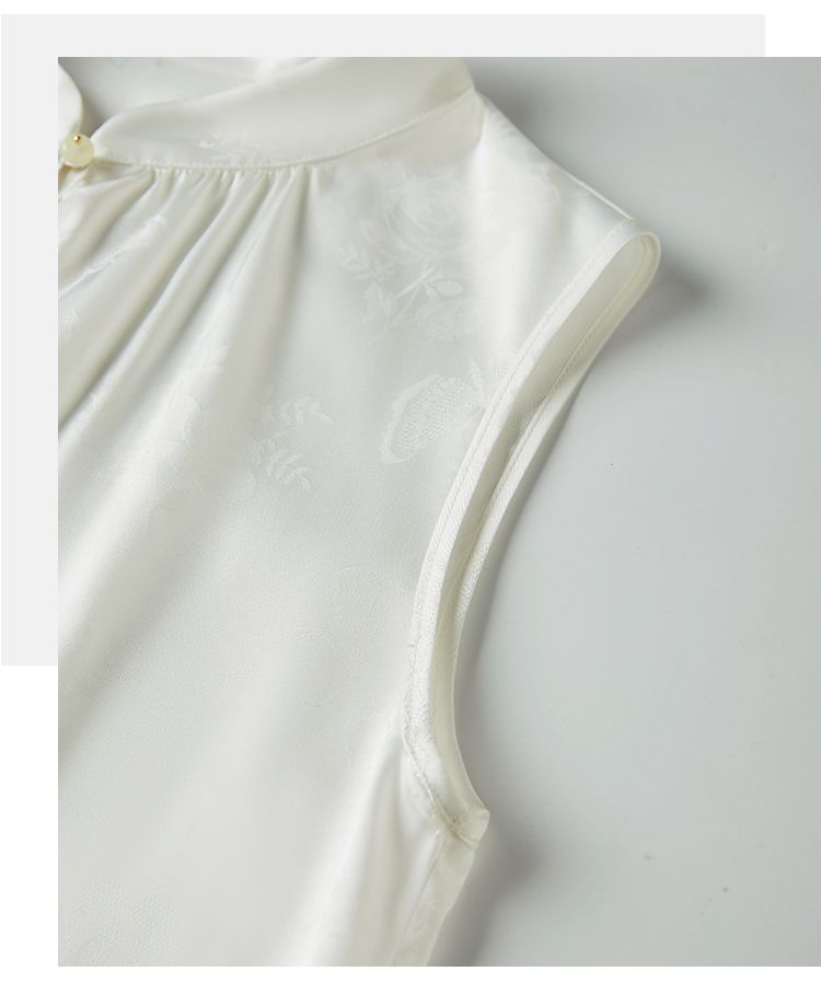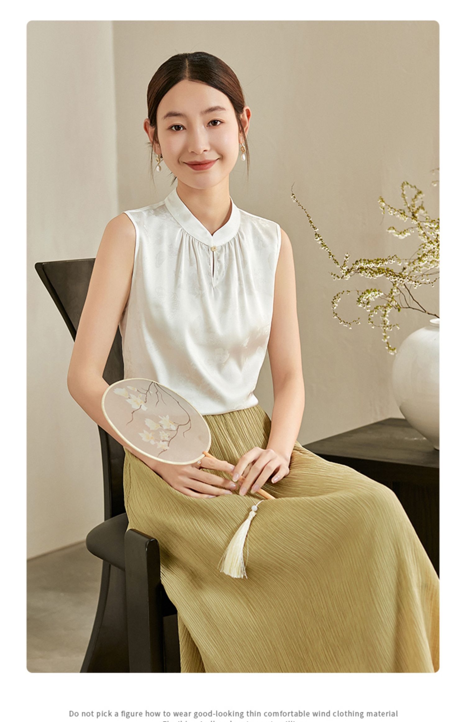 【1件72折】熙世界轻国风提花无袖雪纺衫女24年秋夏新款立领小衫内搭中式上衣