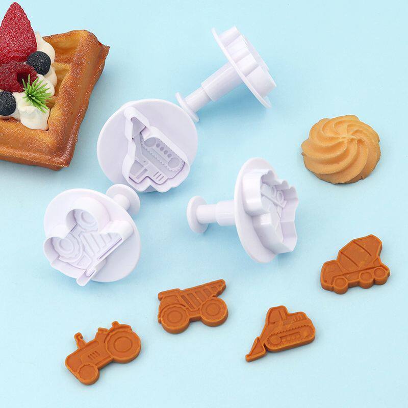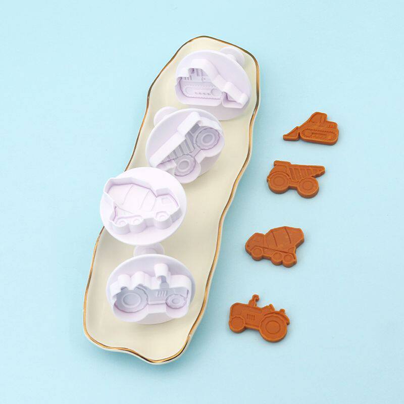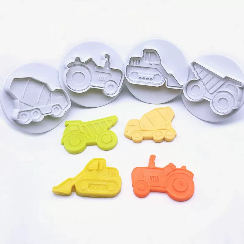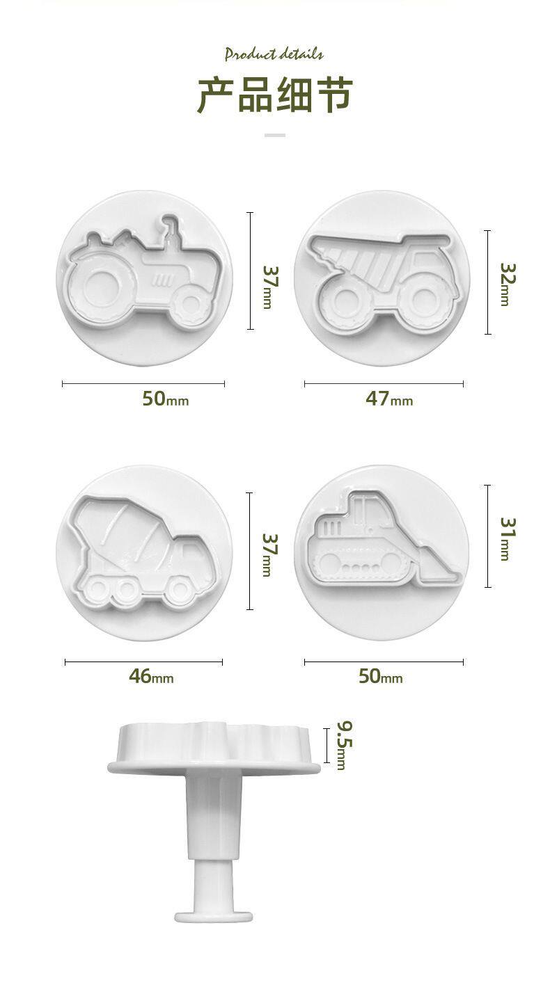 建筑车饼干模4件套 饼干翻糖模具 按压弹簧模 工程车饼干模