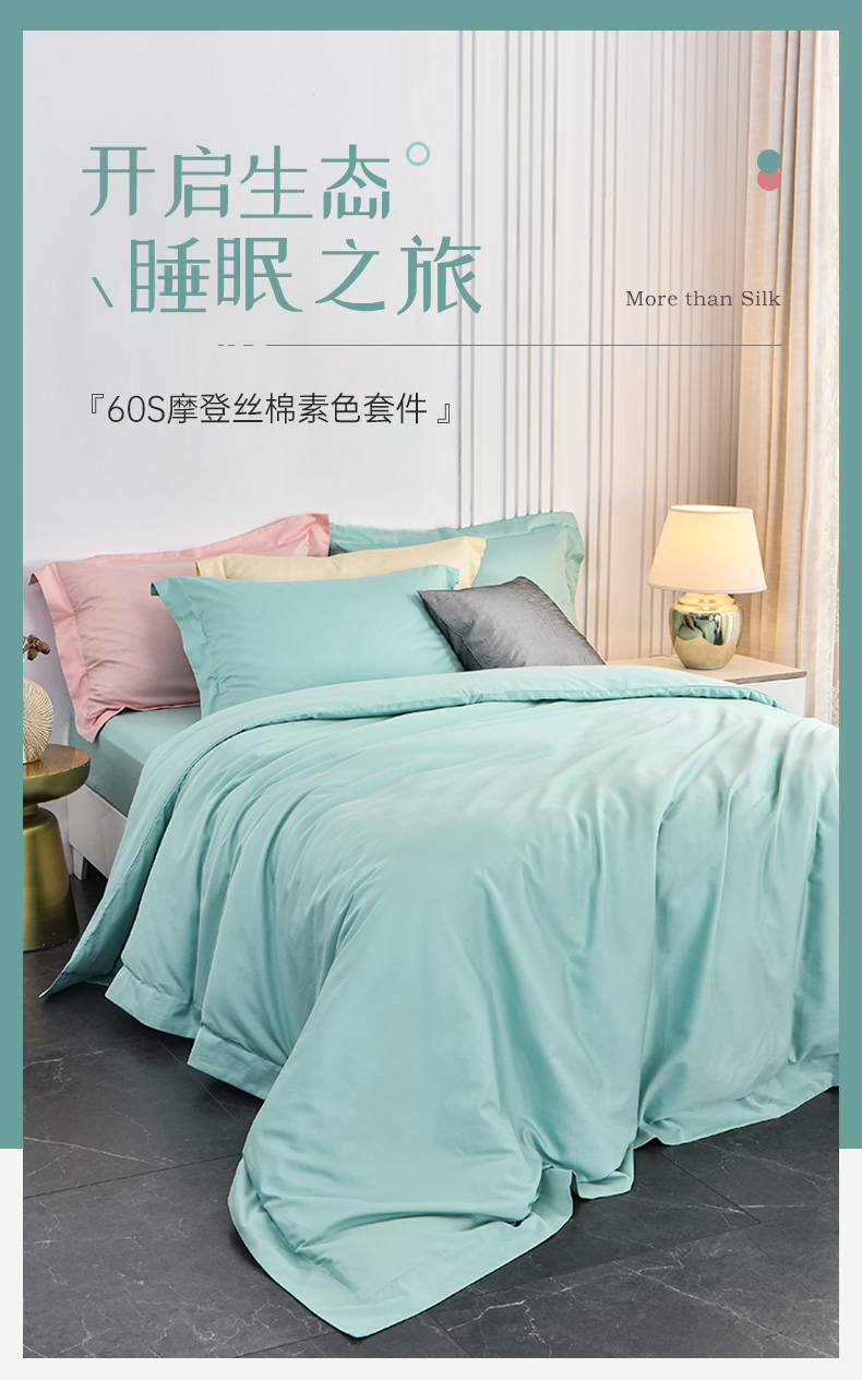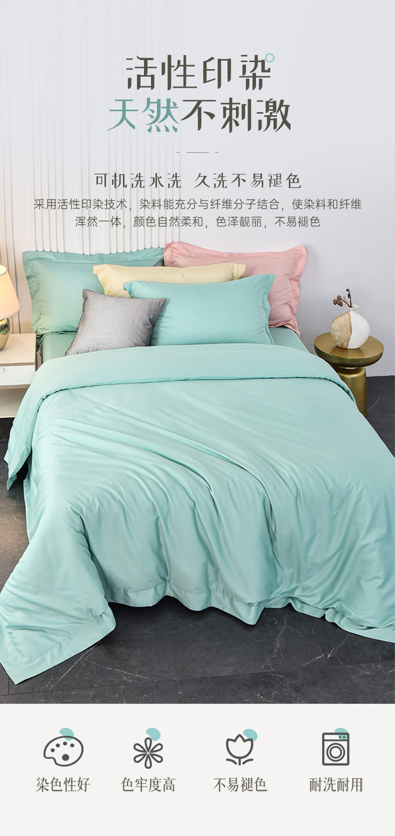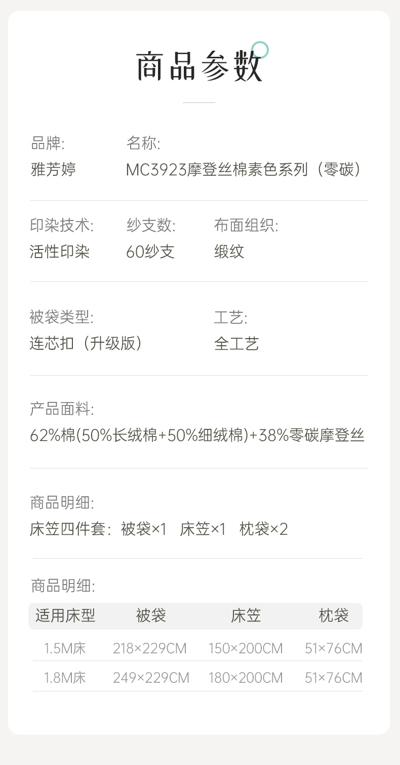 雅芳婷60S零碳摩登丝素色纯色系列连芯扣床上四件套被套枕套床笠四件套MC3923