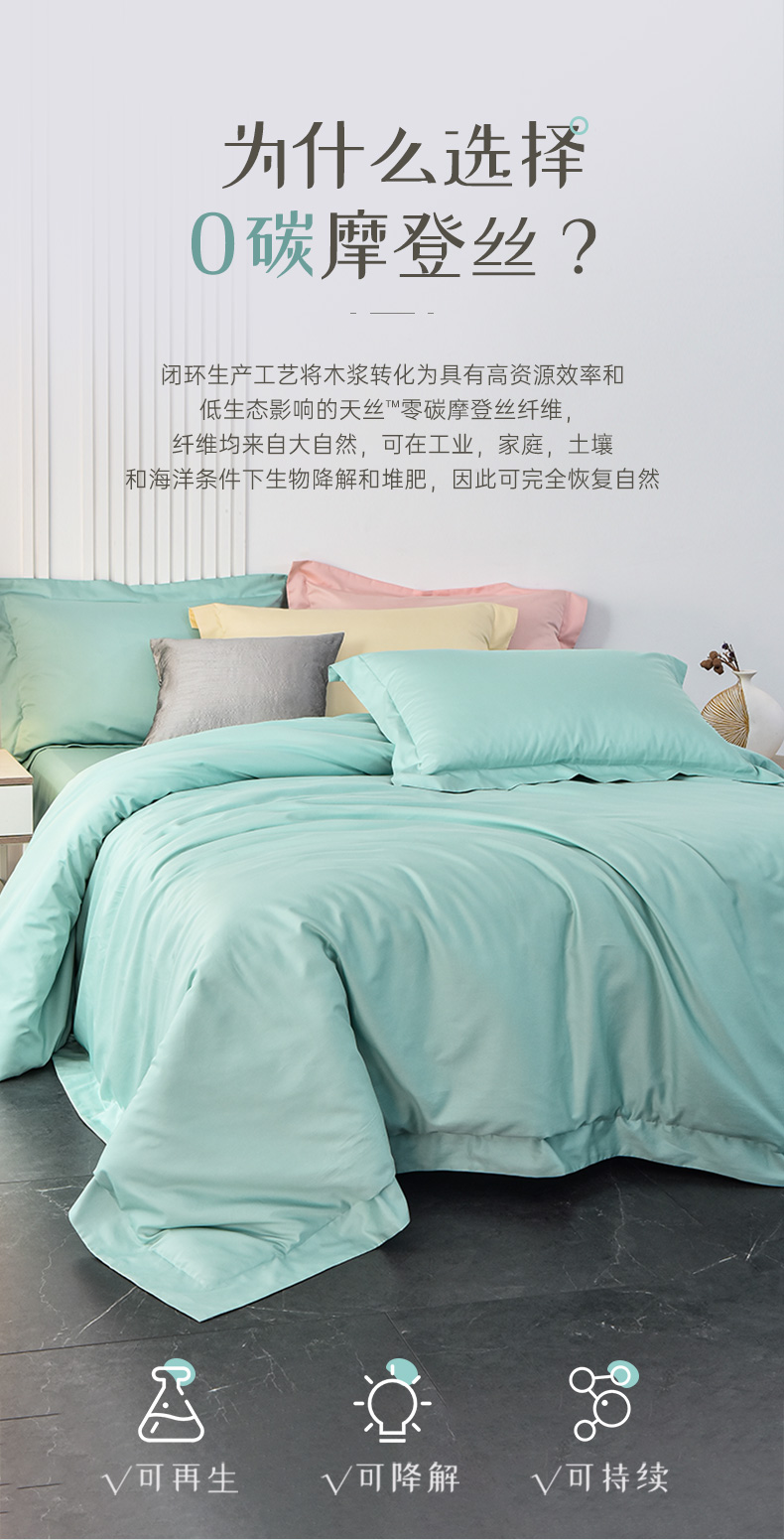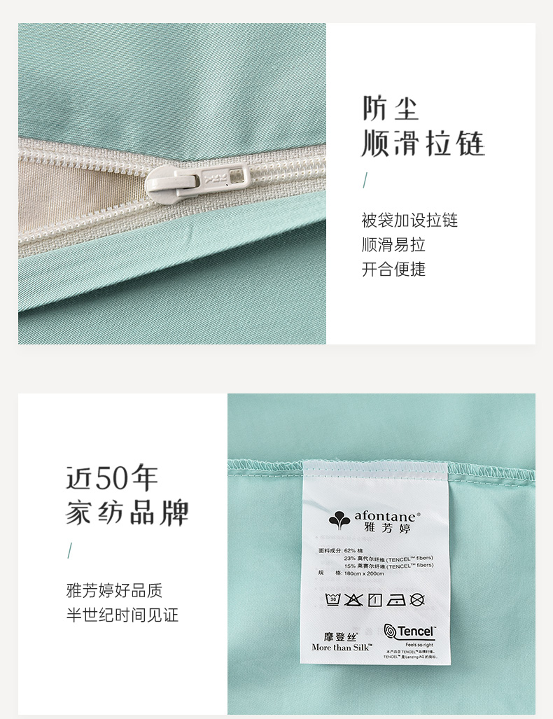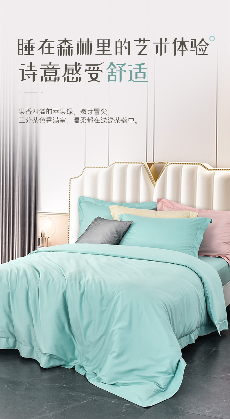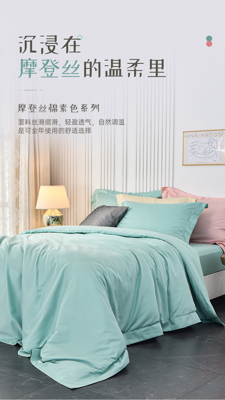 雅芳婷60S零碳摩登丝素色纯色系列连芯扣床上四件套被套枕套床笠四件套MC3923