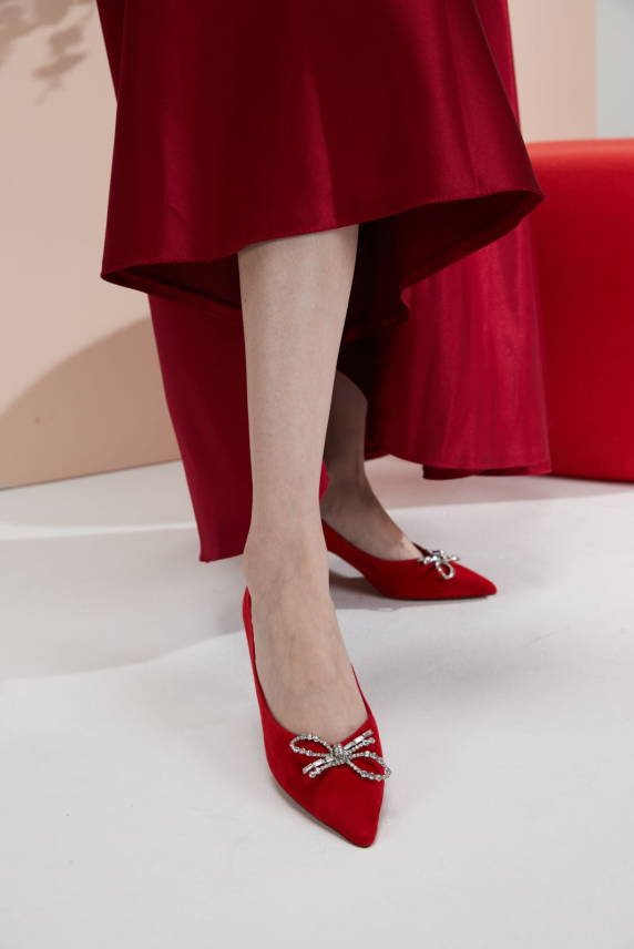 西村名物时尚蝴蝶结名媛尖头高跟鞋X21AE11371