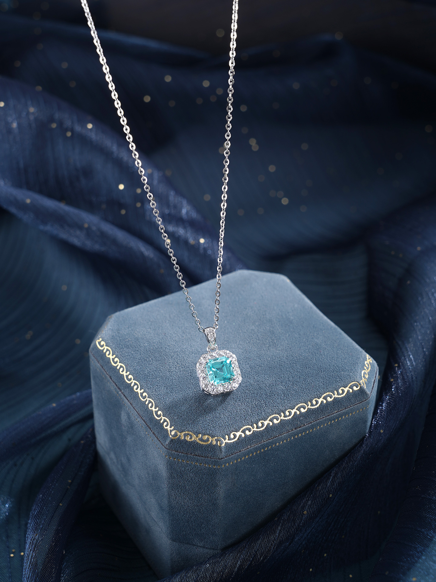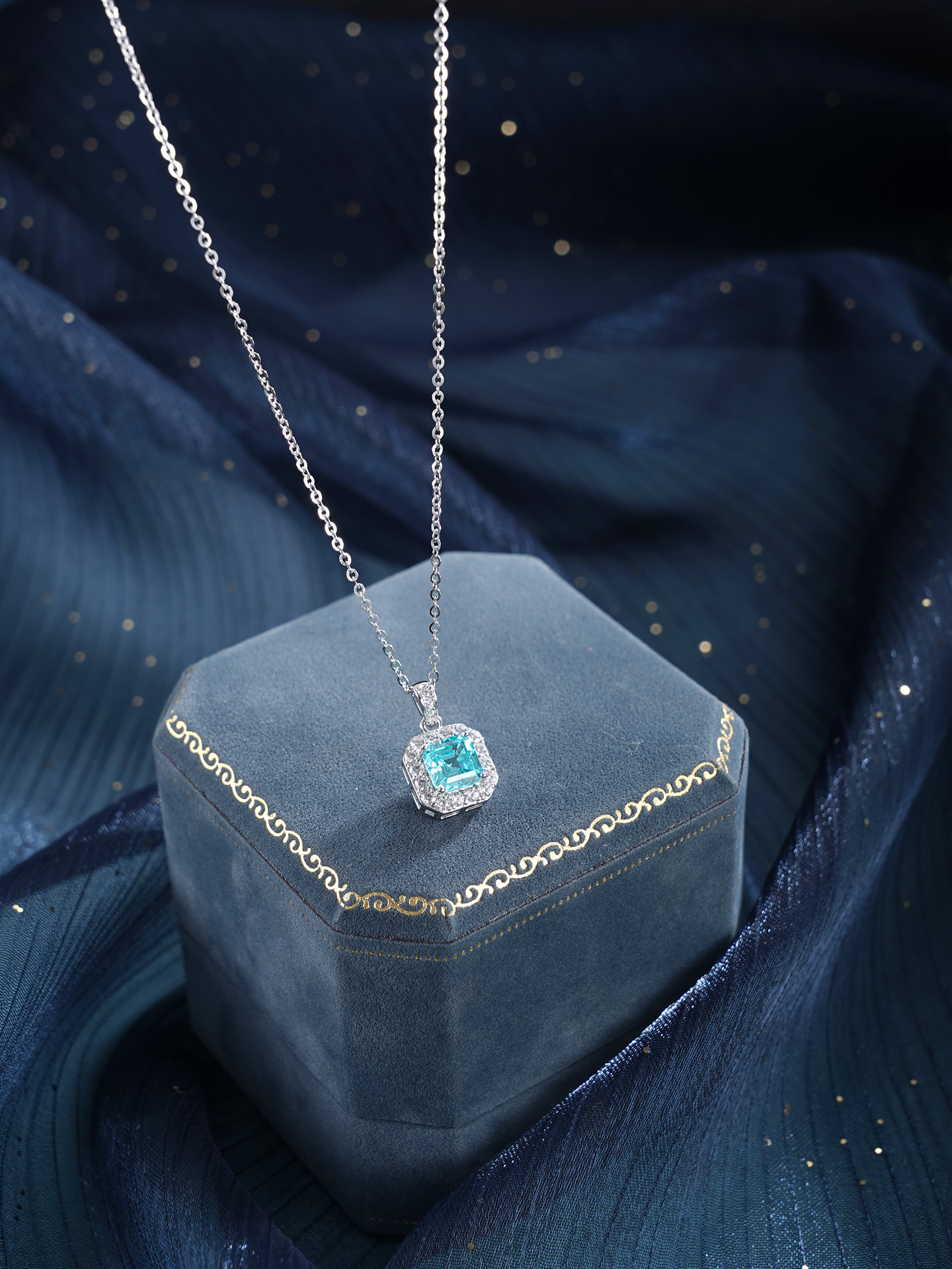 子佩集【蓝色星宇】S925银套链【PM2295-XF】培育宝石帕拉伊巴蓝碧玺小方块2510