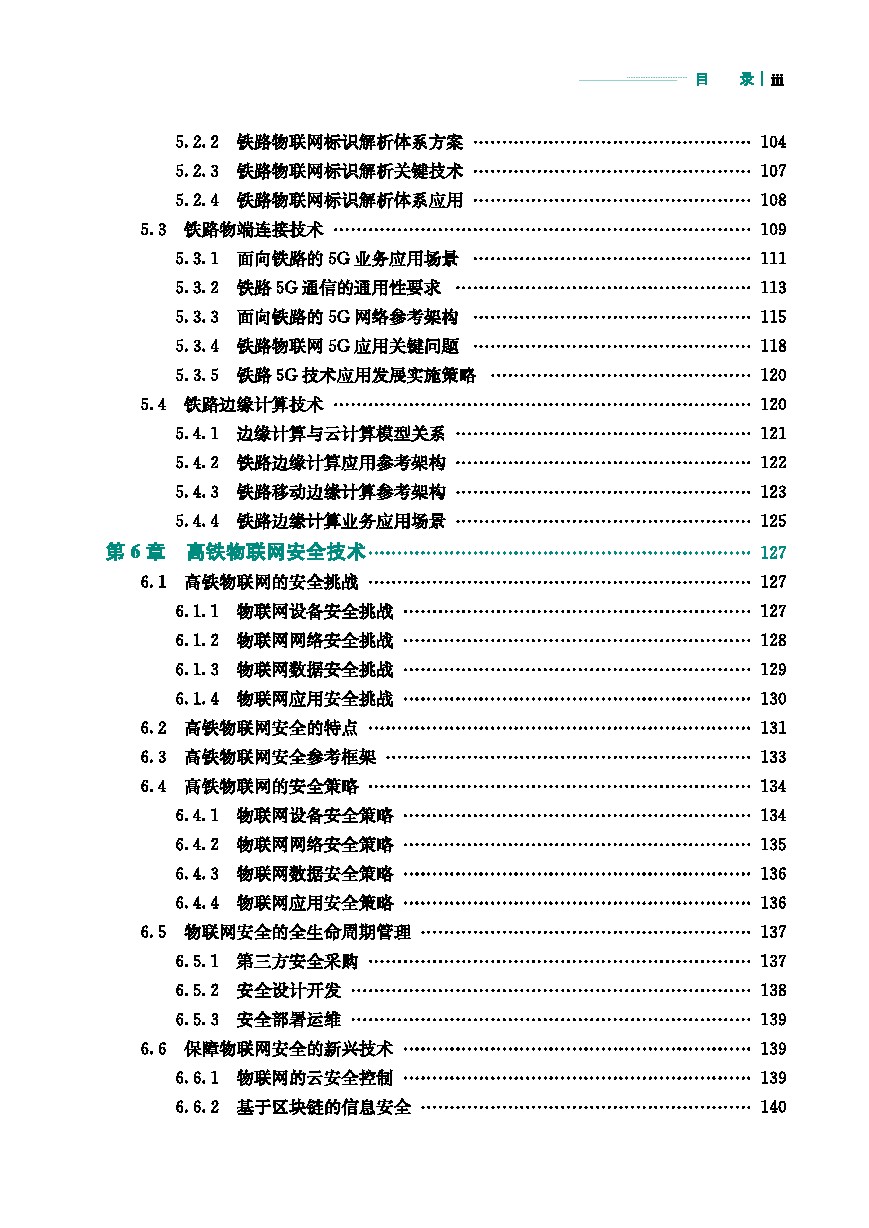 本书为“高速铁路基础研究与技术创新丛书”之一。本书结合铁路智能转型战略发展要求,着眼于行业信息化发展现状,填补了铁路物联网应用技术研究的空白。全书共七章,内容包括:高速铁路物联网概念、总体框架、数据采集体系、服务平台、核心技术、安全技术以及创新应用实践。全书共包括七章。第一章为本书绪论,阐述了高铁物联网的概念内涵、国内外现状、总体目标和建设原则;第二章深入分析高铁场景物联网技术不同层次应用需求,提出了高铁物联网总体框架、业务应用体系、技术架构、网络架构和标准体系;第三章梳理分析客运、高铁快运、机车车辆、工务、供电、电务、工程建造等高铁各专业物联网感知需求,形成高铁物联网数据采集体系;第四章描述铁路物联网平台,包括其基本定位、系统架构、主要功能和关键技术;第五章论述感知、标识解析、物端链接、边缘计算等铁路物联网核心技术;第六章重点分析铁路物联网面临的安全挑战、特点、参考框架与对应策略;第七章主要介绍高铁客运站和高铁动车段两个物联网赋能的高速铁路创新应用实践。