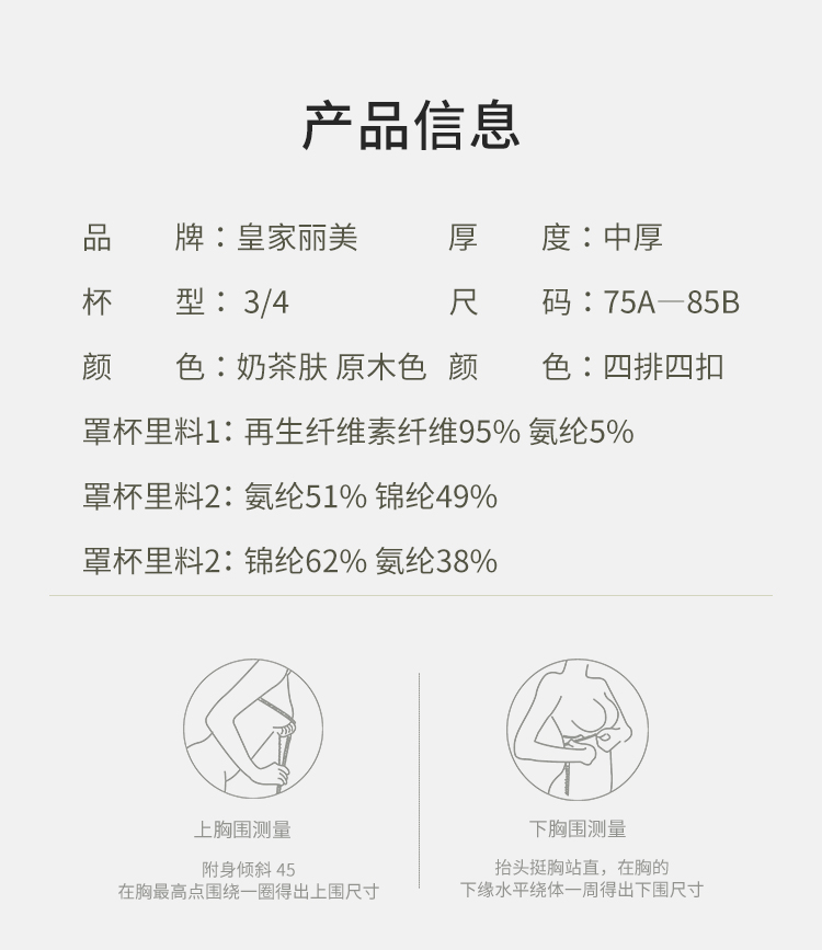 皇家丽美调整型抗菌内杯聚拢防下垂内衣收副乳提拉托举无圈文胸WW2501-3