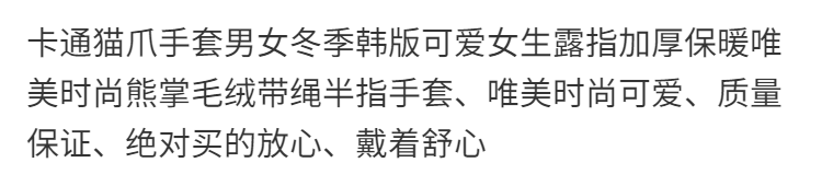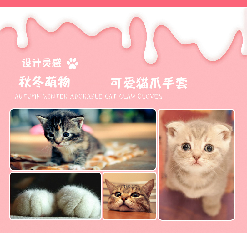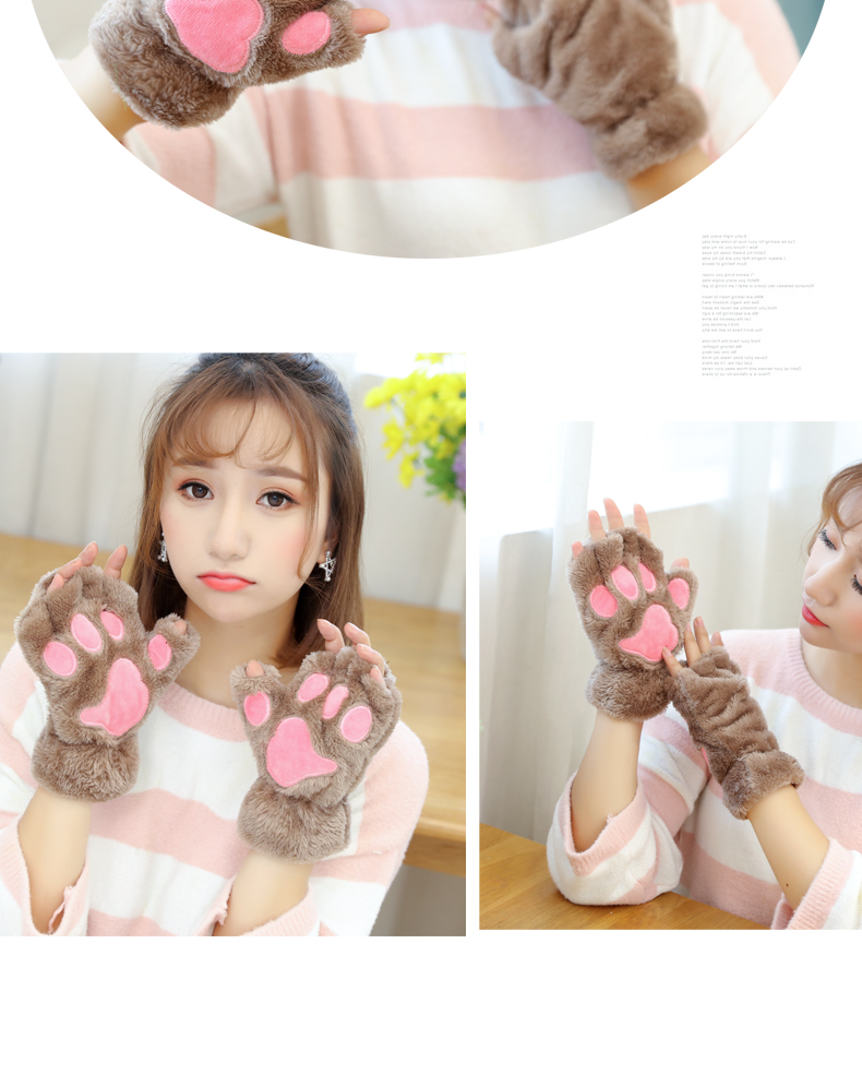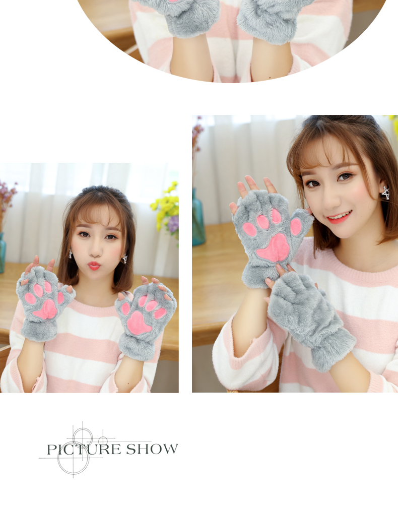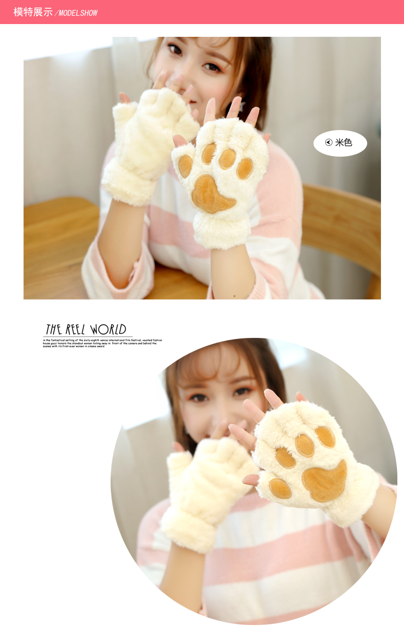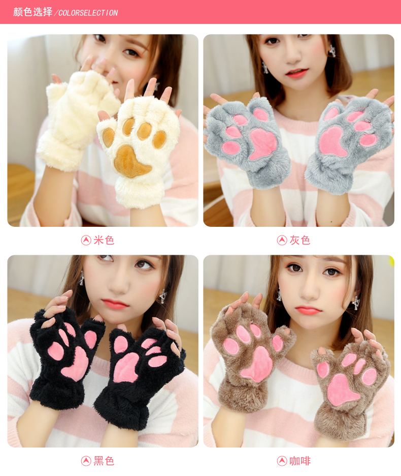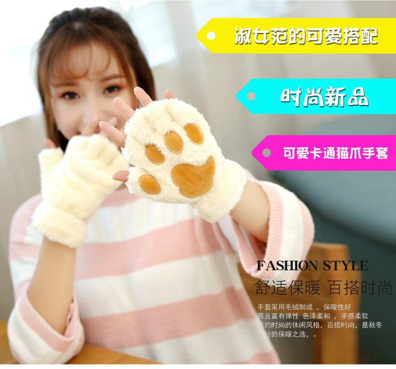 【卡通猫爪手套】男女加绒加厚半指手套保暖猫爪露指毛绒学生儿童居家日用