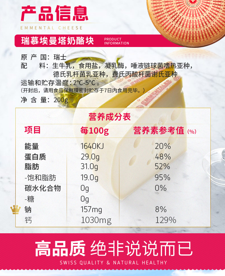 瑞慕瑞士原装进口Emmental埃曼塔大孔奶酪原制芝士片即食干酪块200g/150g