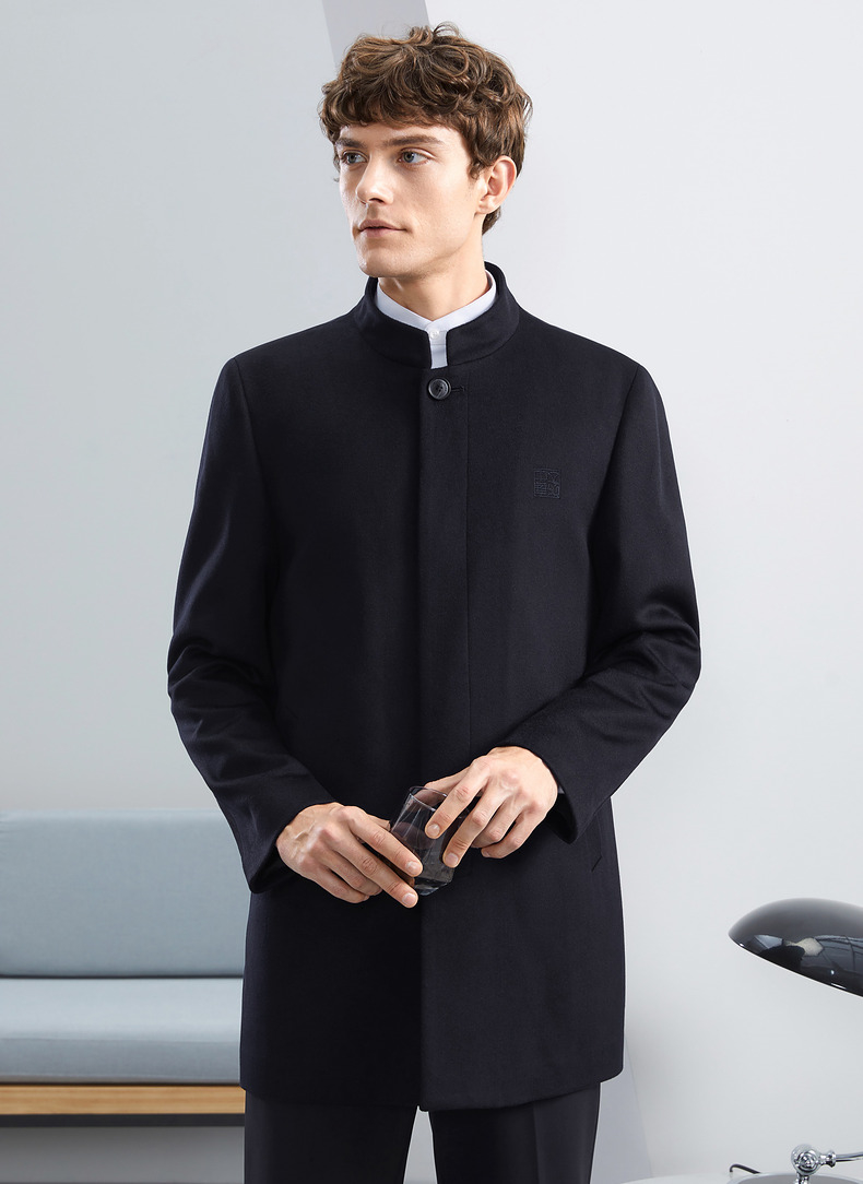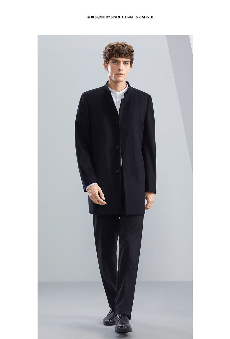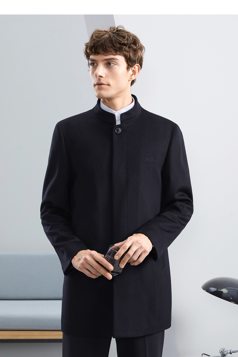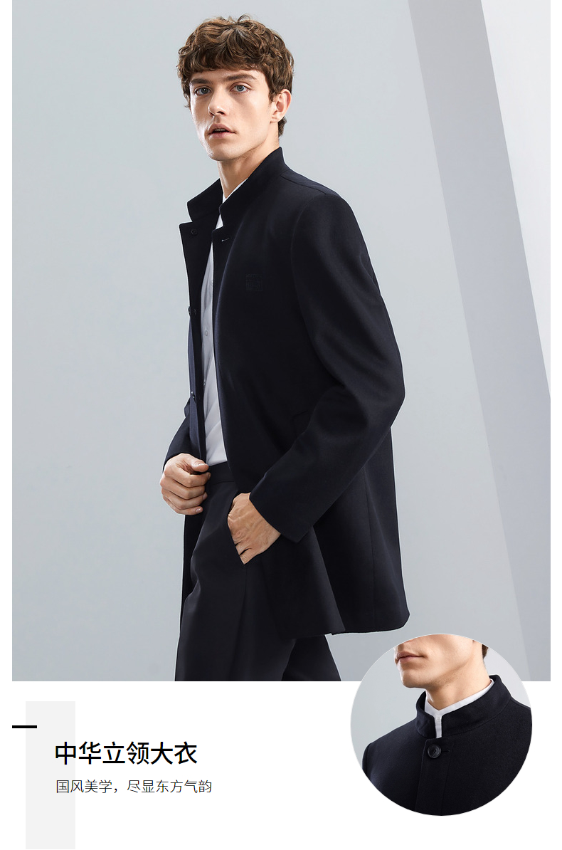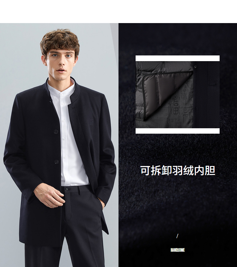【中华立领】柒牌男士毛呢大衣冬季厚款可拆卸羽绒内胆含羊绒外套 125D70310