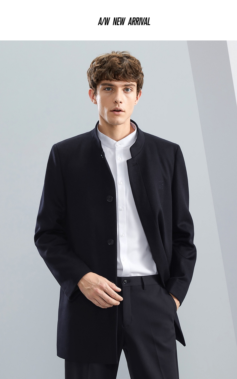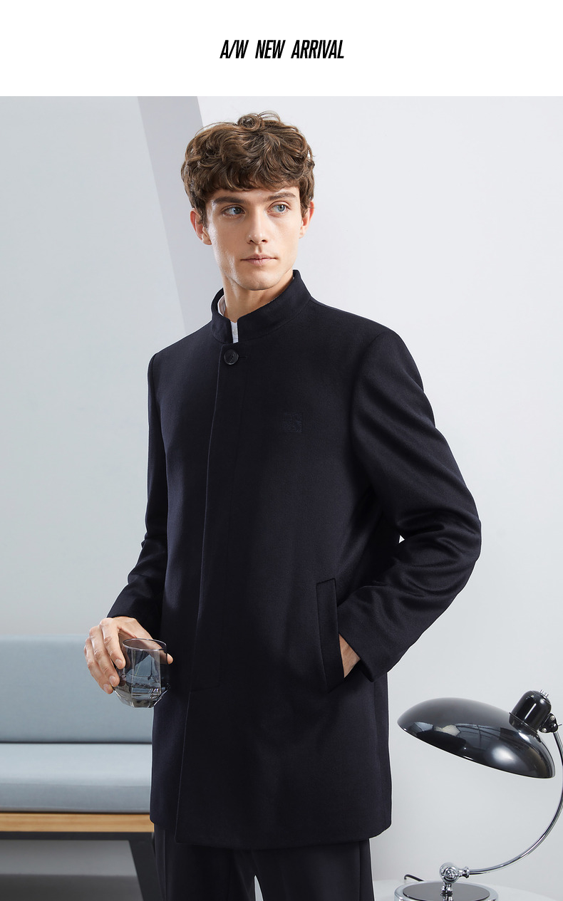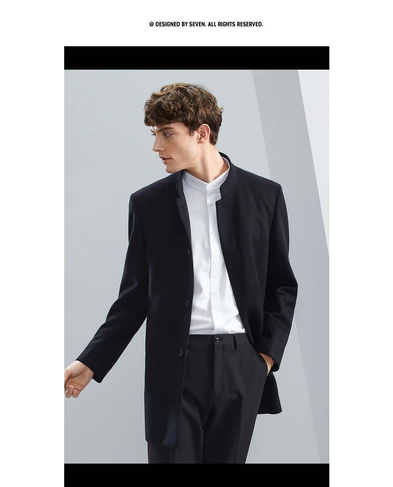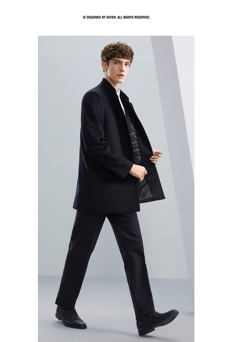 【中华立领】柒牌男士毛呢大衣冬季厚款可拆卸羽绒内胆含羊绒外套 125D70310