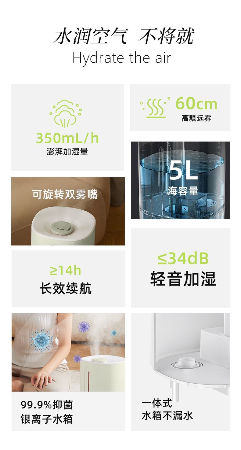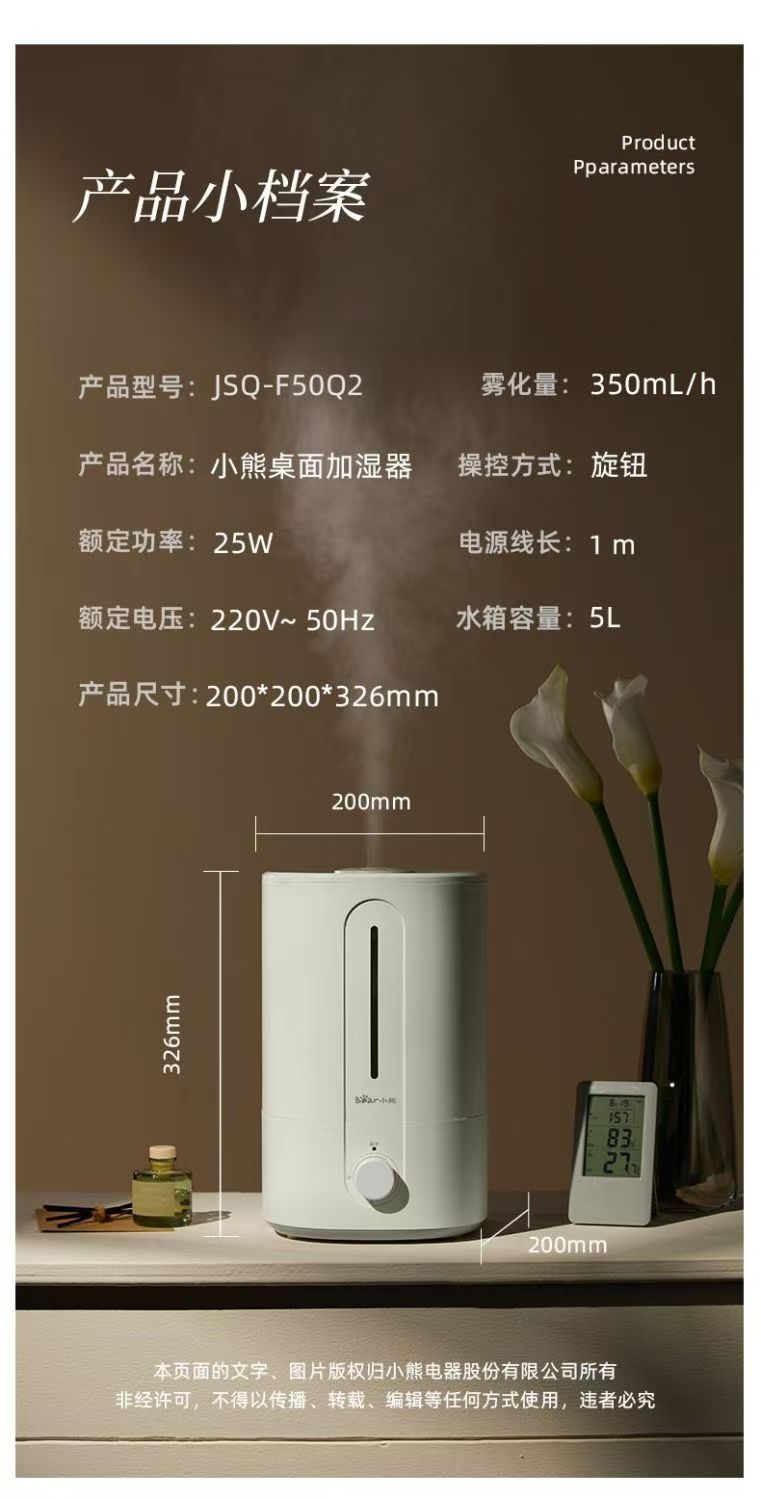 小熊加湿器低音卧室空调房母婴婴儿空气净化家用净化宿舍加湿器