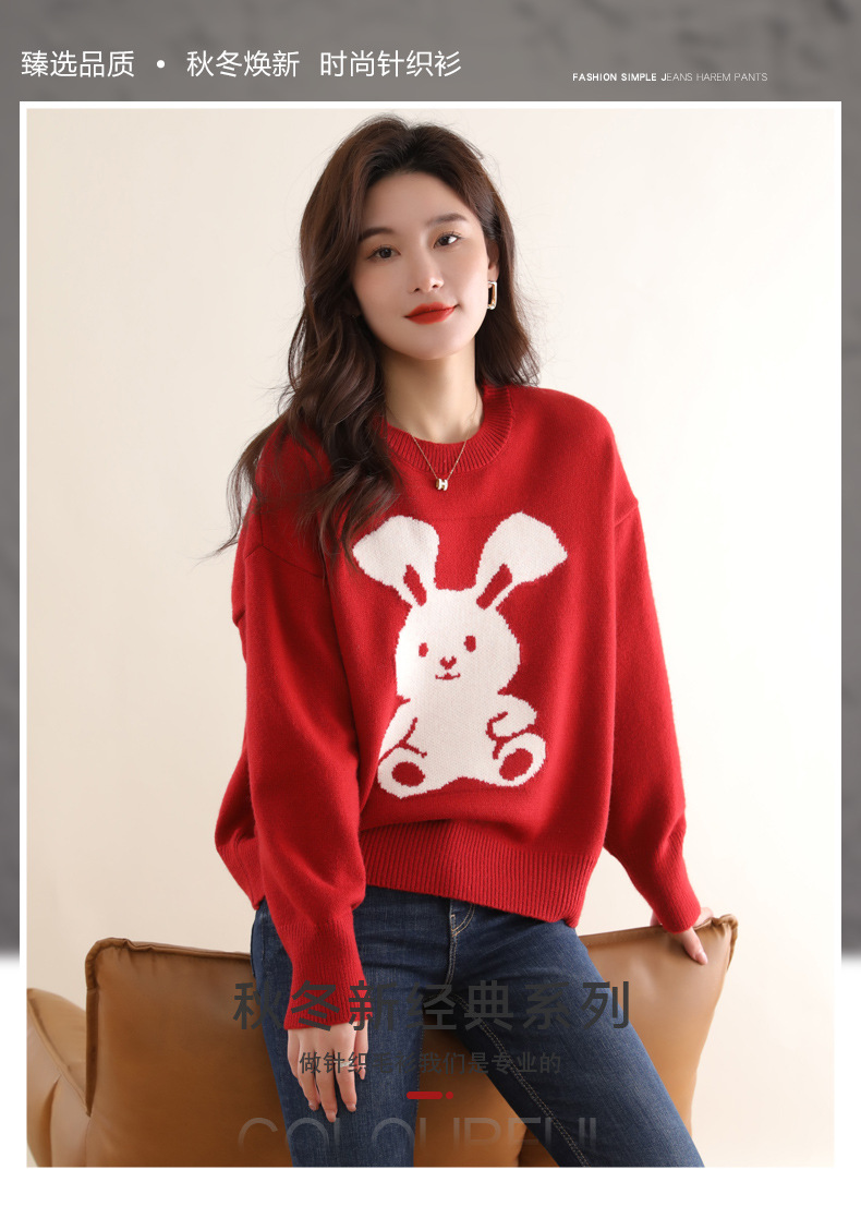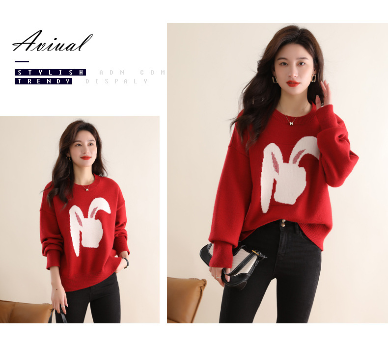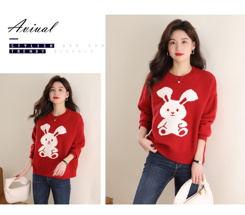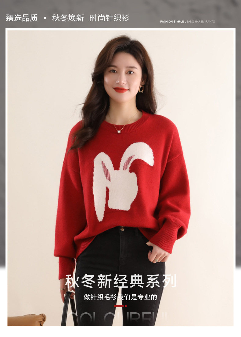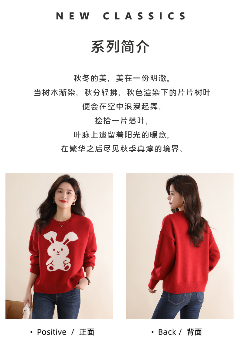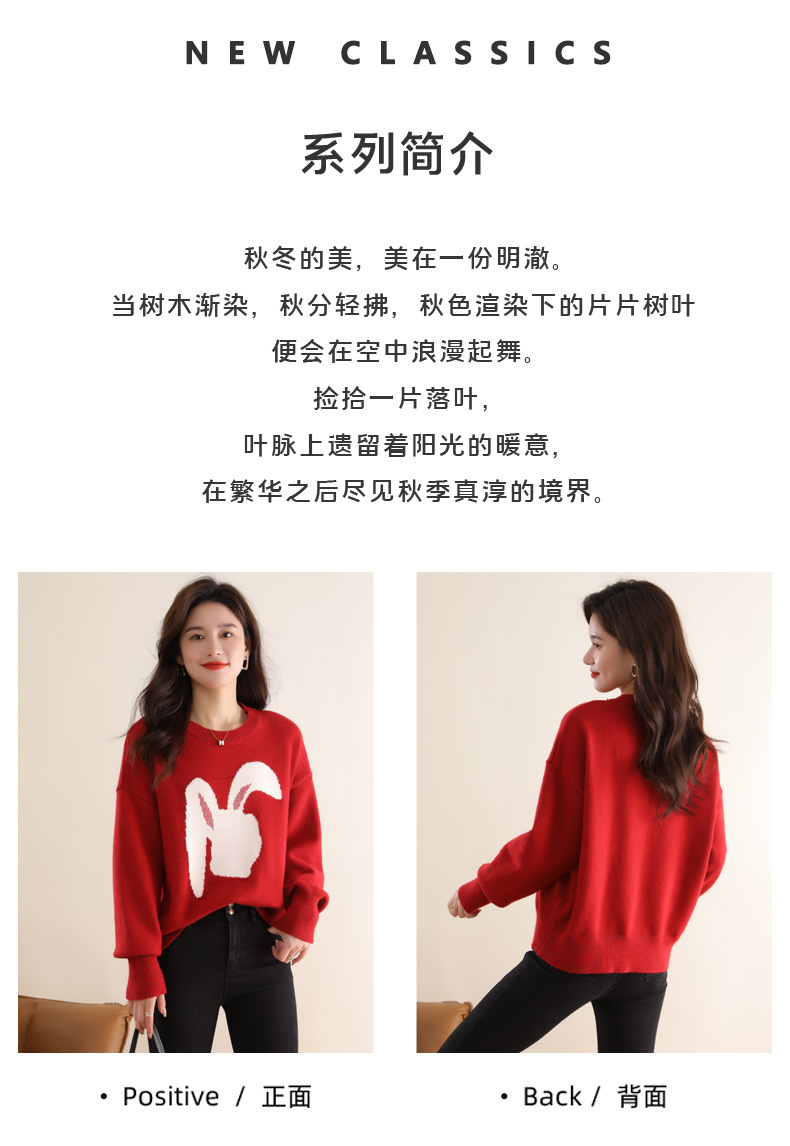 兔年本命年衣服红色毛衣,时尚女装秋冬季圆领打底衫宽松加厚内搭CC-MYC2290