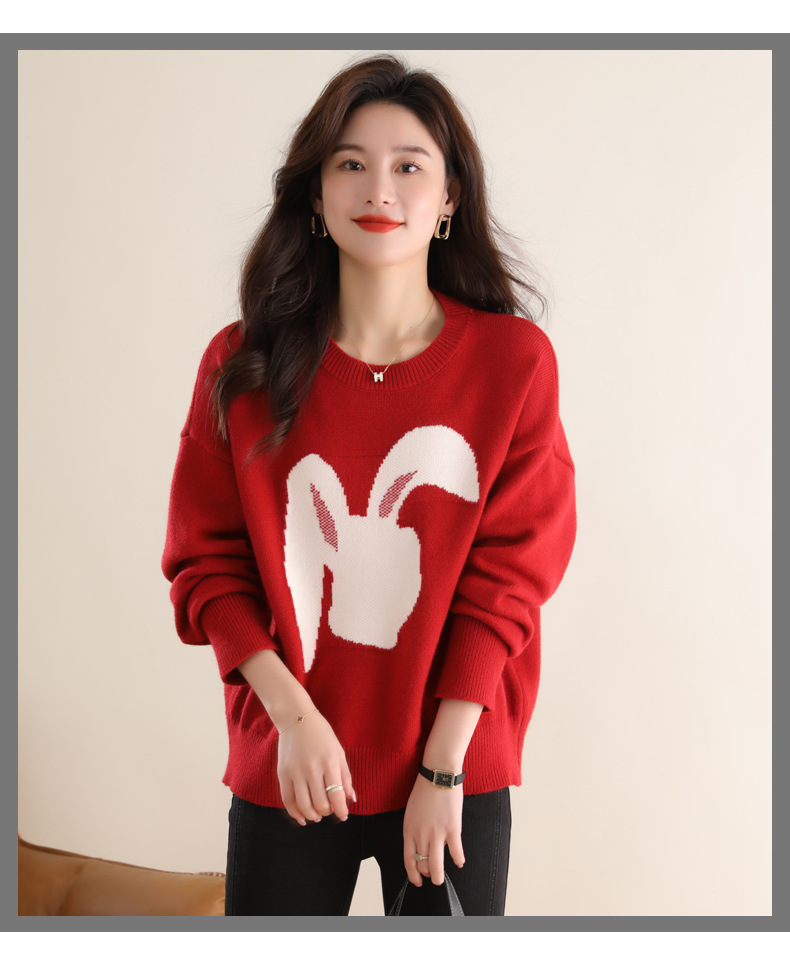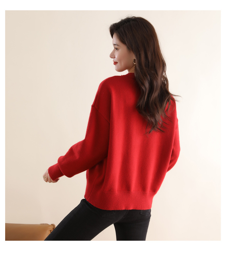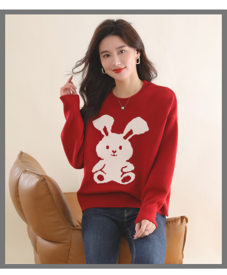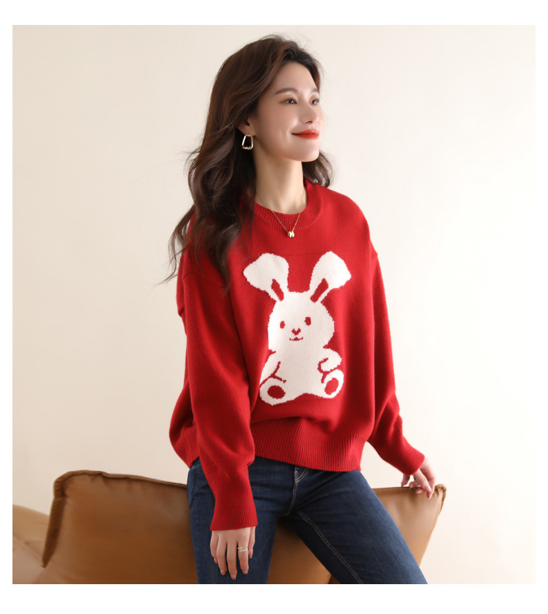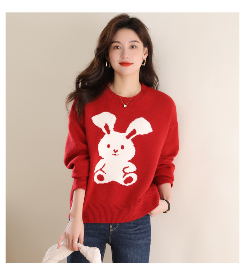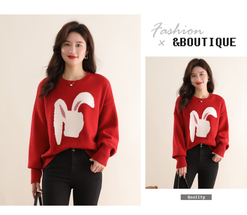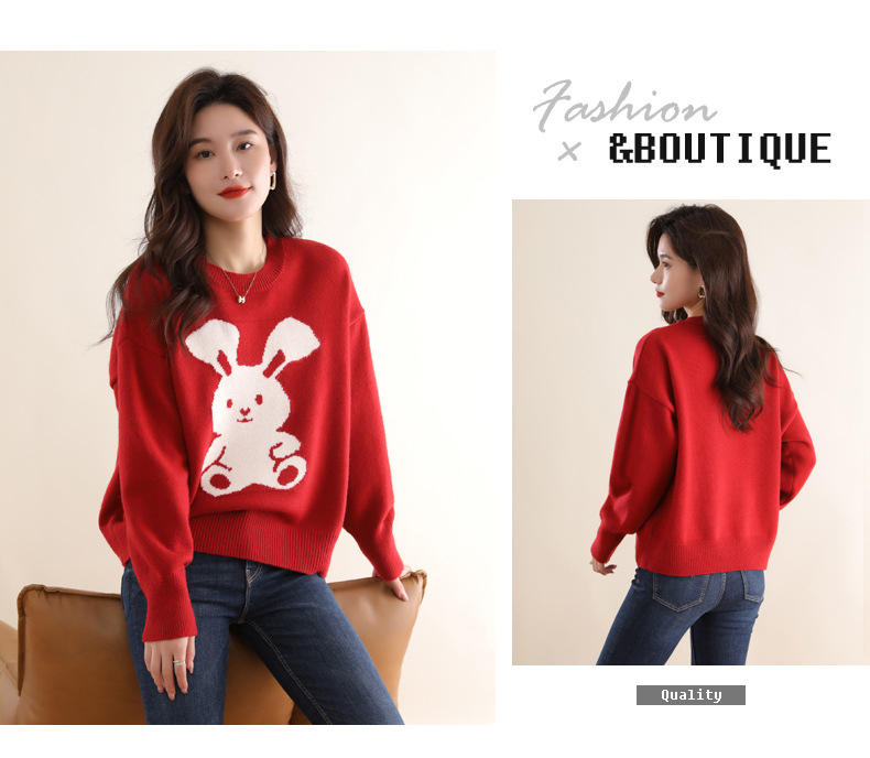 兔年本命年衣服红色毛衣,时尚女装秋冬季圆领打底衫宽松加厚内搭CC-MYC2290