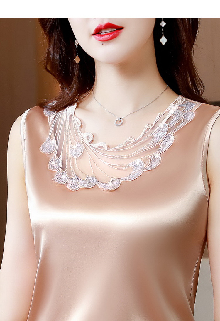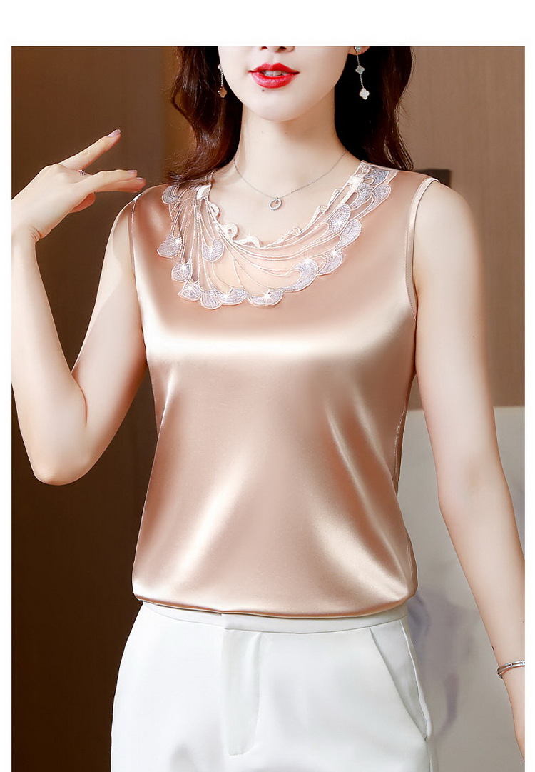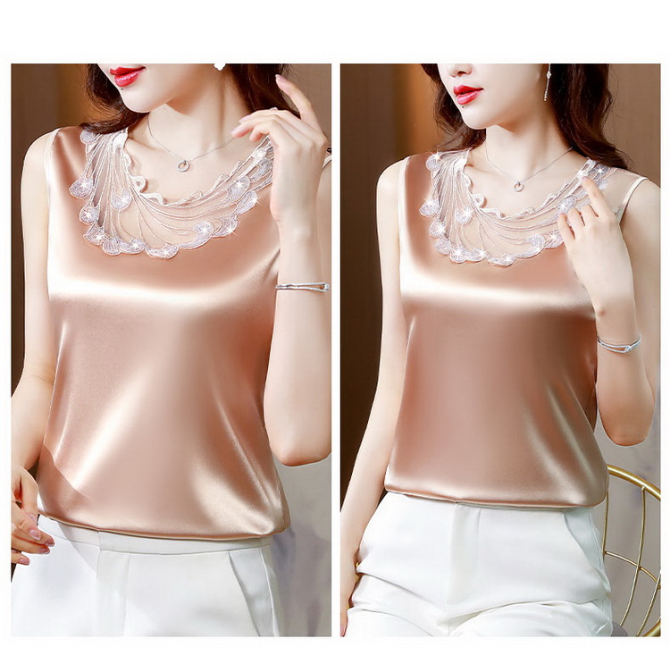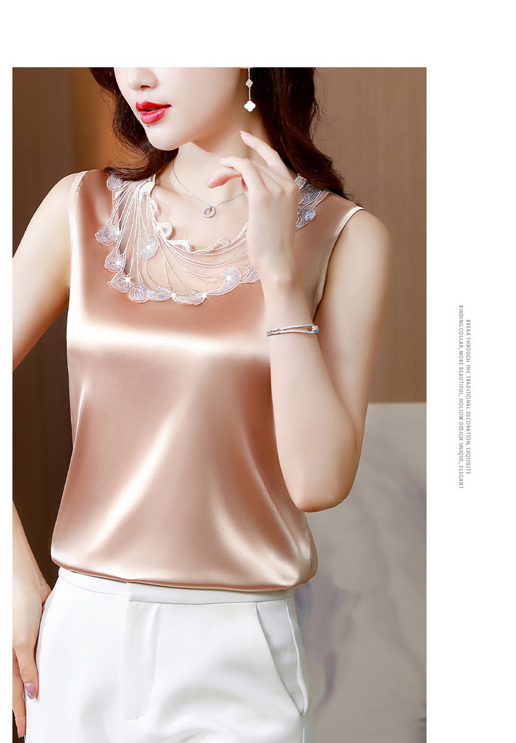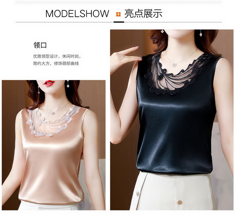 钉珠吊带背心,宽松百搭打底西装内搭无袖丝绸面上衣KQL-3179