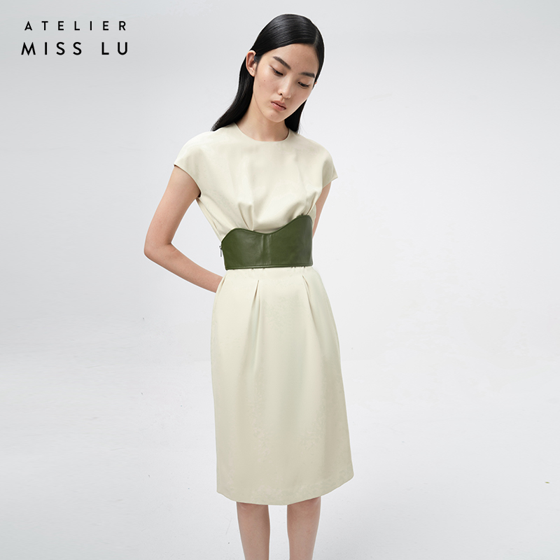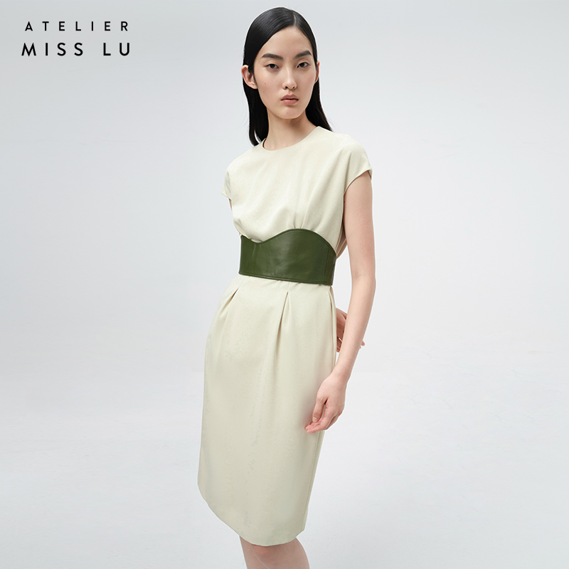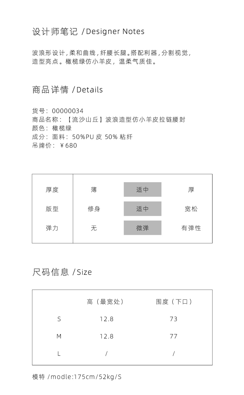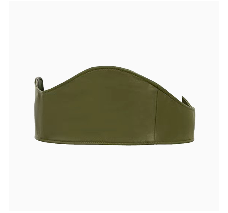 【流沙山丘】波浪造型仿小羊皮橄榄绿拉链腰封/00000034