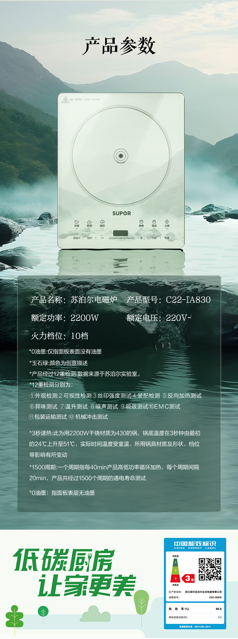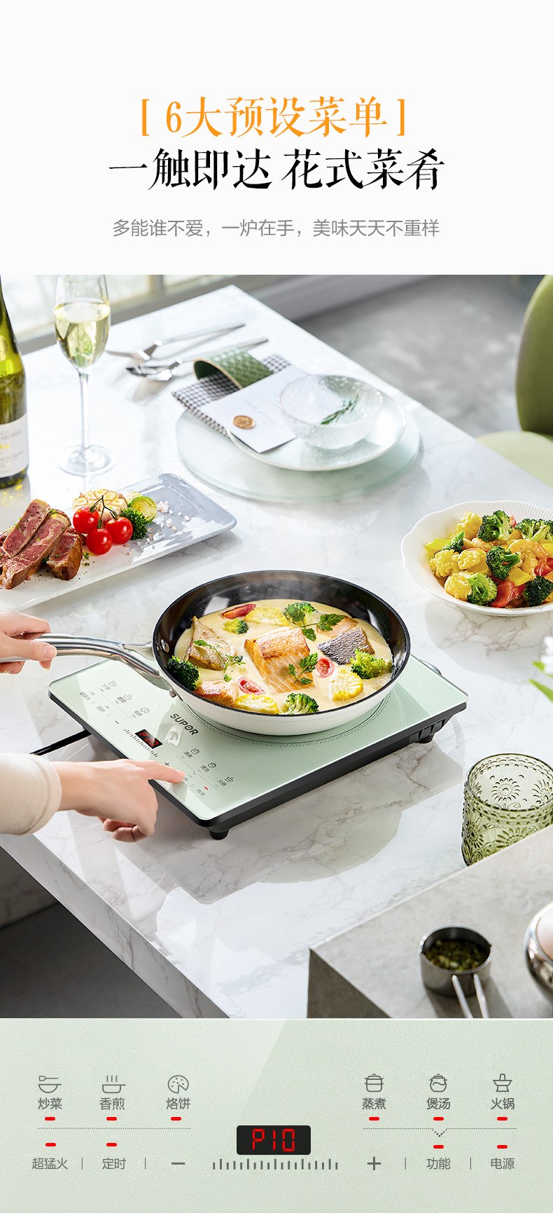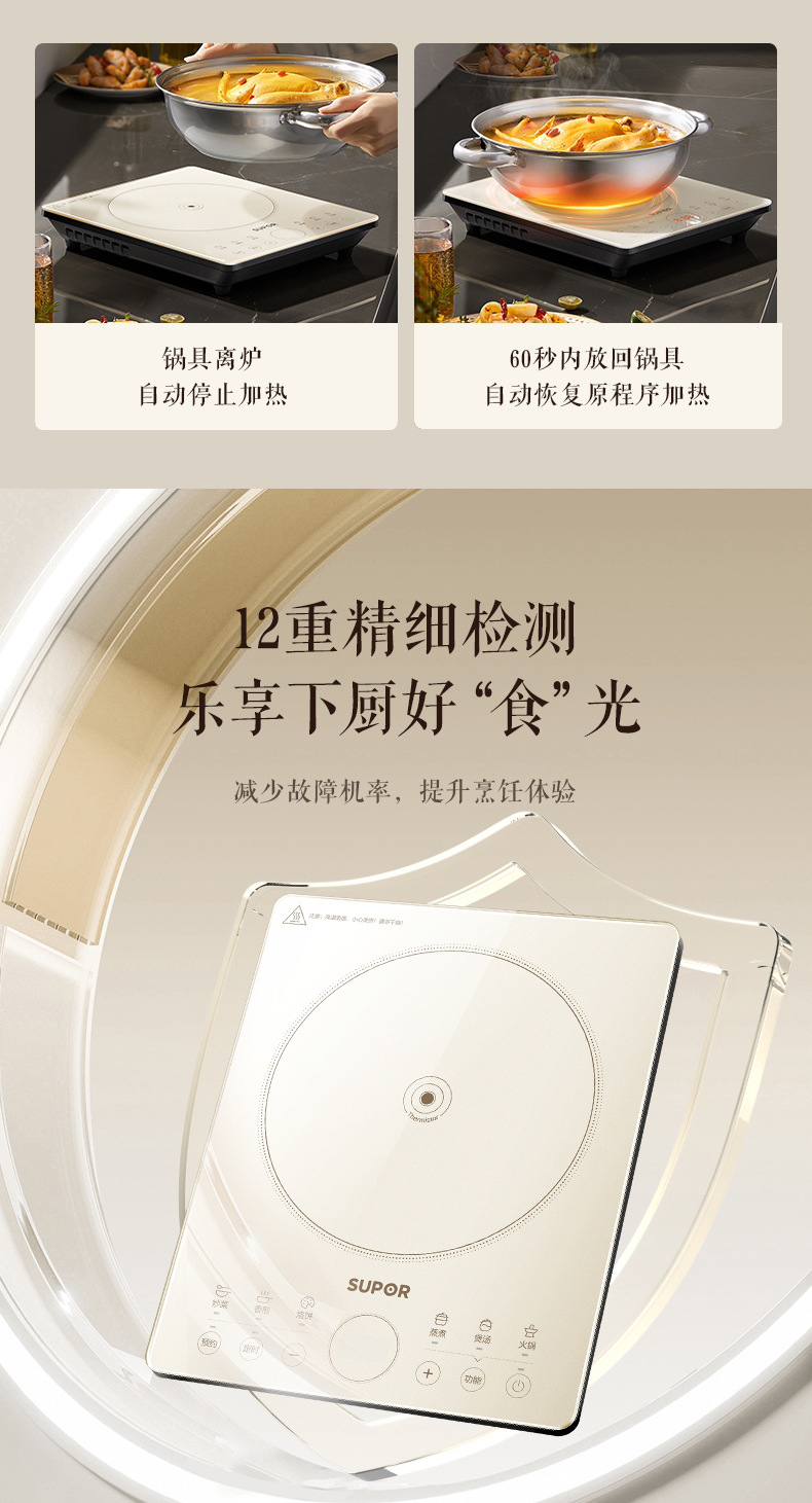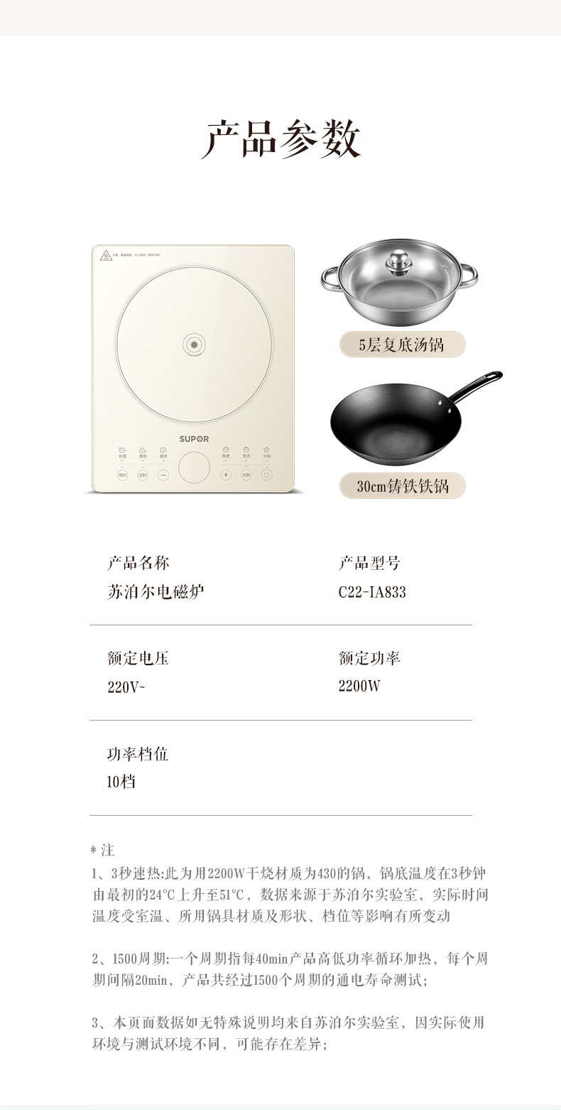苏泊尔电磁炉大火力炒菜火锅一体多功能智能定时电磁灶 C22-IA833