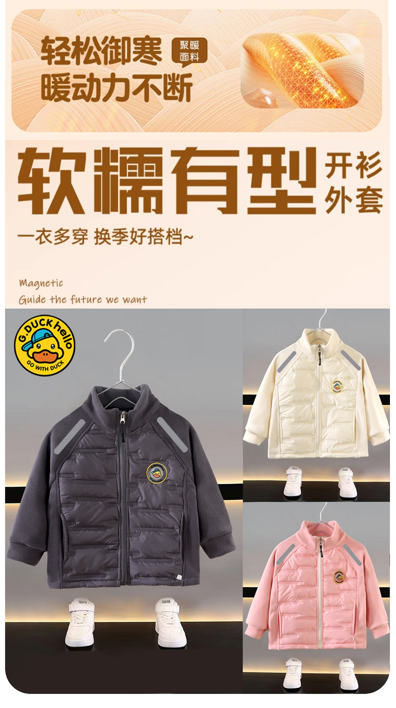 G.DUCK小黄鸭秋冬季新款男童女童儿童校服神器长袖防风宽松拉链中大童外套90-170