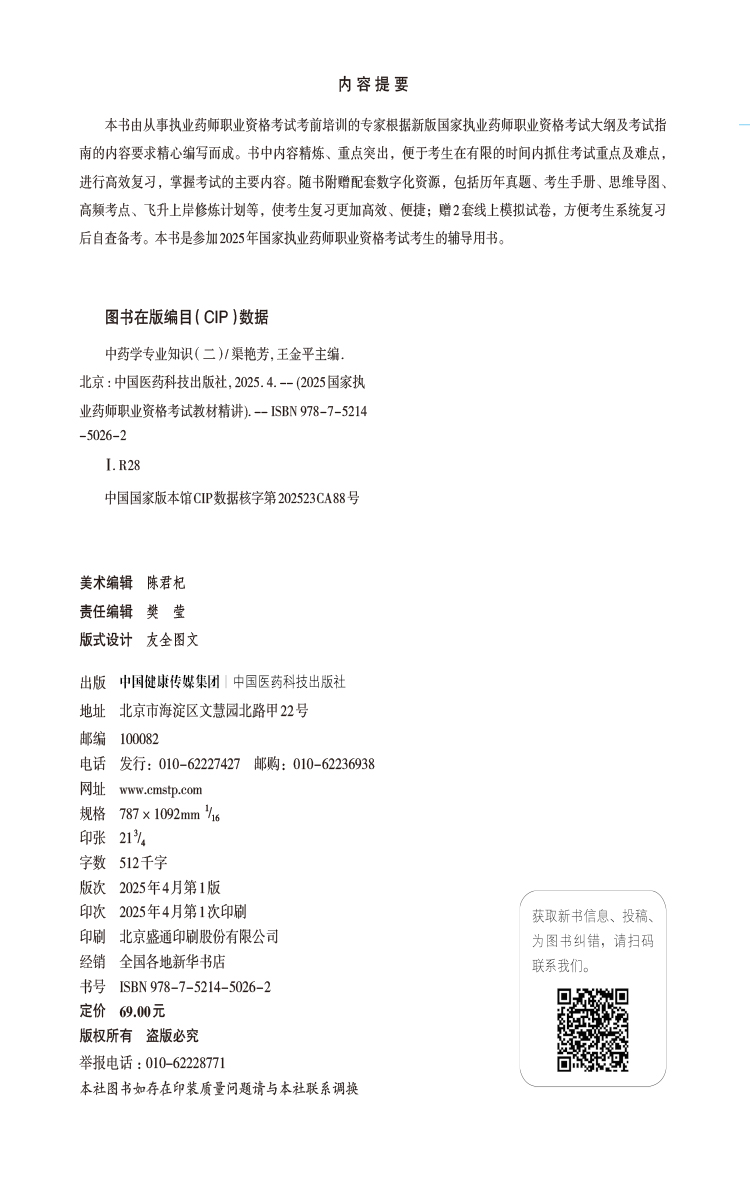 书名:中药学专业知识(二)2025国家执业药师职业资格考试教材精讲