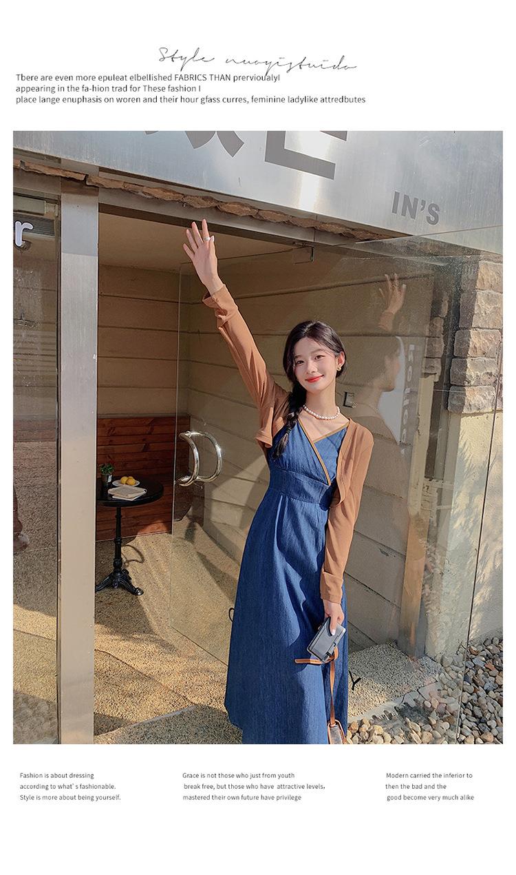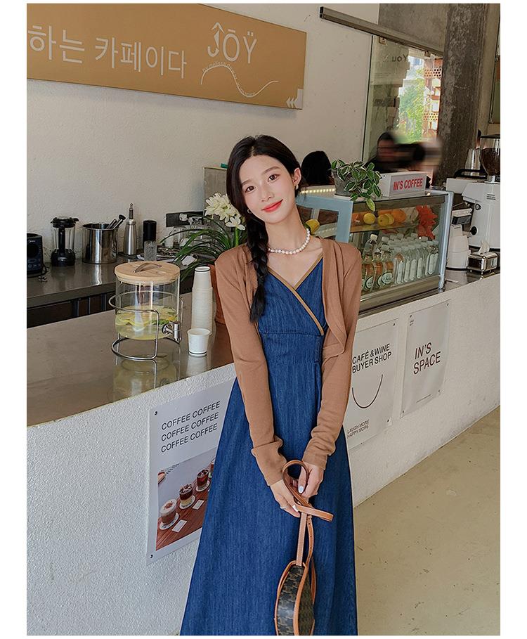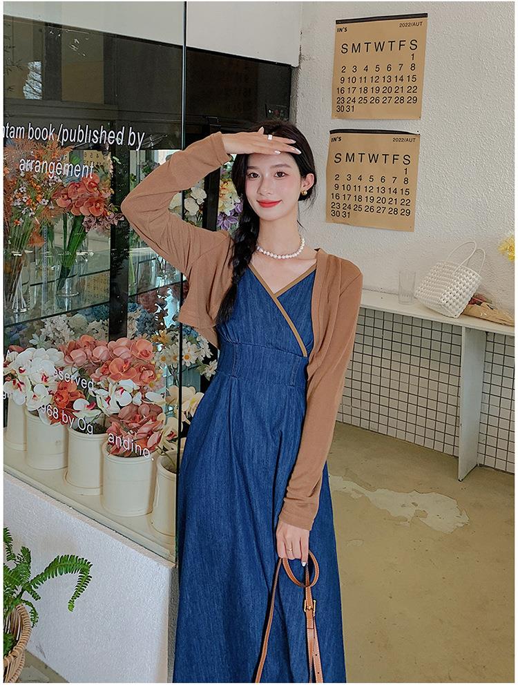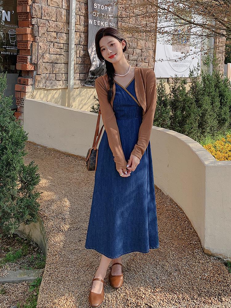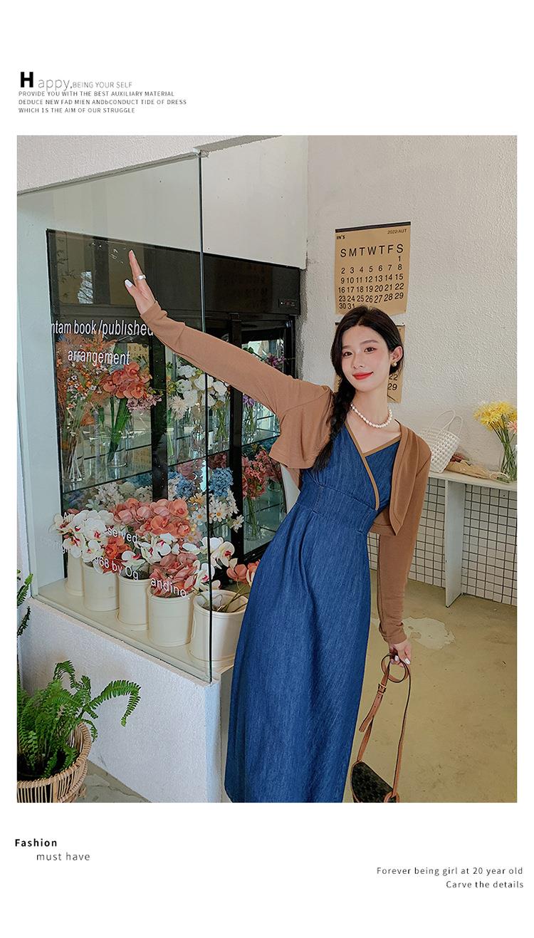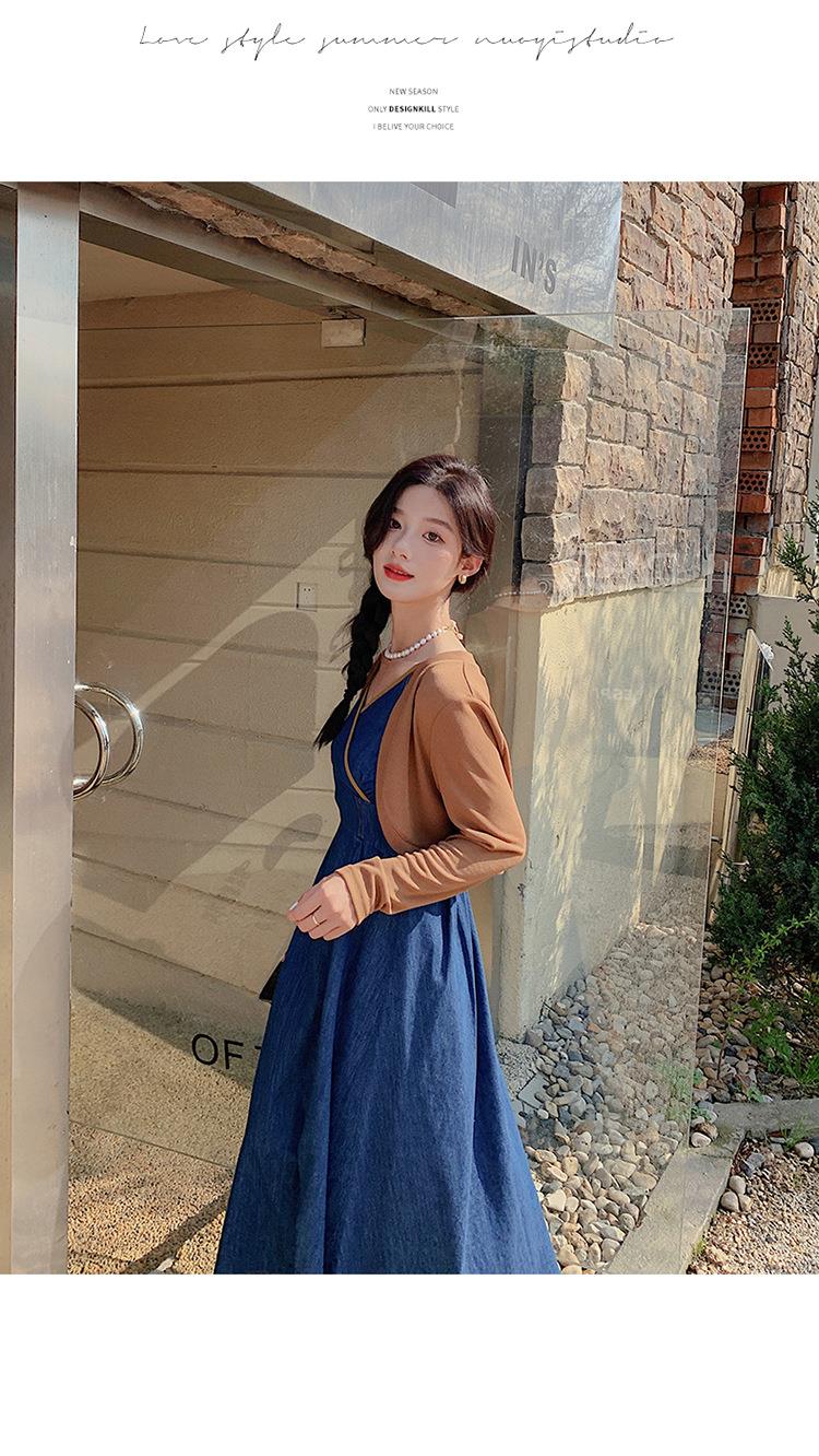 设计感V领吊带牛仔连衣裙女夏季新款法式复古披肩裙子两件套装