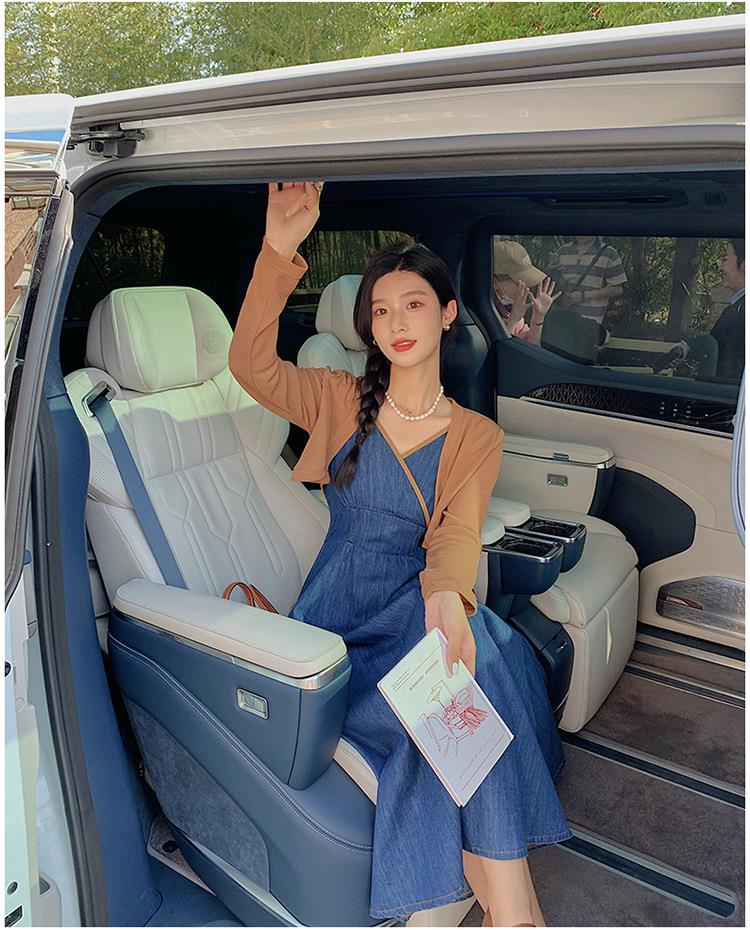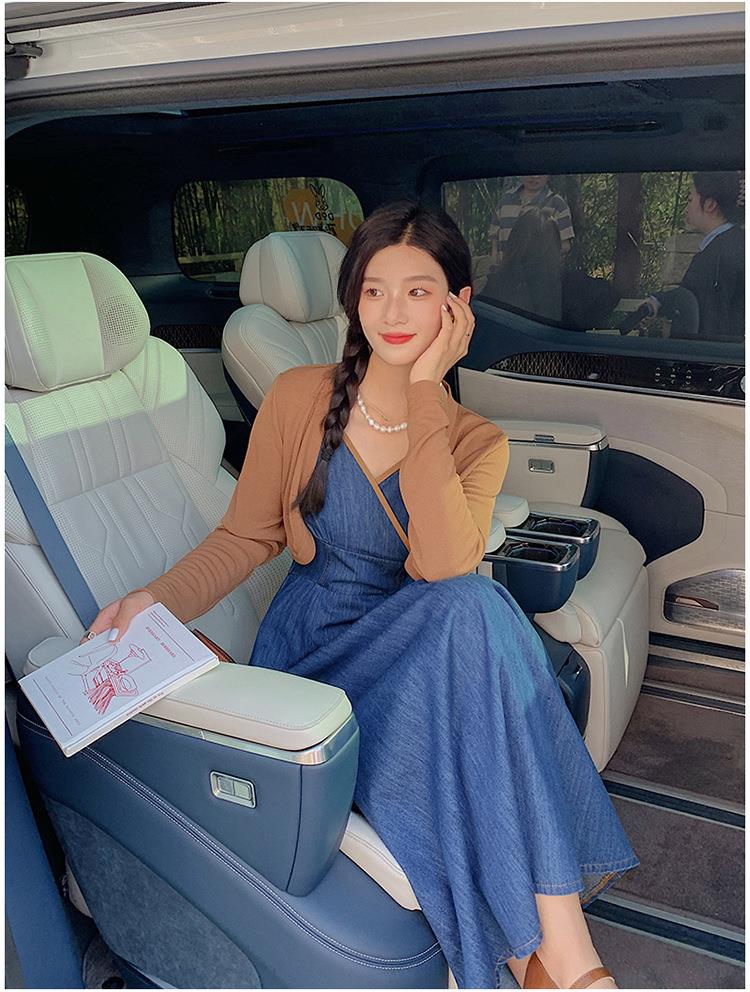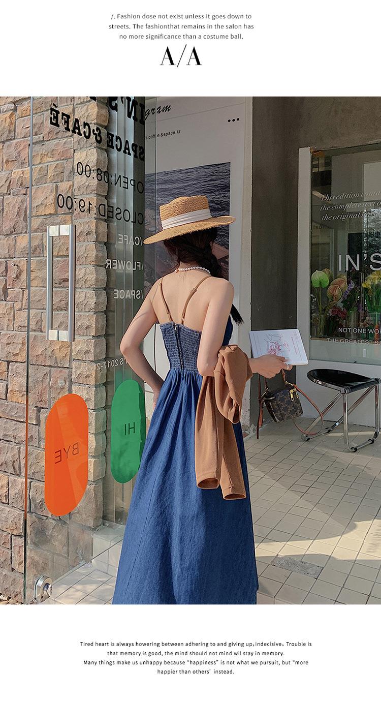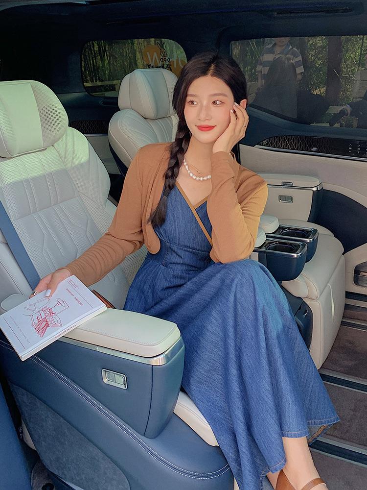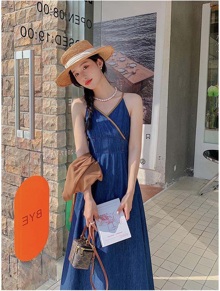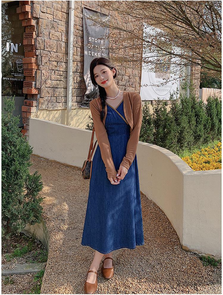 设计感V领吊带牛仔连衣裙女夏季新款法式复古披肩裙子两件套装