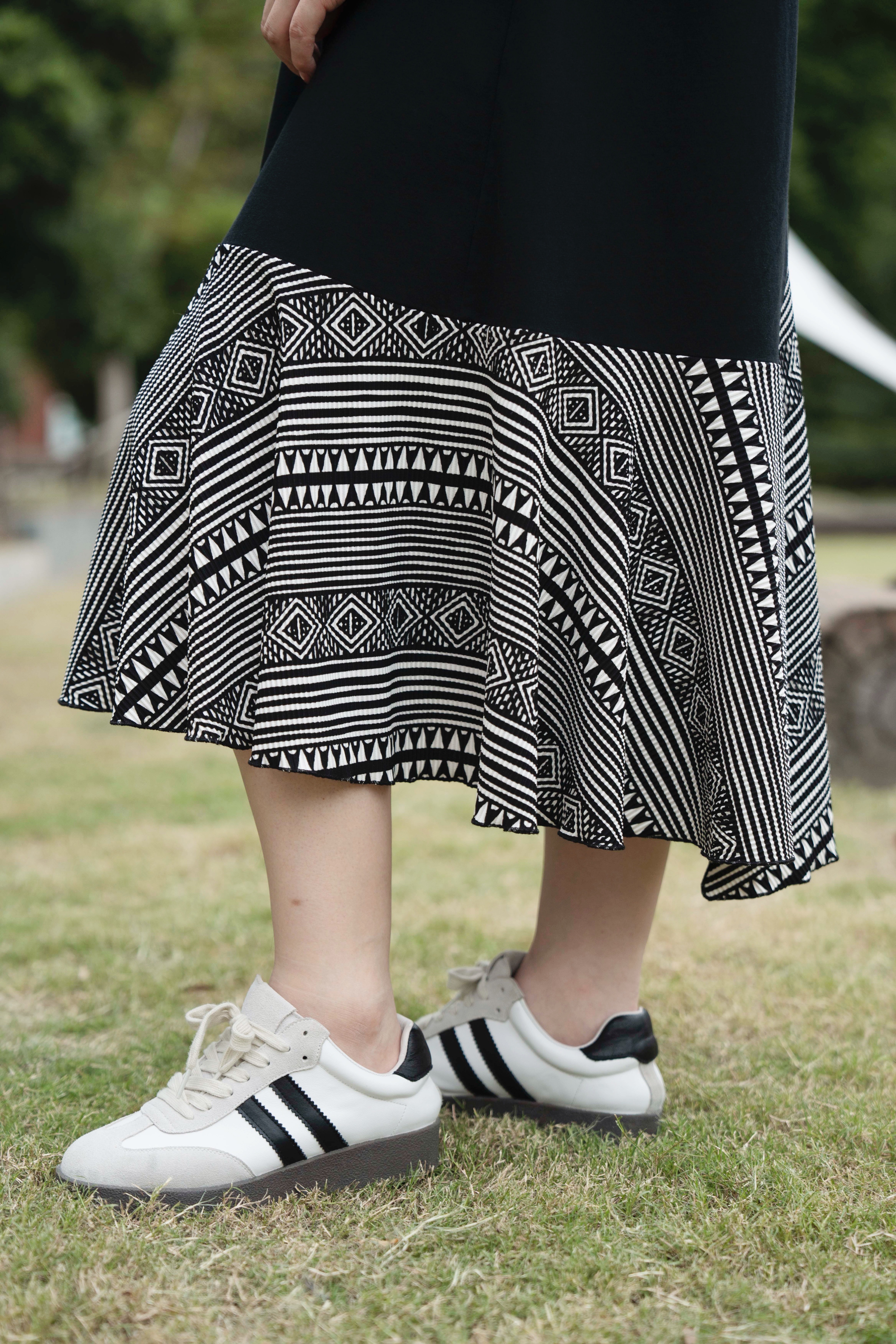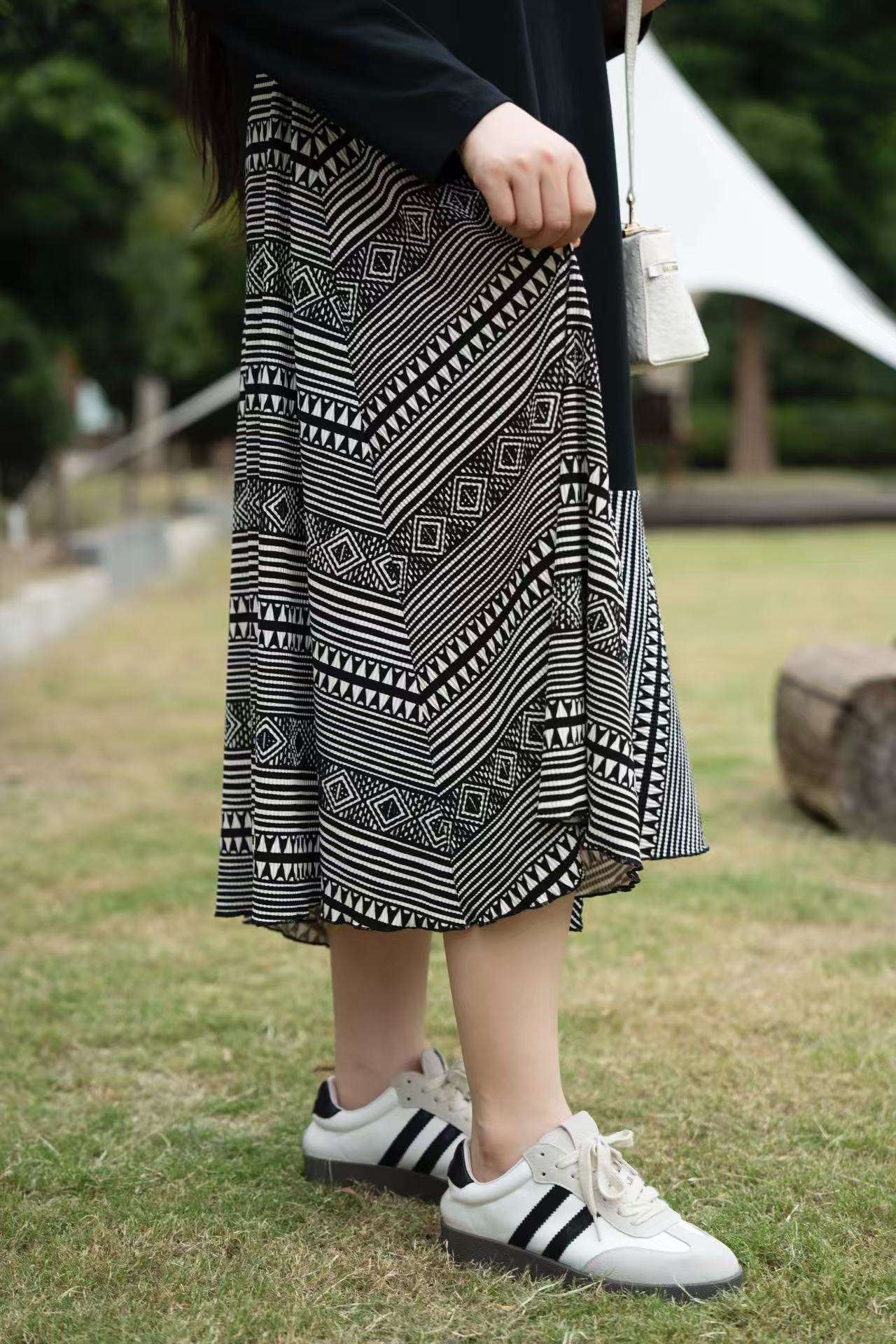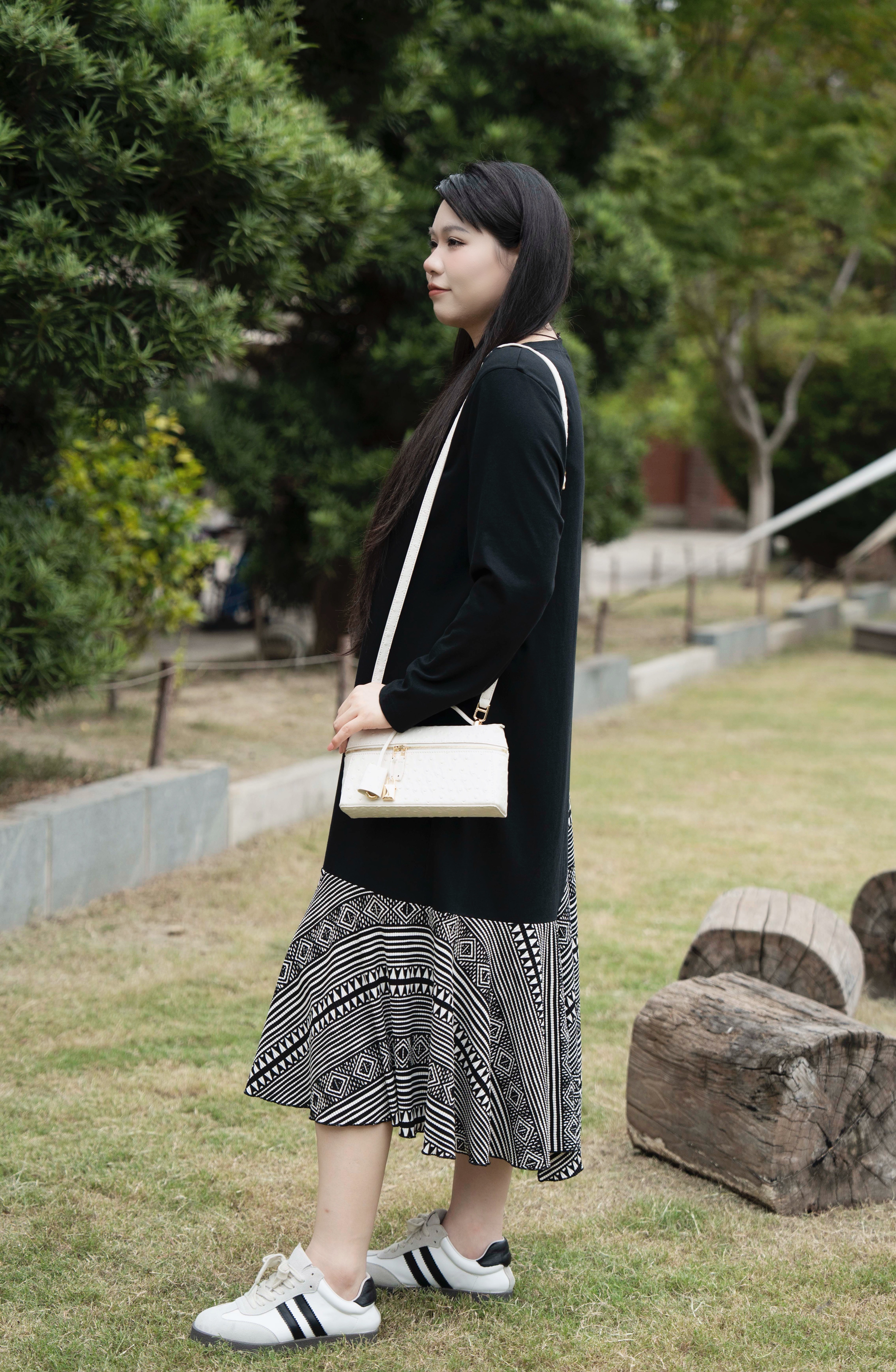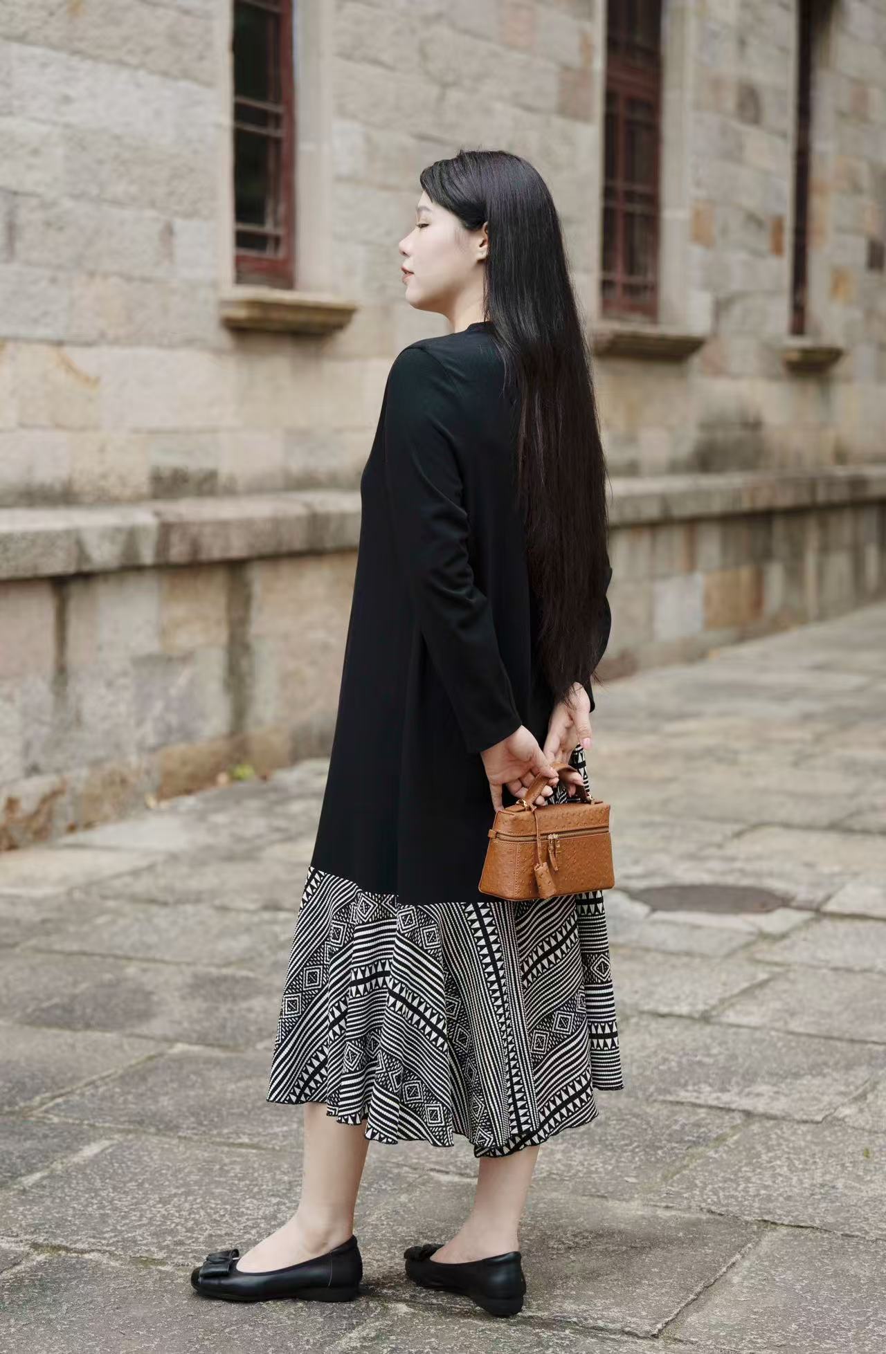 现货,今天秒发!【拼接套头款连衣裙】不显臃肿,非常显瘦!非常有气质!黑色部分面料为100%纯棉,花色拼接部分为聚酯纤维