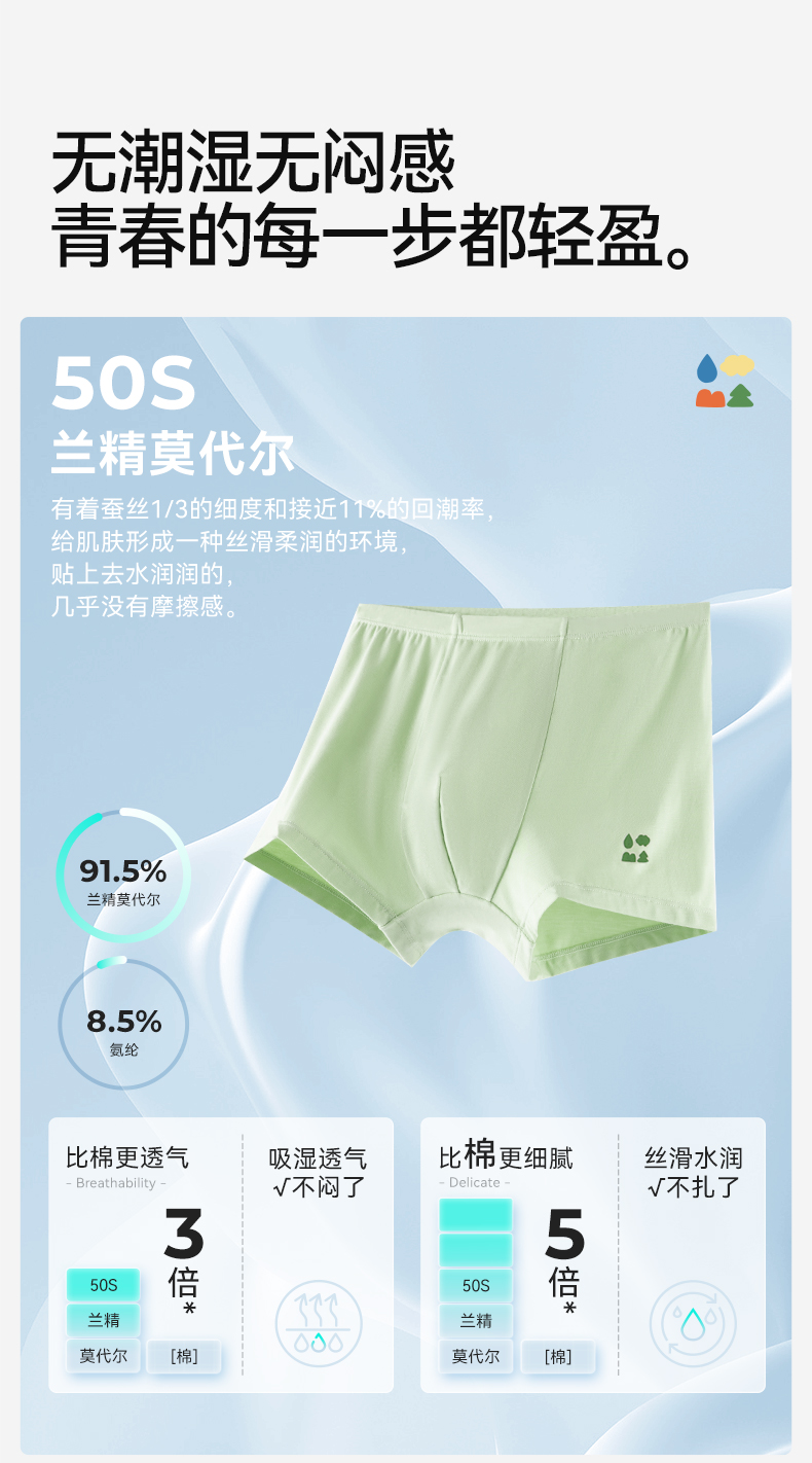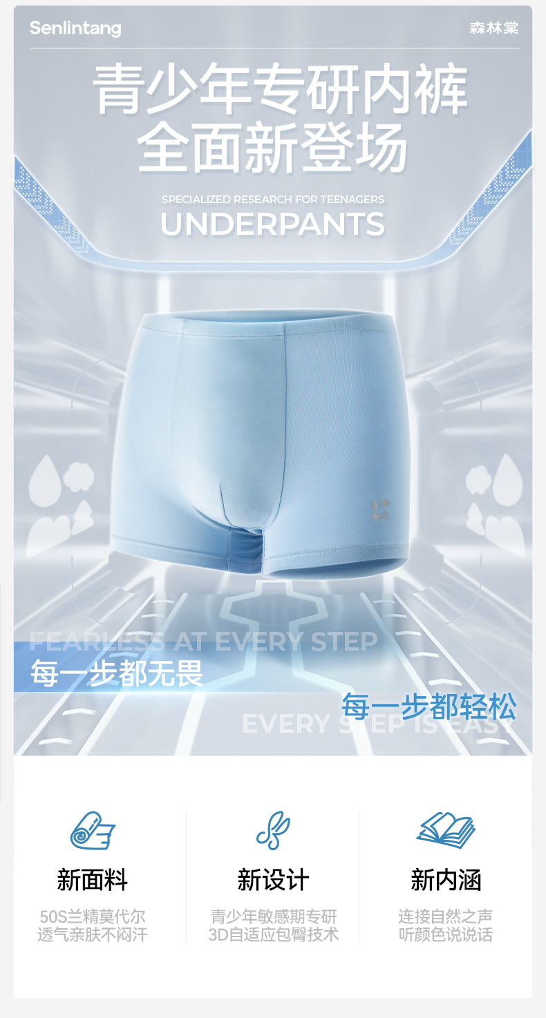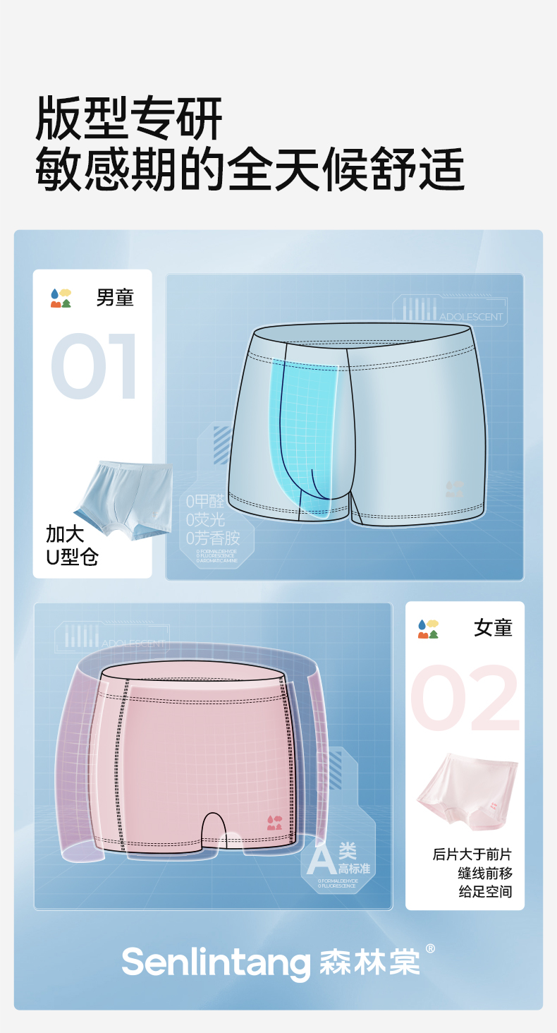【品牌优选】【青少年专研内裤】森林棠新款男女莫代尔抑菌弹力透气大童内裤两条装60122401