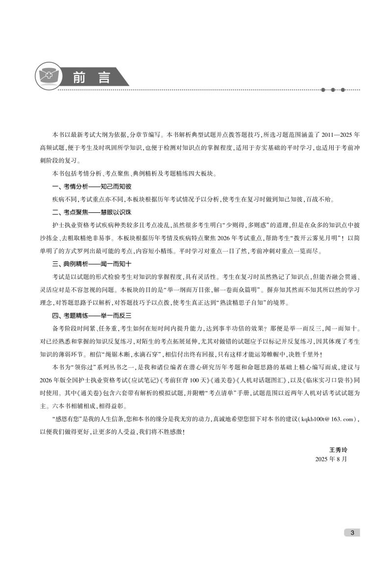 领你过 2026全国护士执业资格考试 同步考题 王秀玲 典例精析板块精选2012—2025年高频试题 并对答题思路予以解析人民卫生出版社