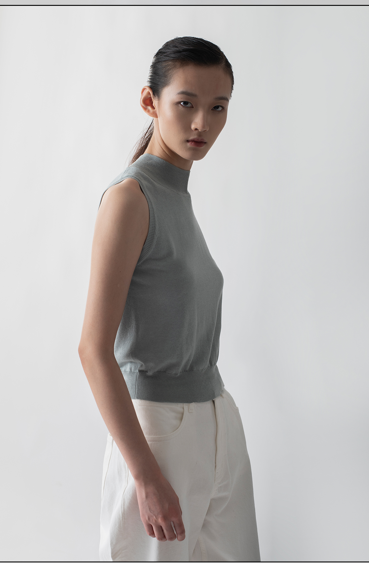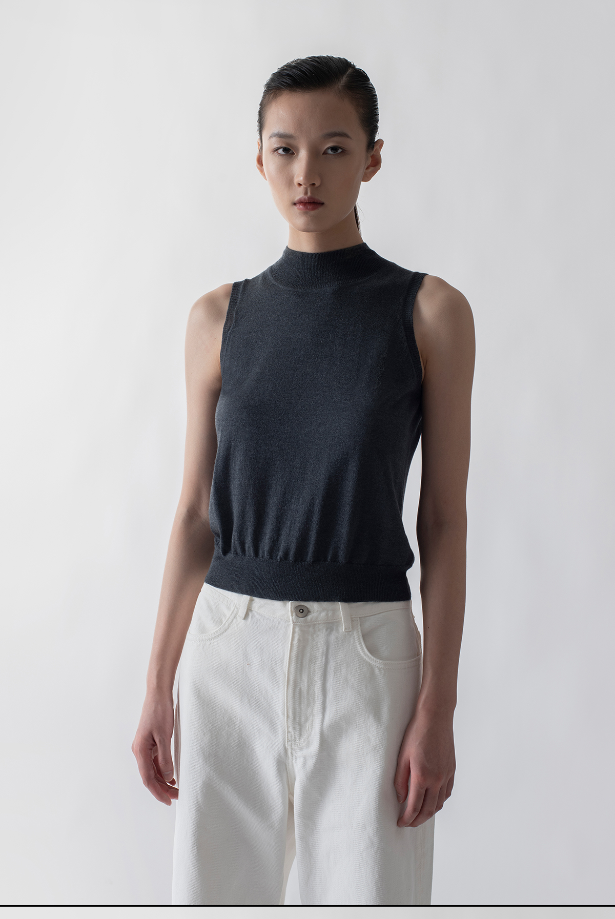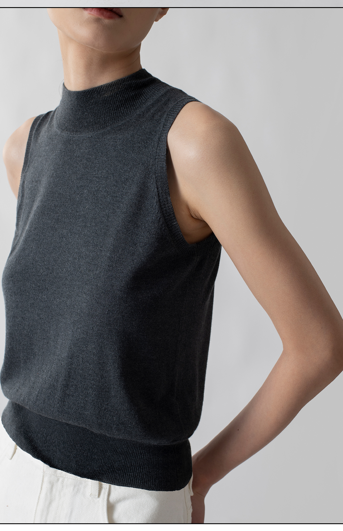 322工房知性半高领百搭针织背心2022秋冬新款丝羊绒纯色打底衫女