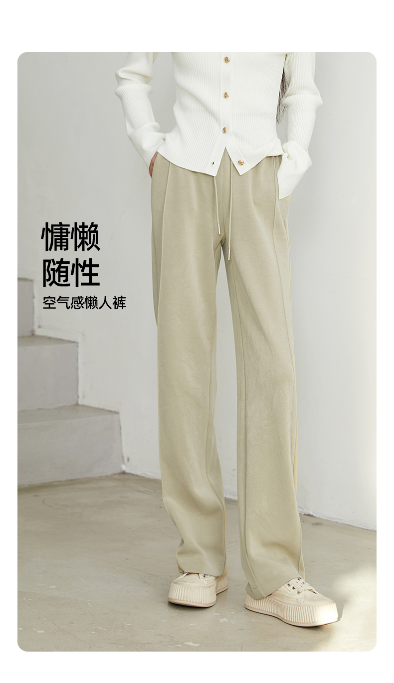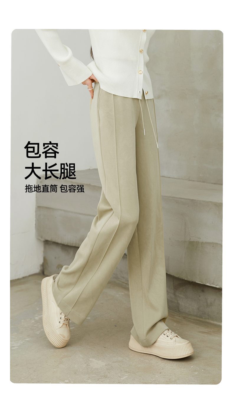 【女神节福利、莫代尔窄版直筒】逸阳高腰垂感宽松直筒休闲裤子0969