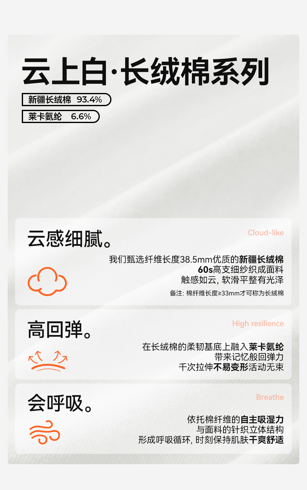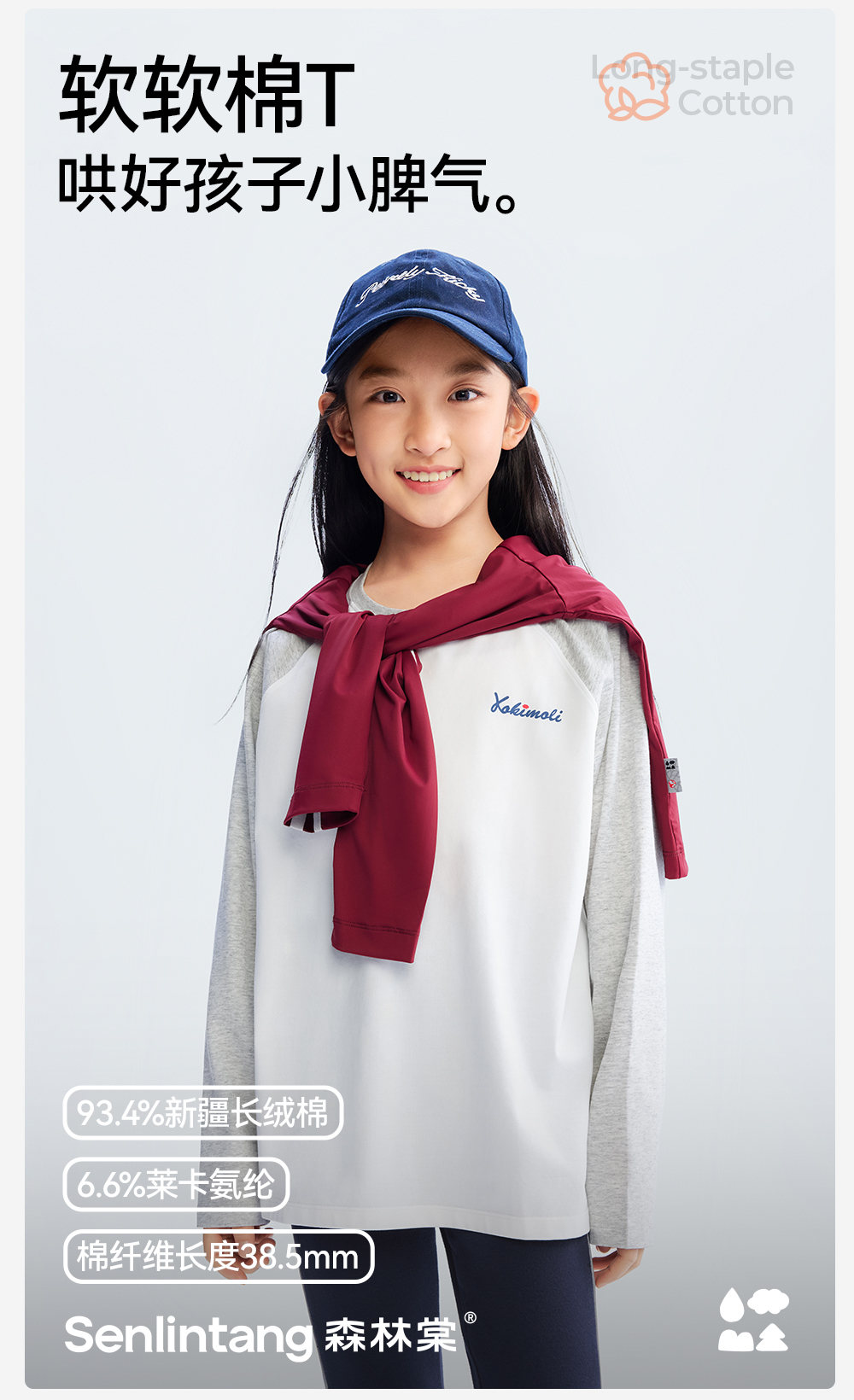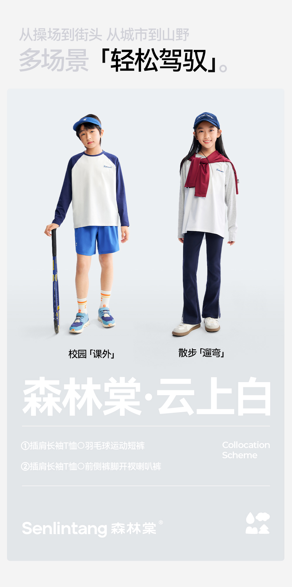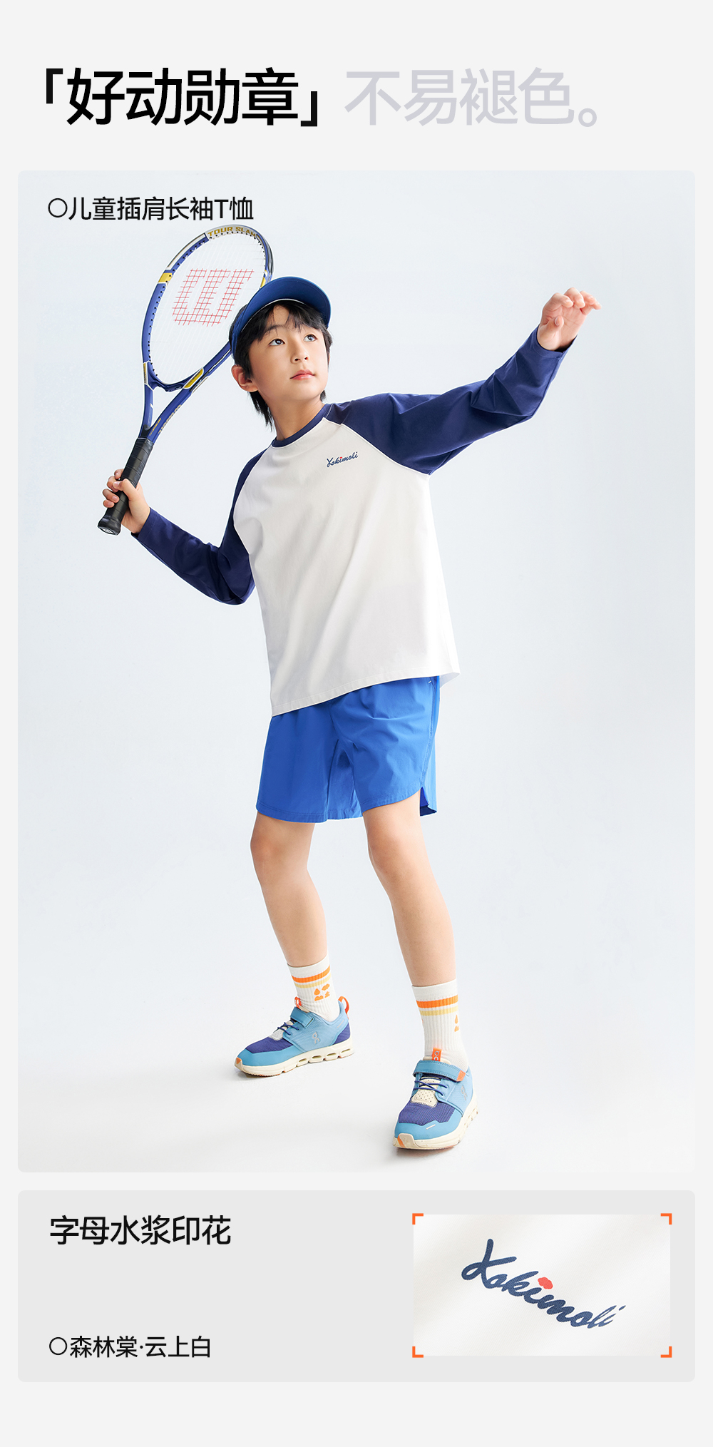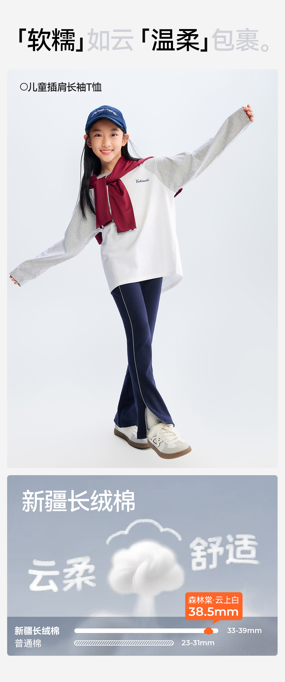 【插肩长袖T恤】森林棠26春云上白高弹吸湿透气字母印花长袖20261260【HZ】