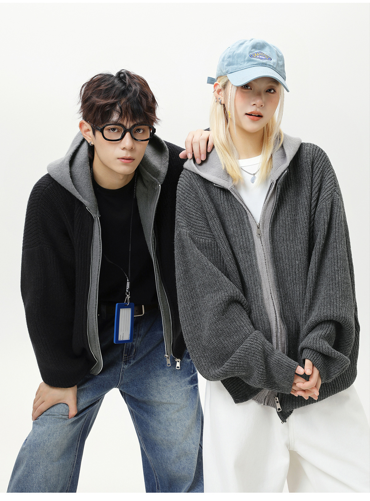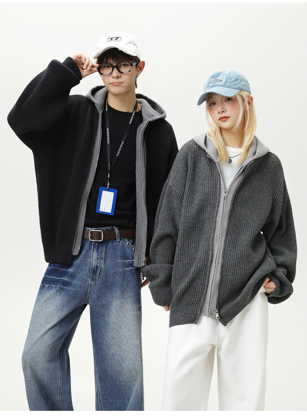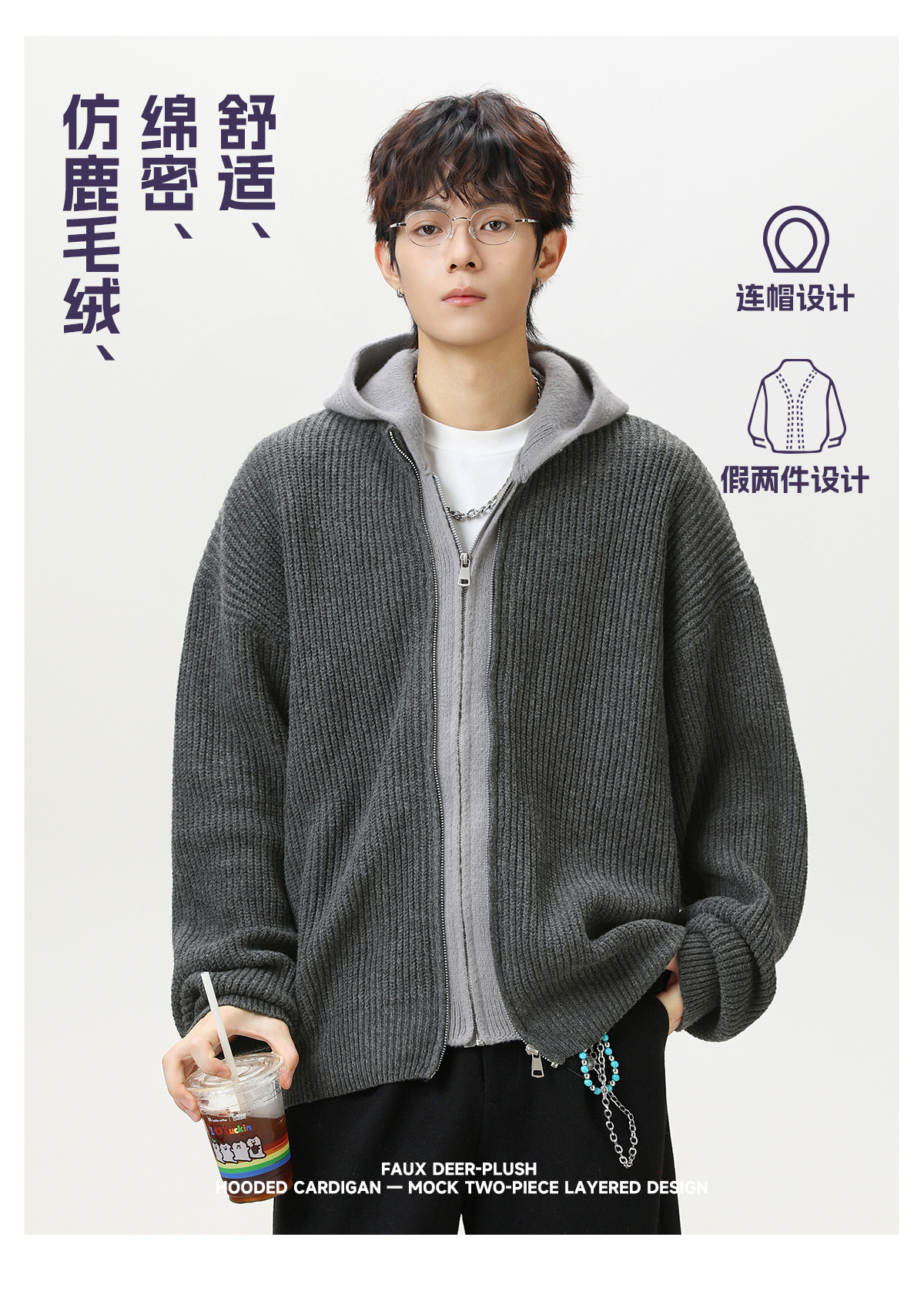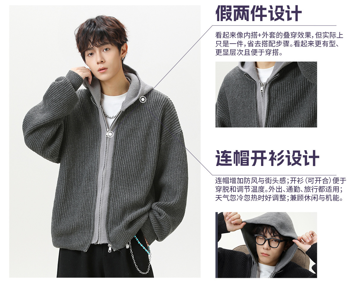 【YW】无忧购“清仓福利”质感仿鹿毛绒假两件开衫连帽毛衣复古情侣针织衫MM4144(截单后3-5天发货)