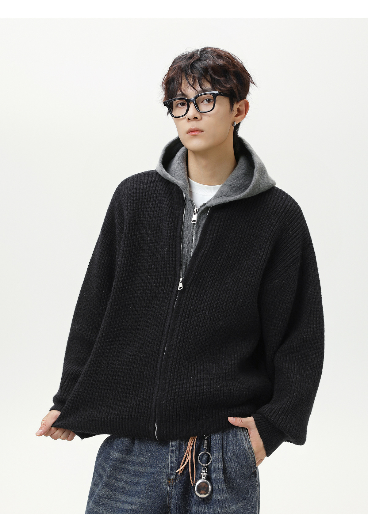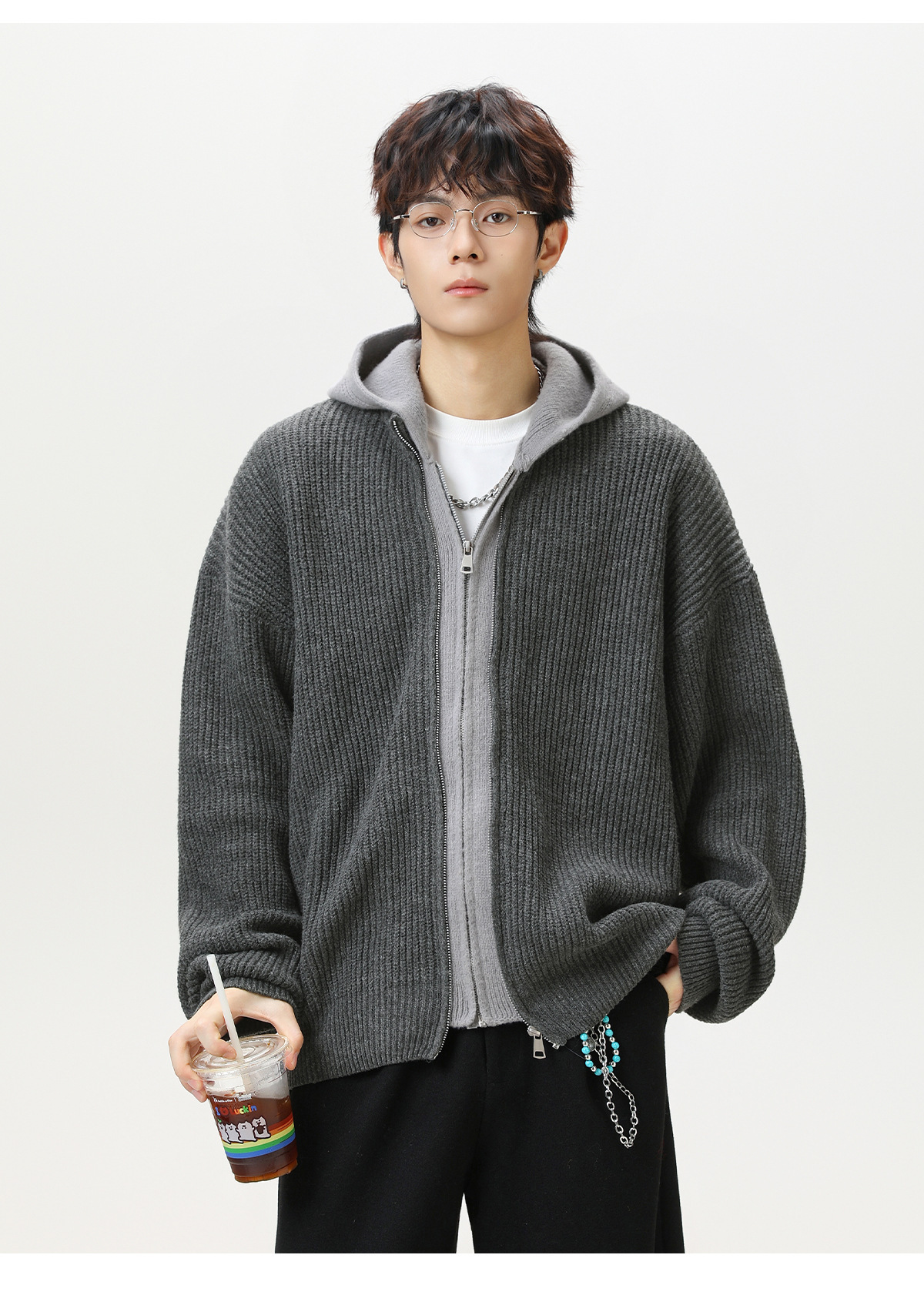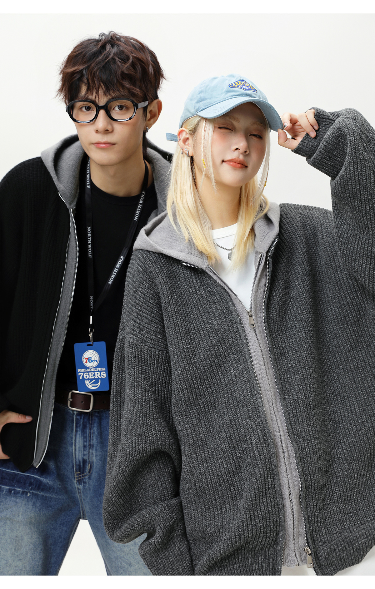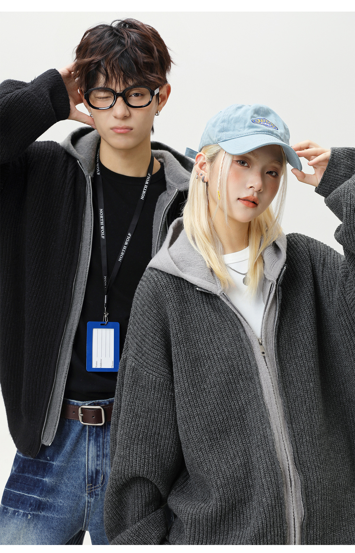 【YW】无忧购“清仓福利”质感仿鹿毛绒假两件开衫连帽毛衣复古情侣针织衫MM4144(截单后3-5天发货)