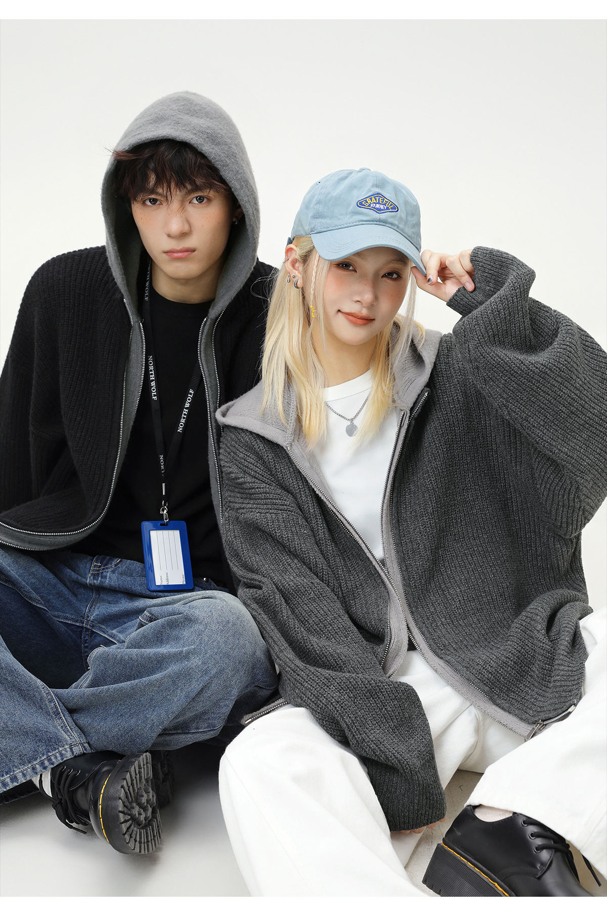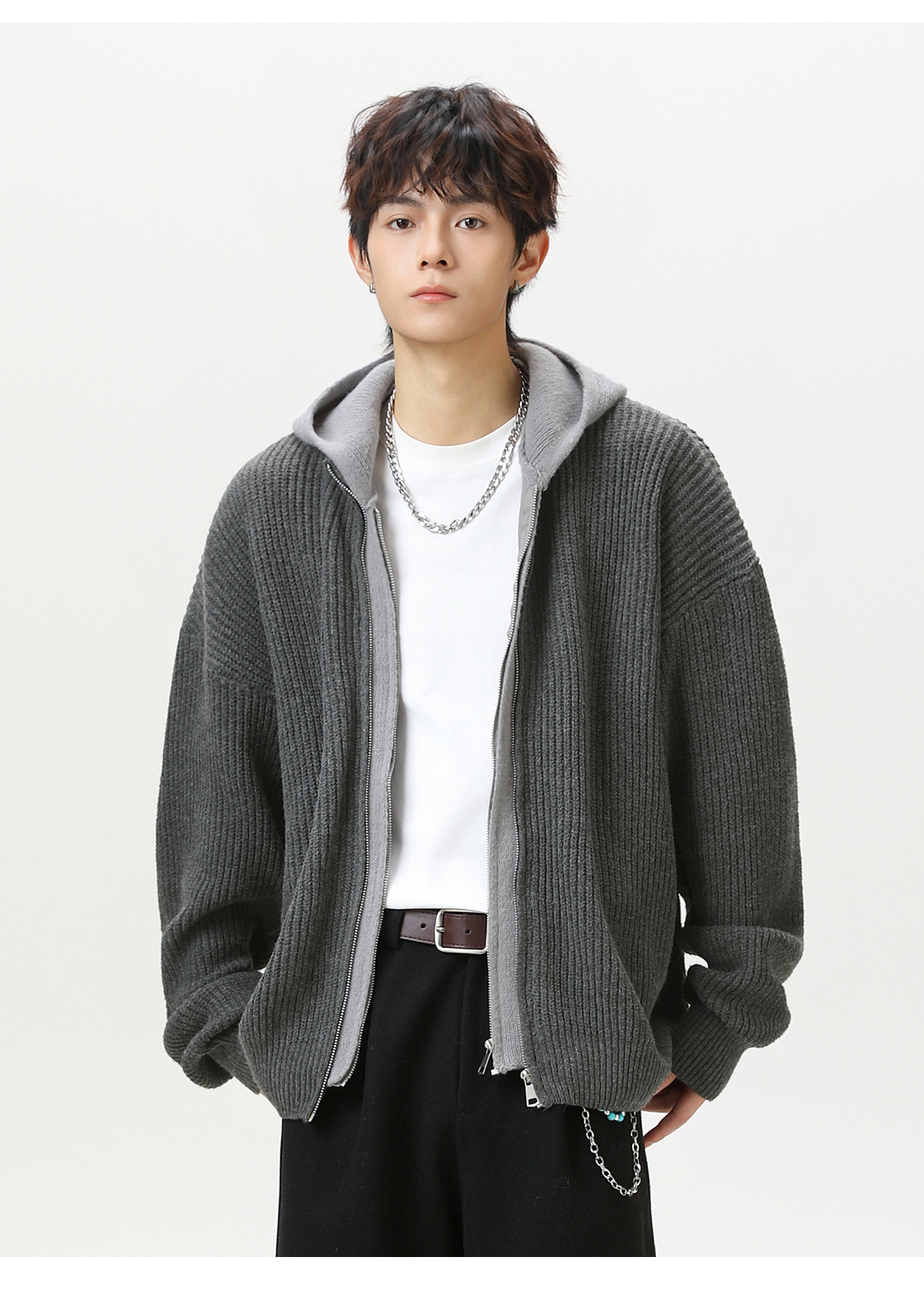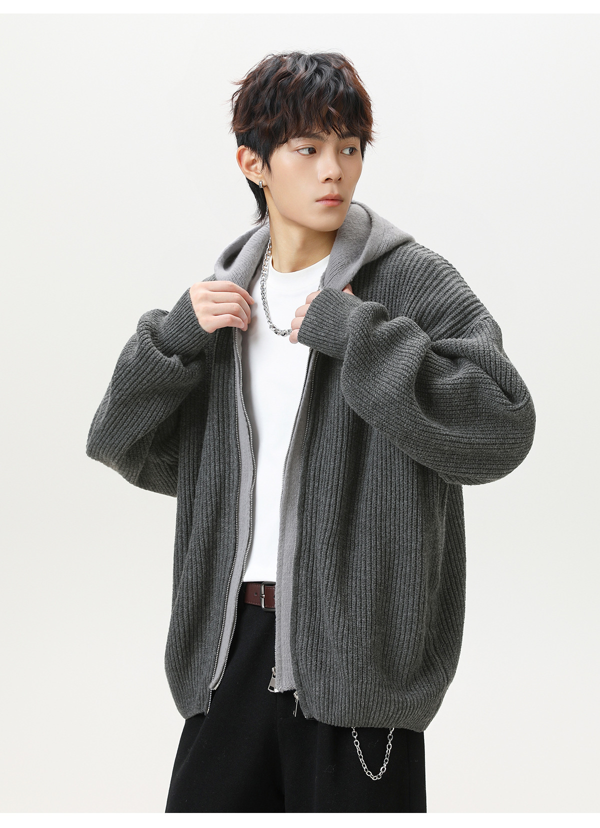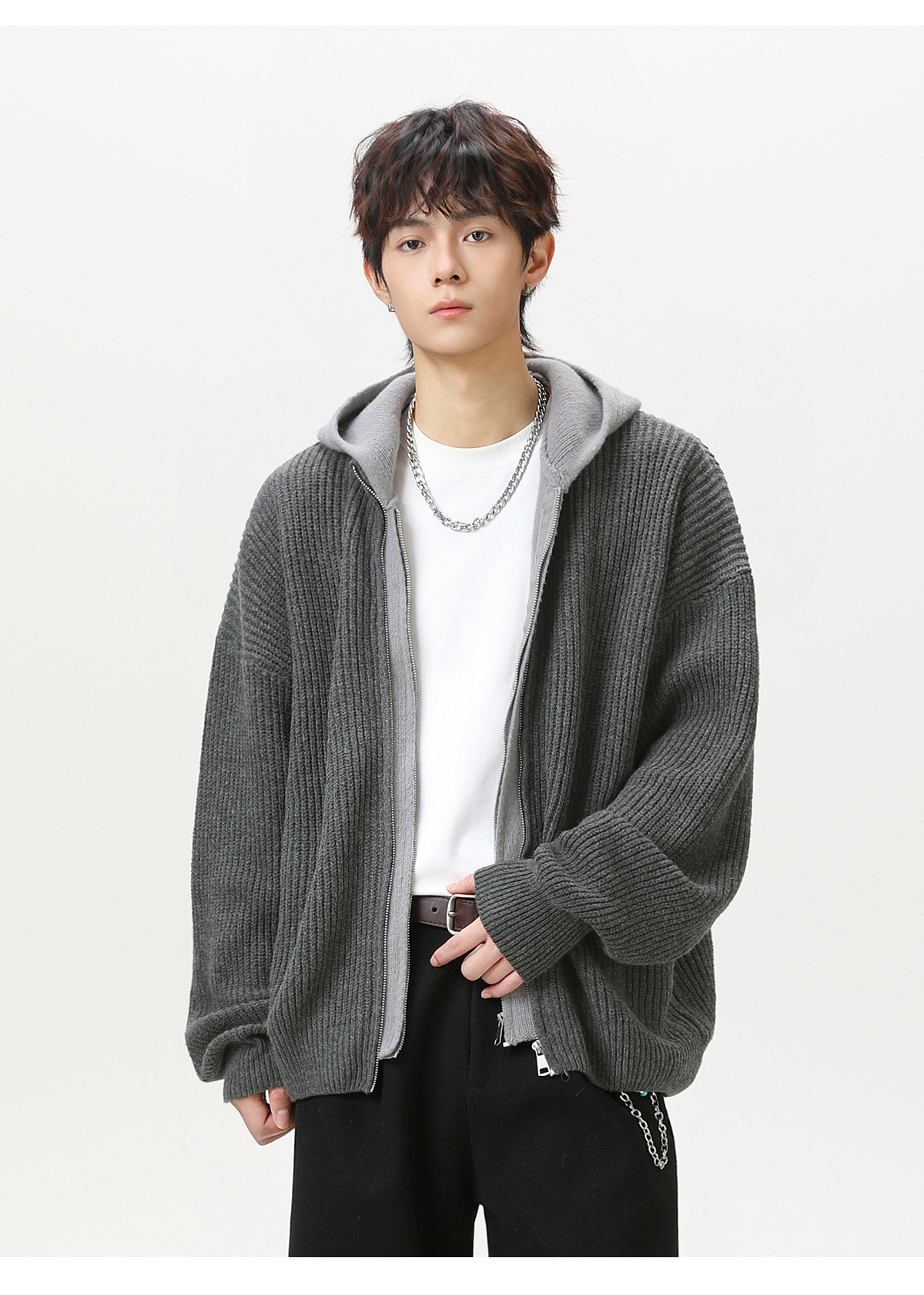 【YW】无忧购“清仓福利”质感仿鹿毛绒假两件开衫连帽毛衣复古情侣针织衫MM4144(截单后3-5天发货)