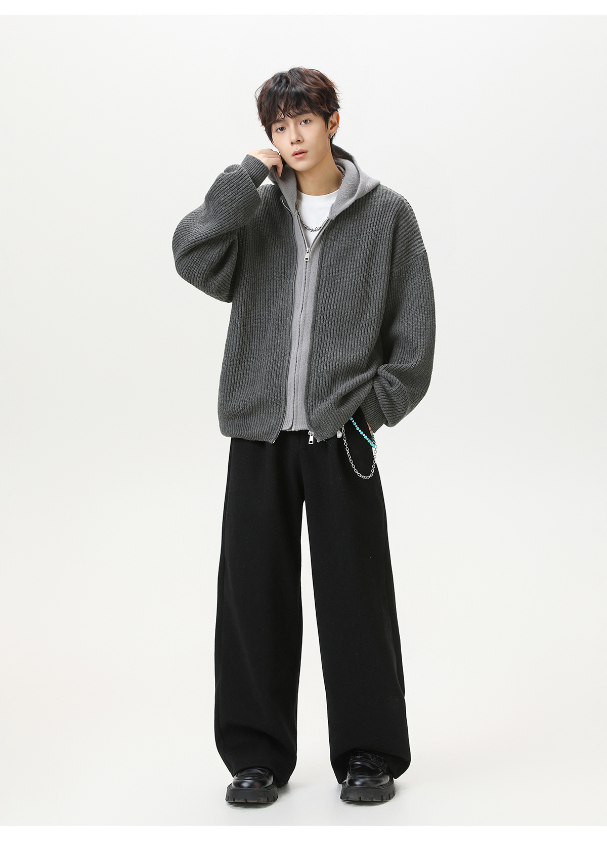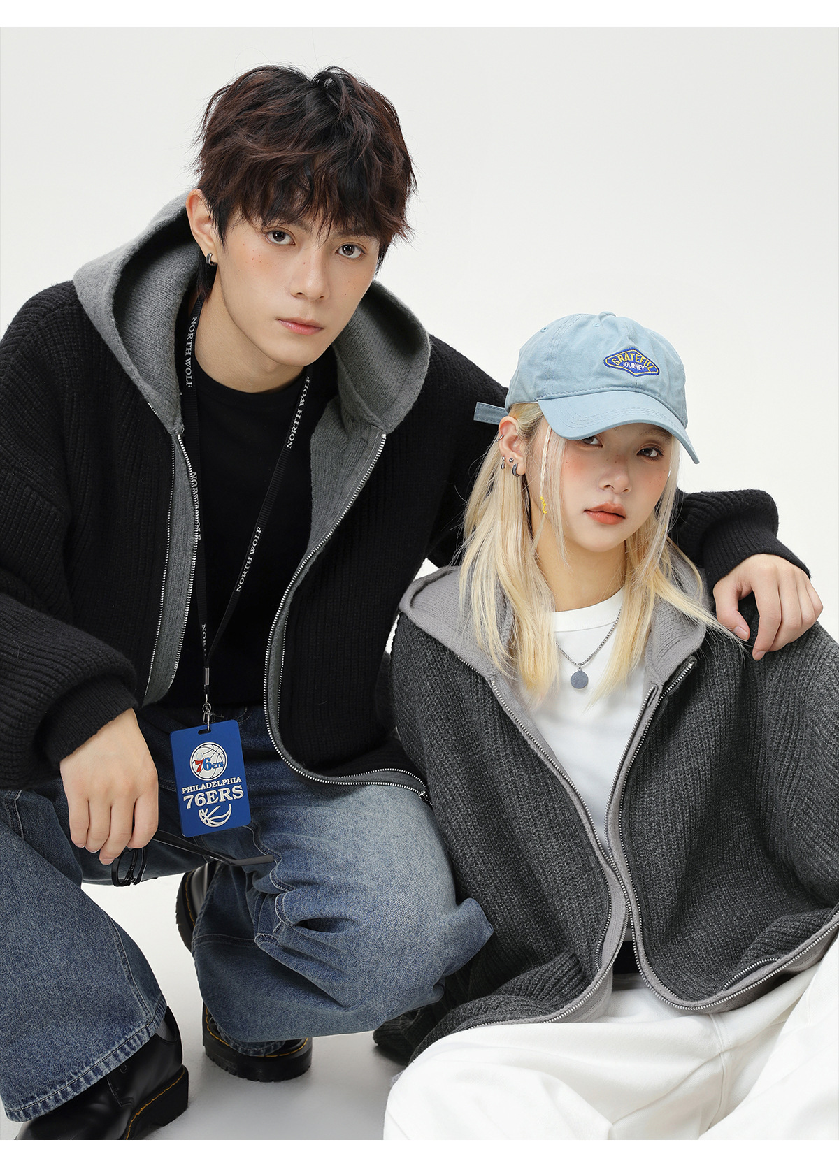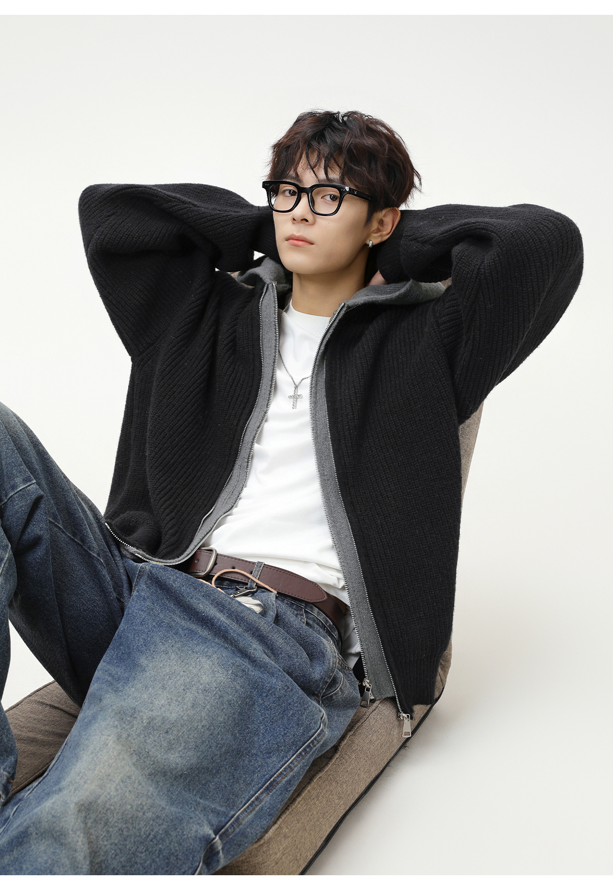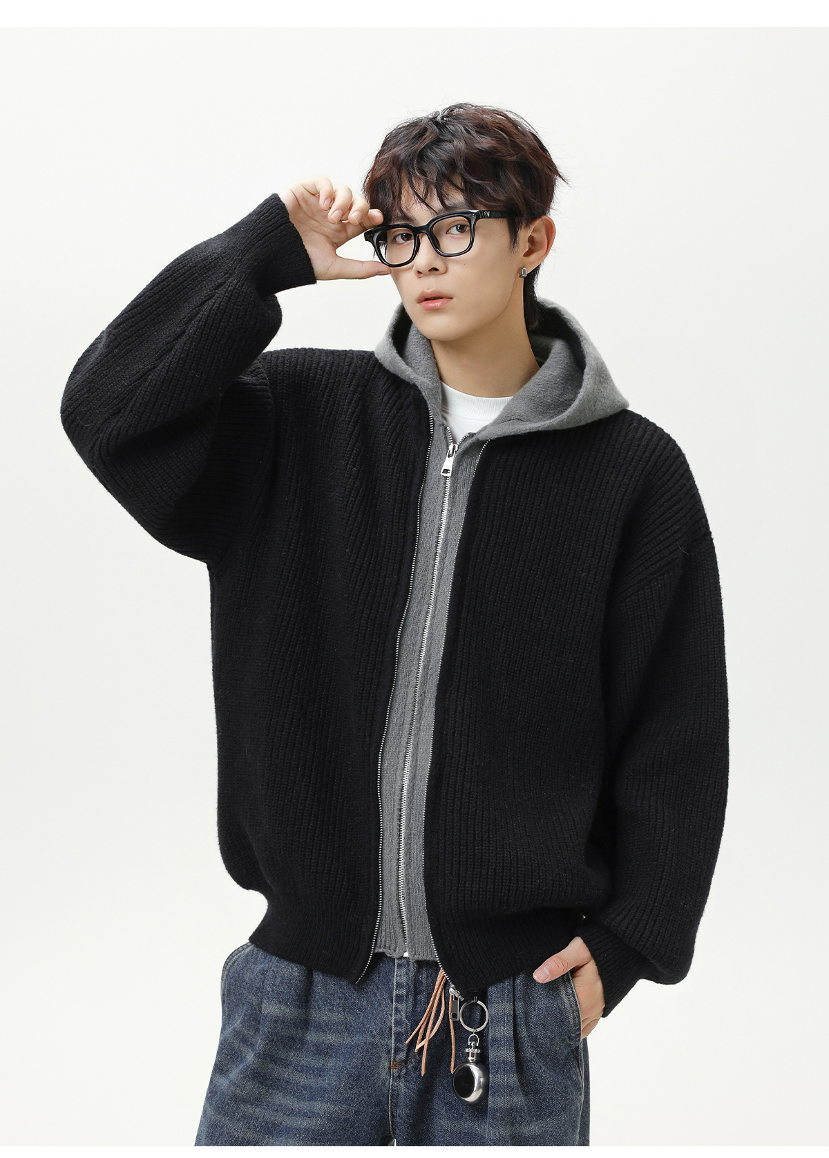 【YW】无忧购“清仓福利”质感仿鹿毛绒假两件开衫连帽毛衣复古情侣针织衫MM4144(截单后3-5天发货)