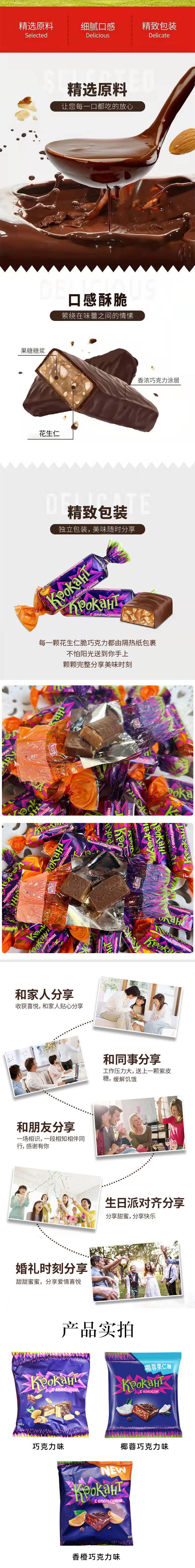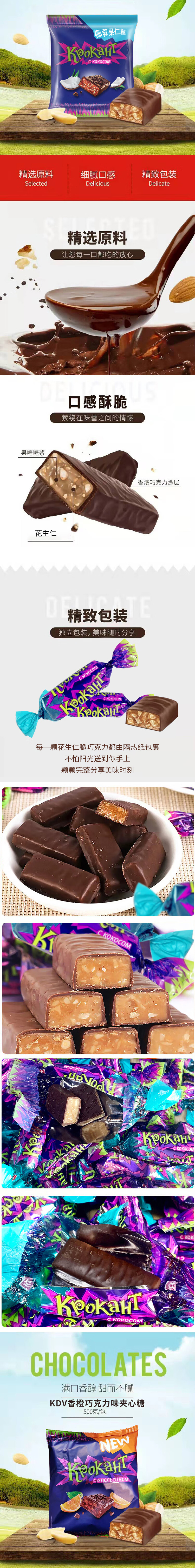 俄罗斯进口KDV巧克力夹心糖500g【紫皮糖】多口味