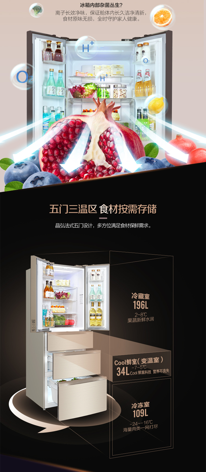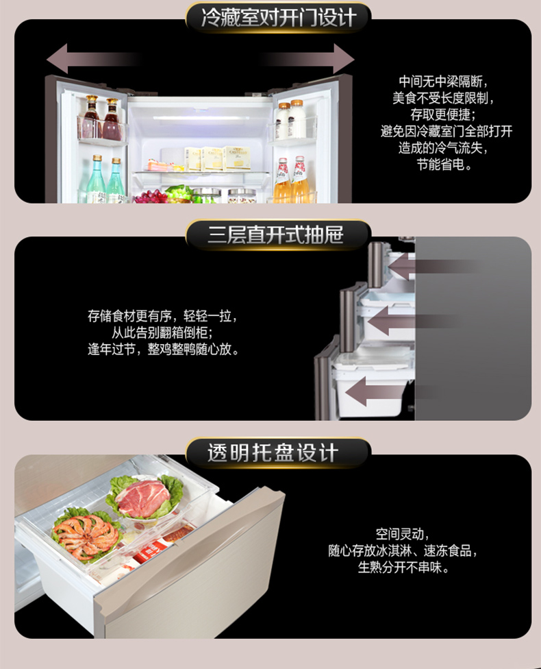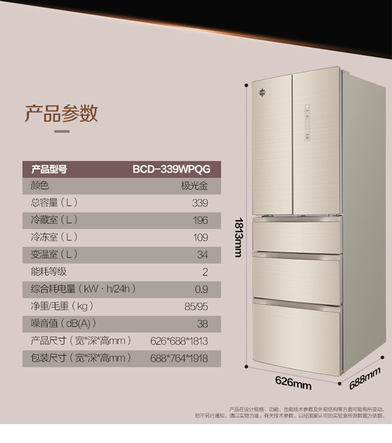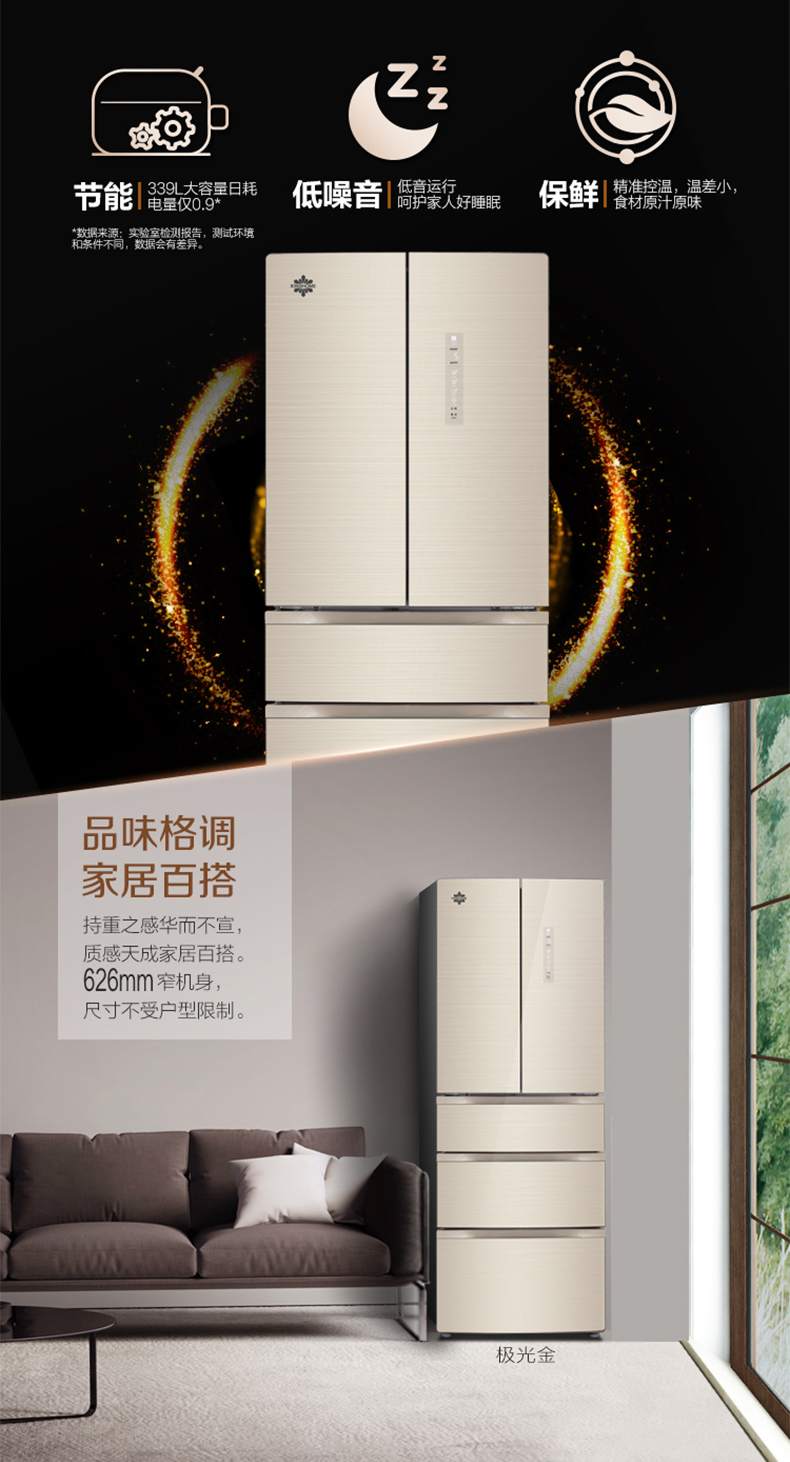 格力晶弘冰箱 变频无霜 瞬冻科技 食材保鲜如初 BCD-339WPQG/极光金