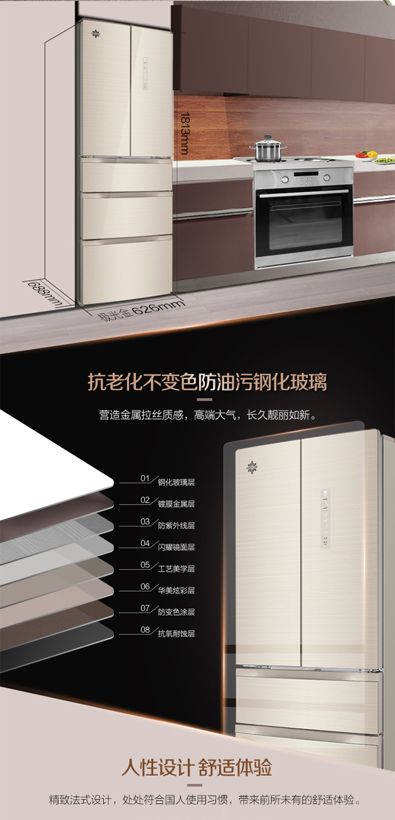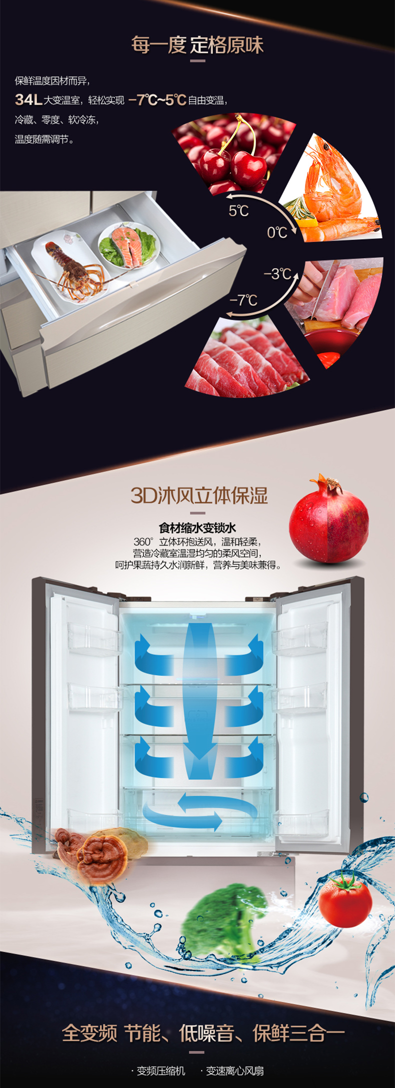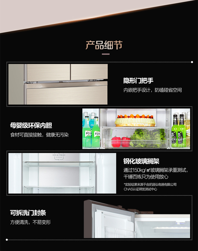 格力晶弘冰箱 变频无霜 瞬冻科技 食材保鲜如初 BCD-339WPQG/极光金