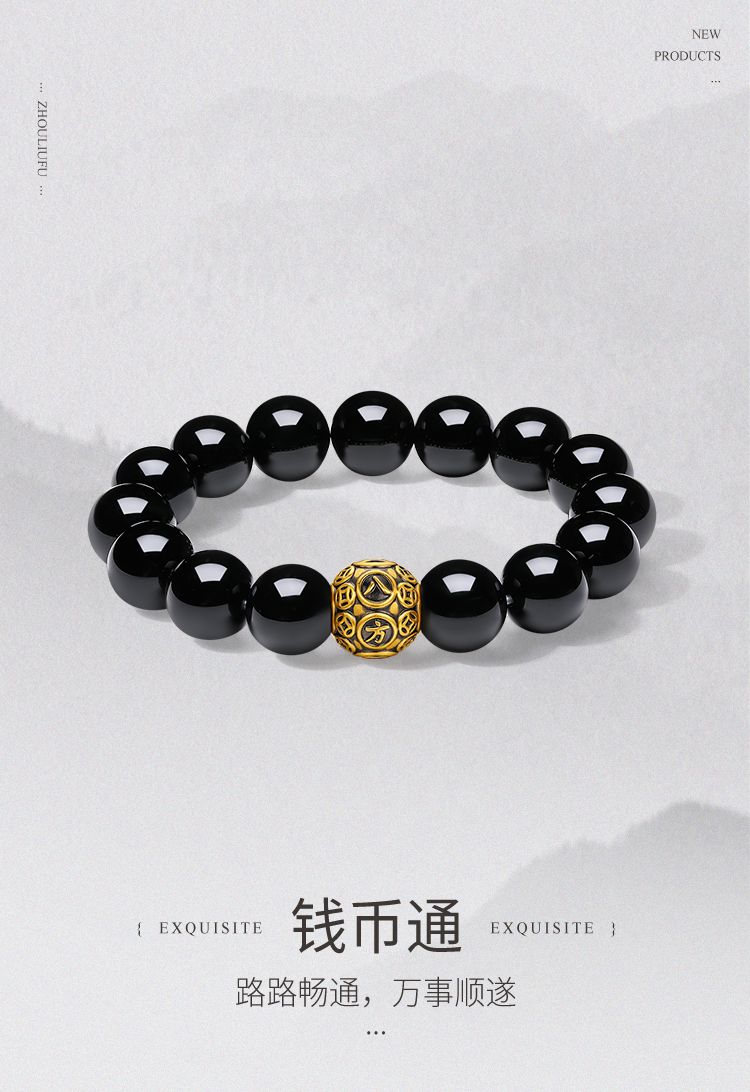 周六福5d硬金定价黄金手绳男款钱币通手串旗舰店送男友礼七夕礼物