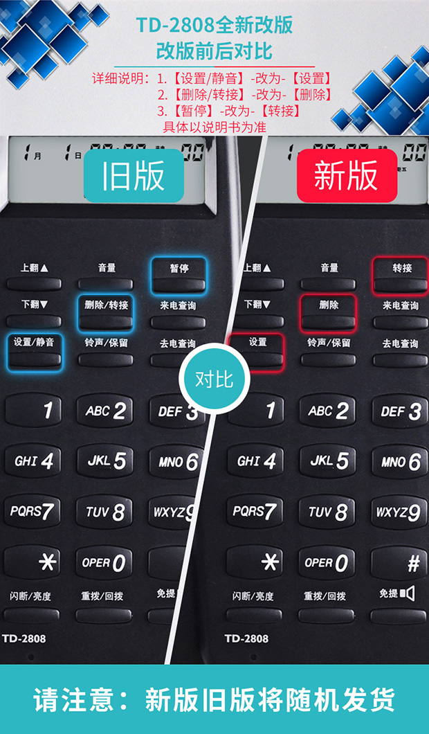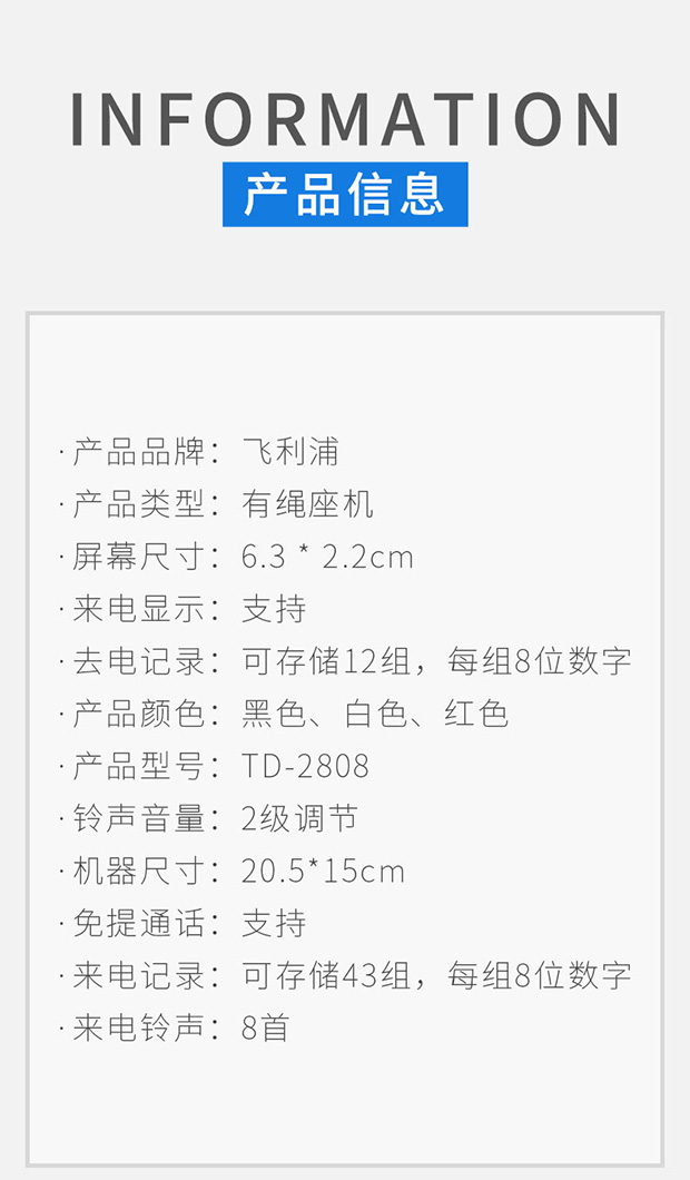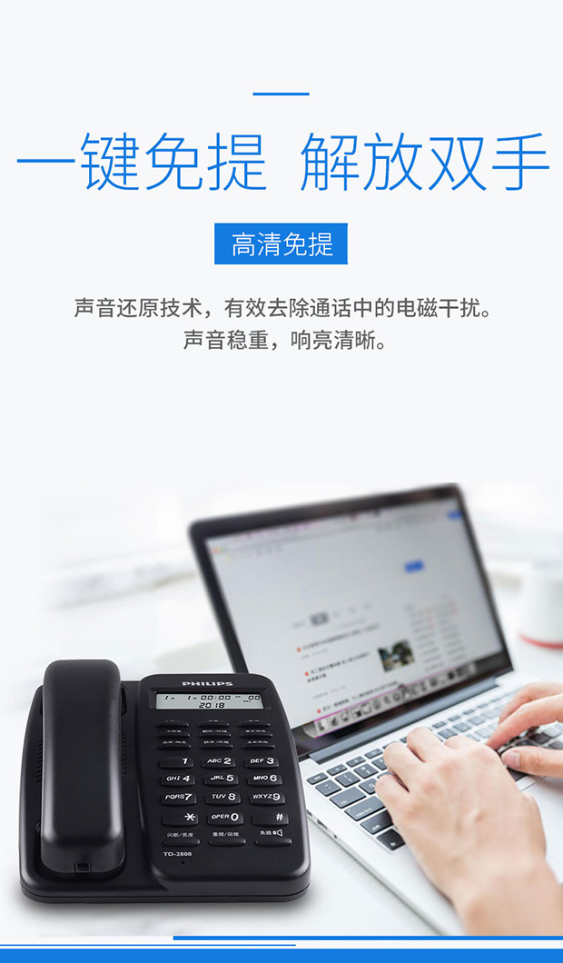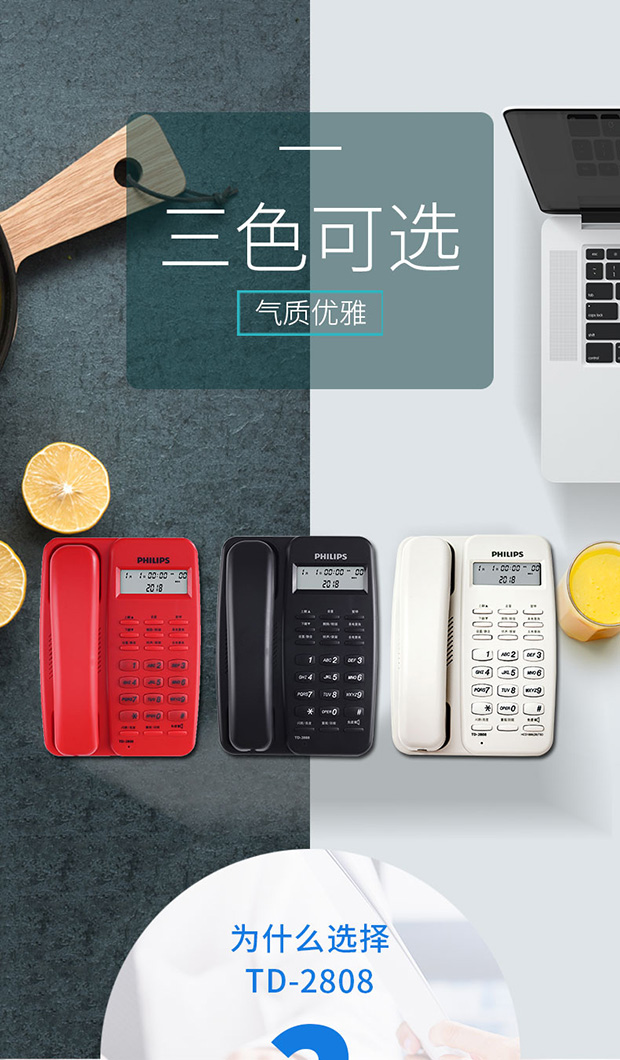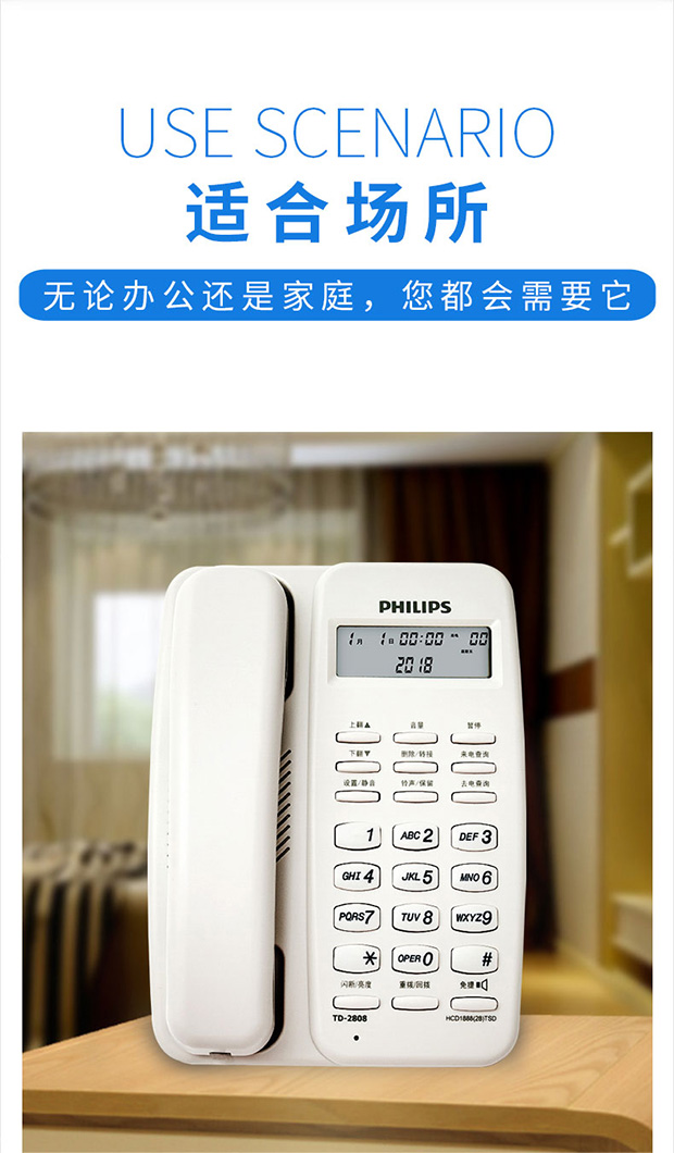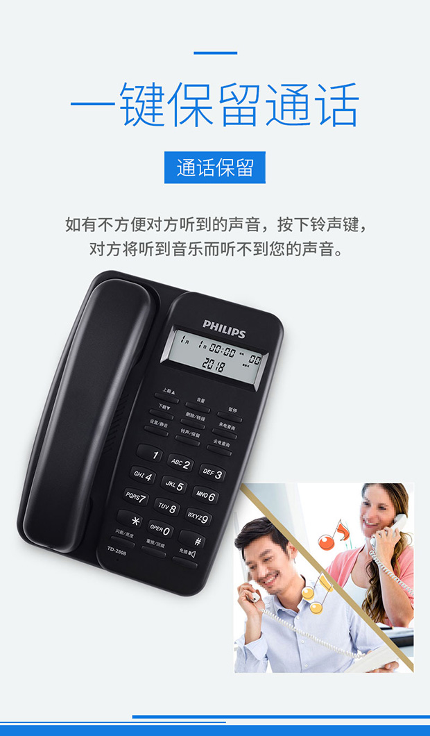 飞利浦(PHILIPS)电话机座机 固定电话 办公家用 免电池设计 来电显示 TD-2808 (黑色)