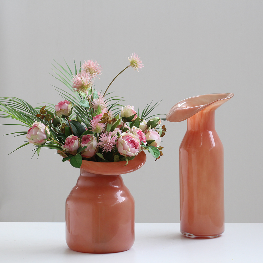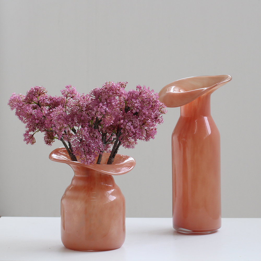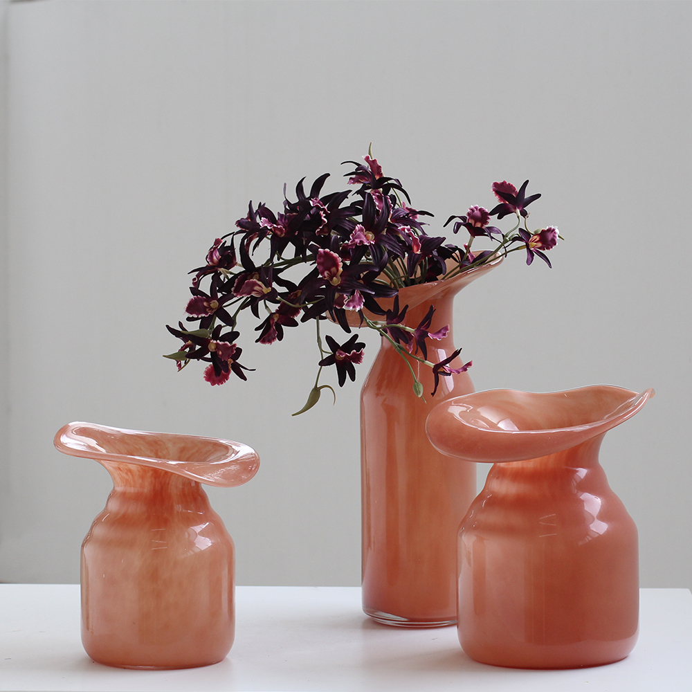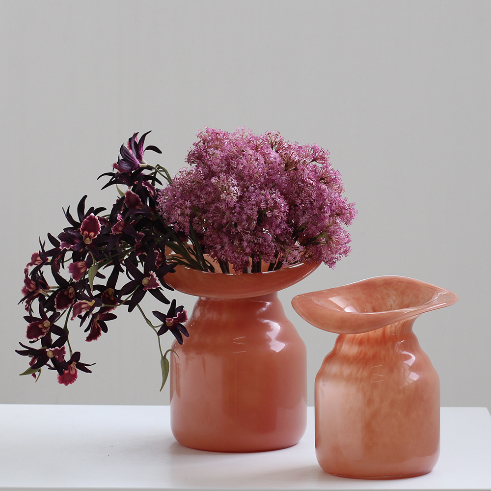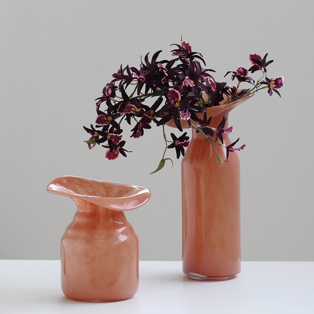 粉色磁粉黑边口玻璃花瓶花器水培花插工艺品