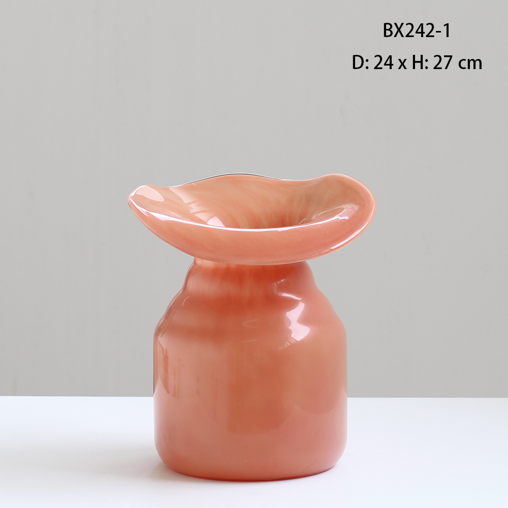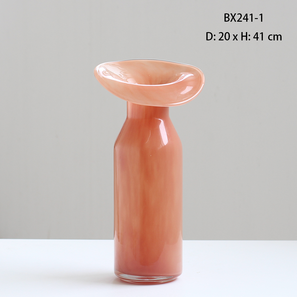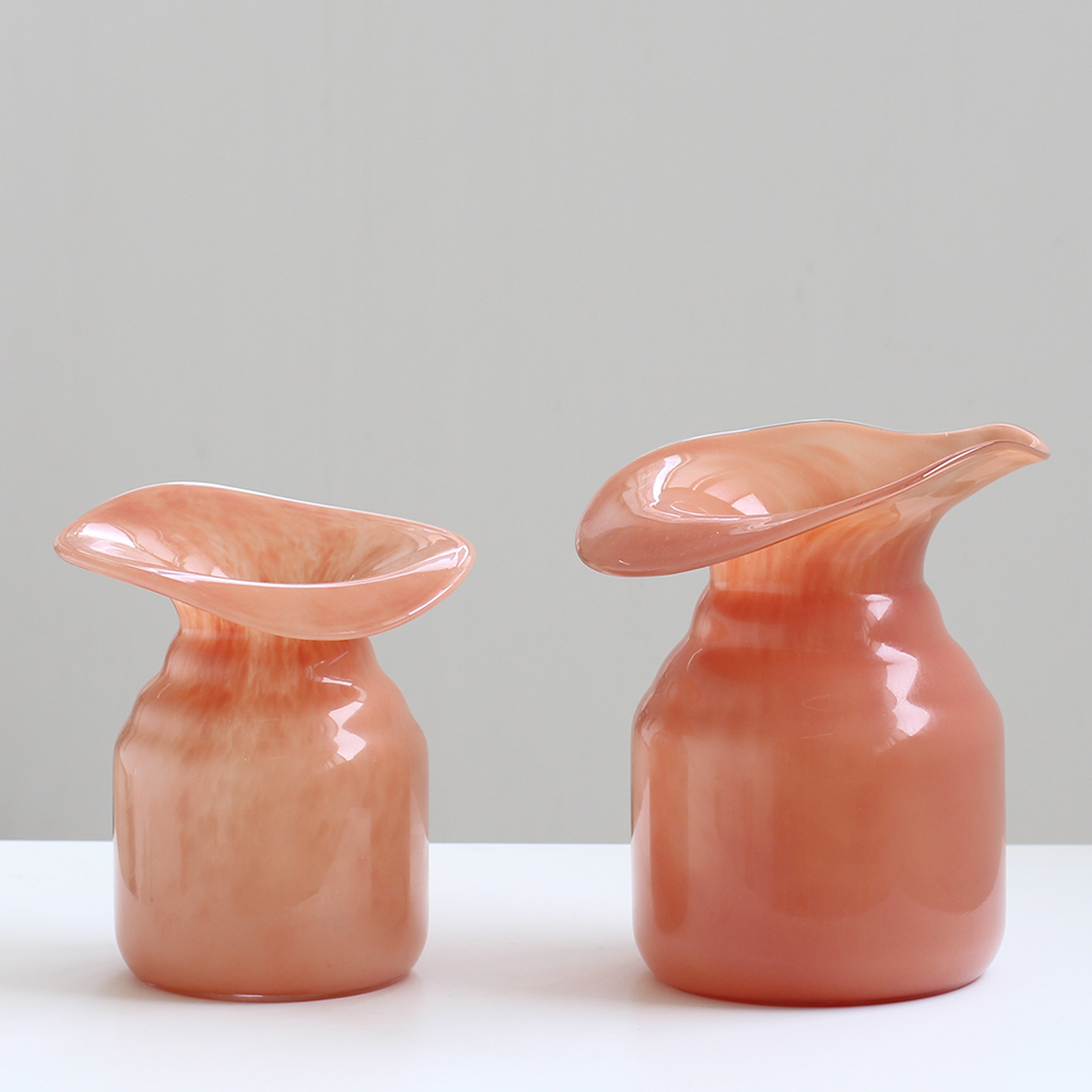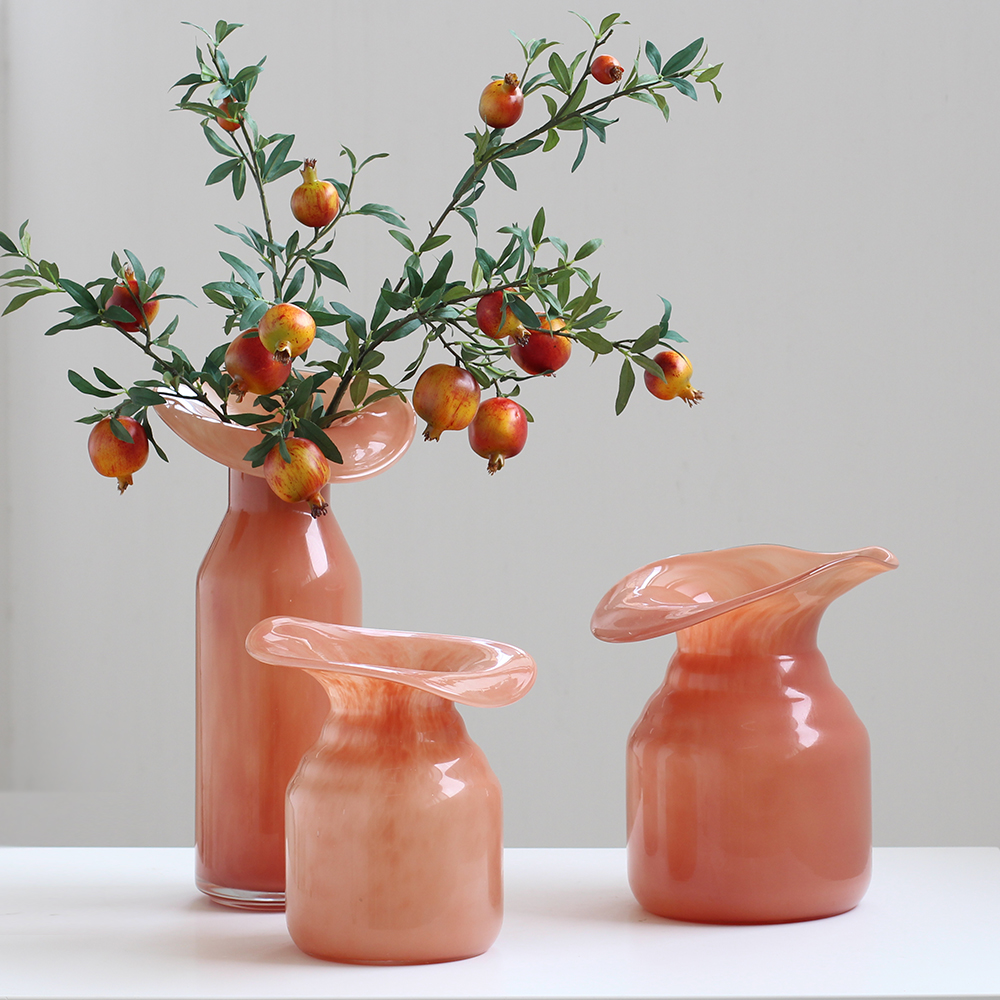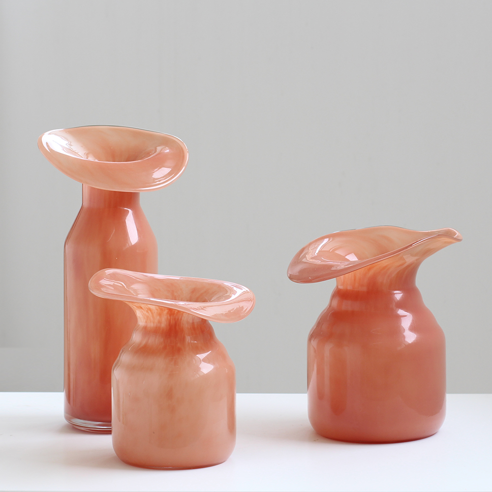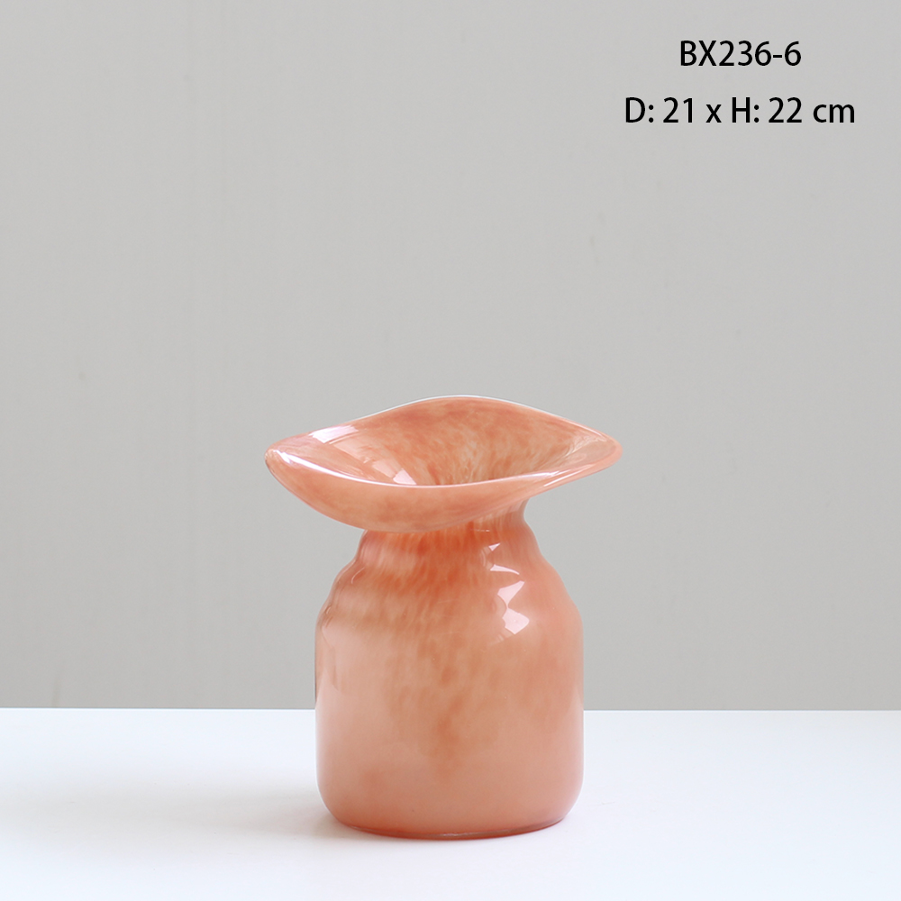 粉色磁粉黑边口玻璃花瓶花器水培花插工艺品