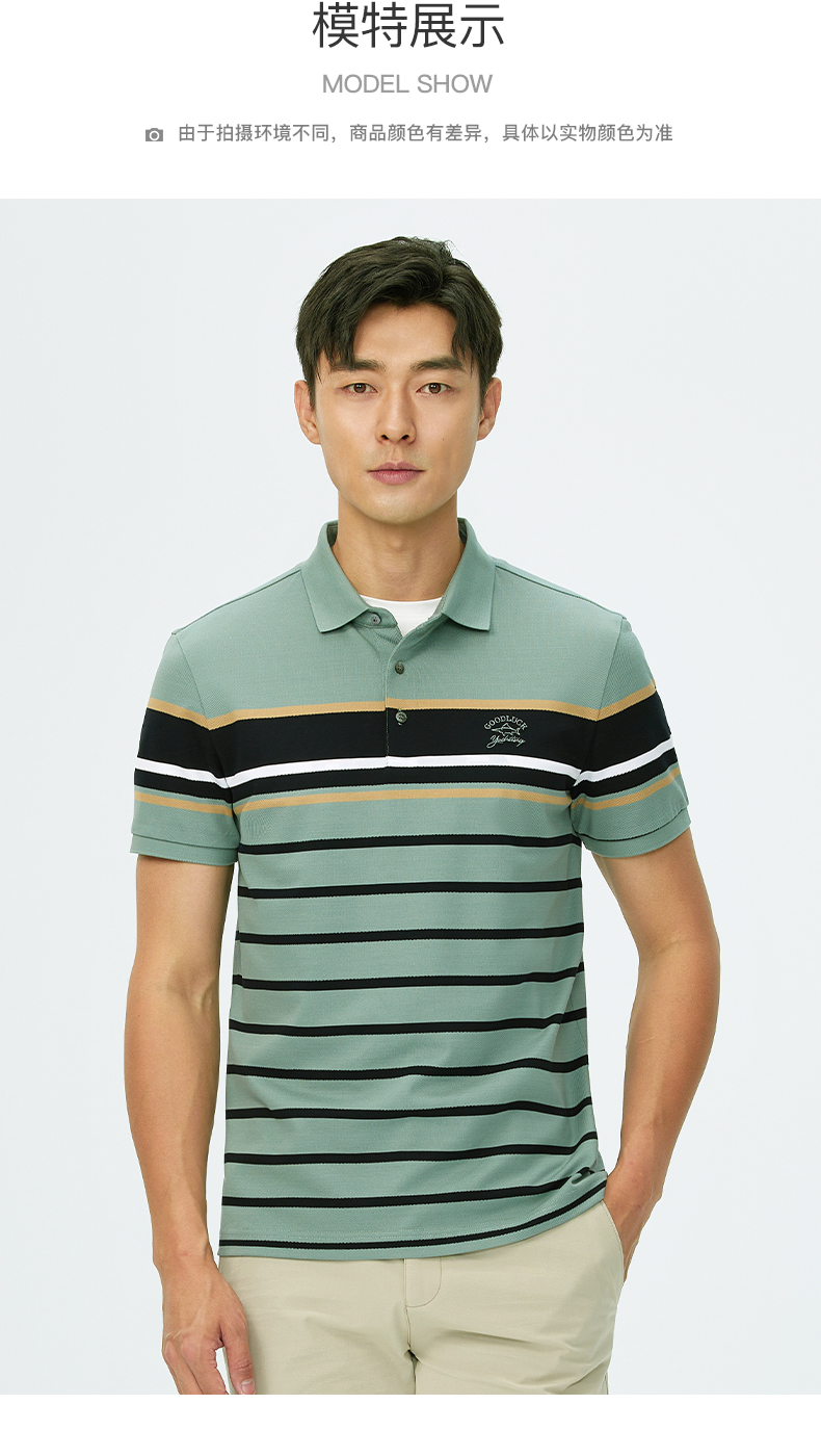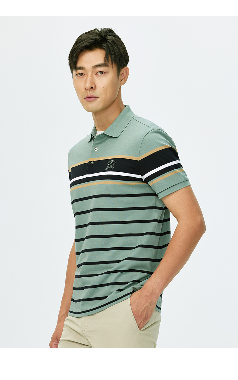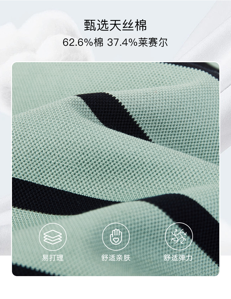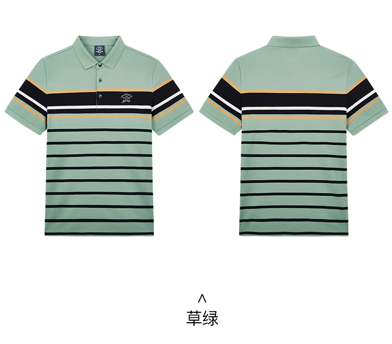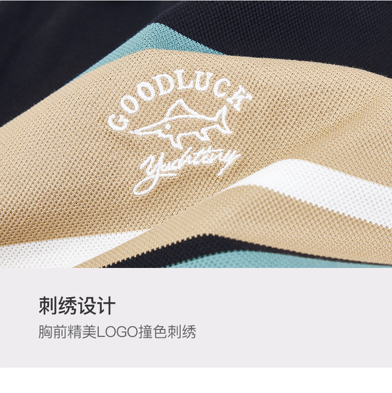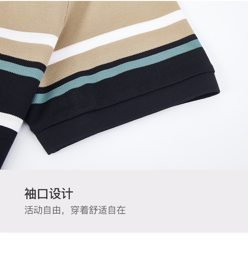 【莱赛尔】德鲨夏季新款短袖翻领t恤男条纹撞色休闲POLO衫