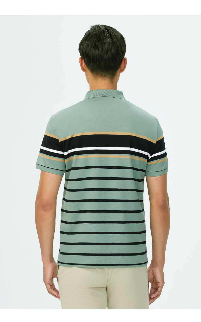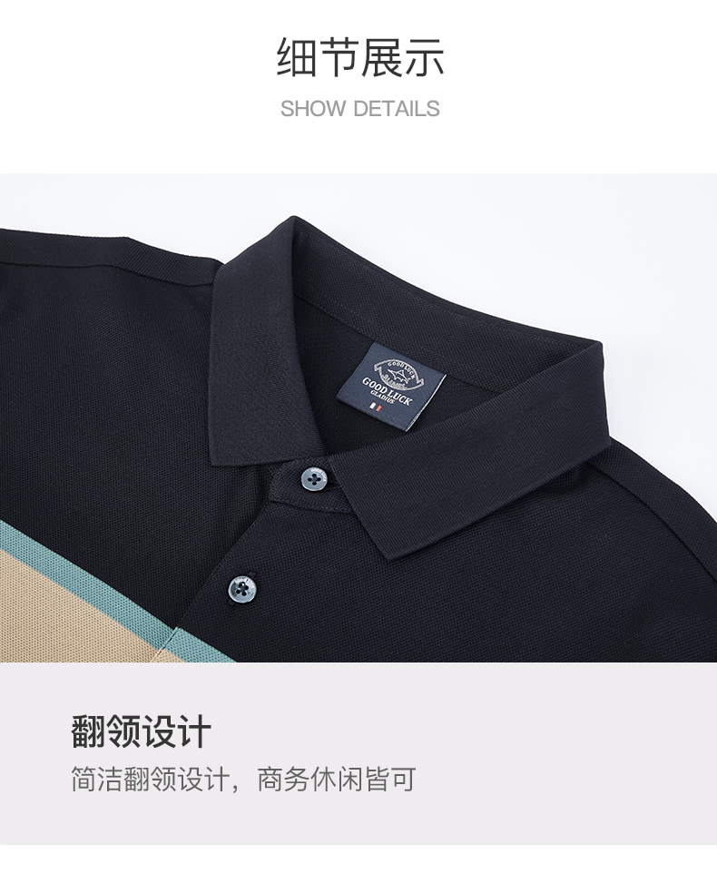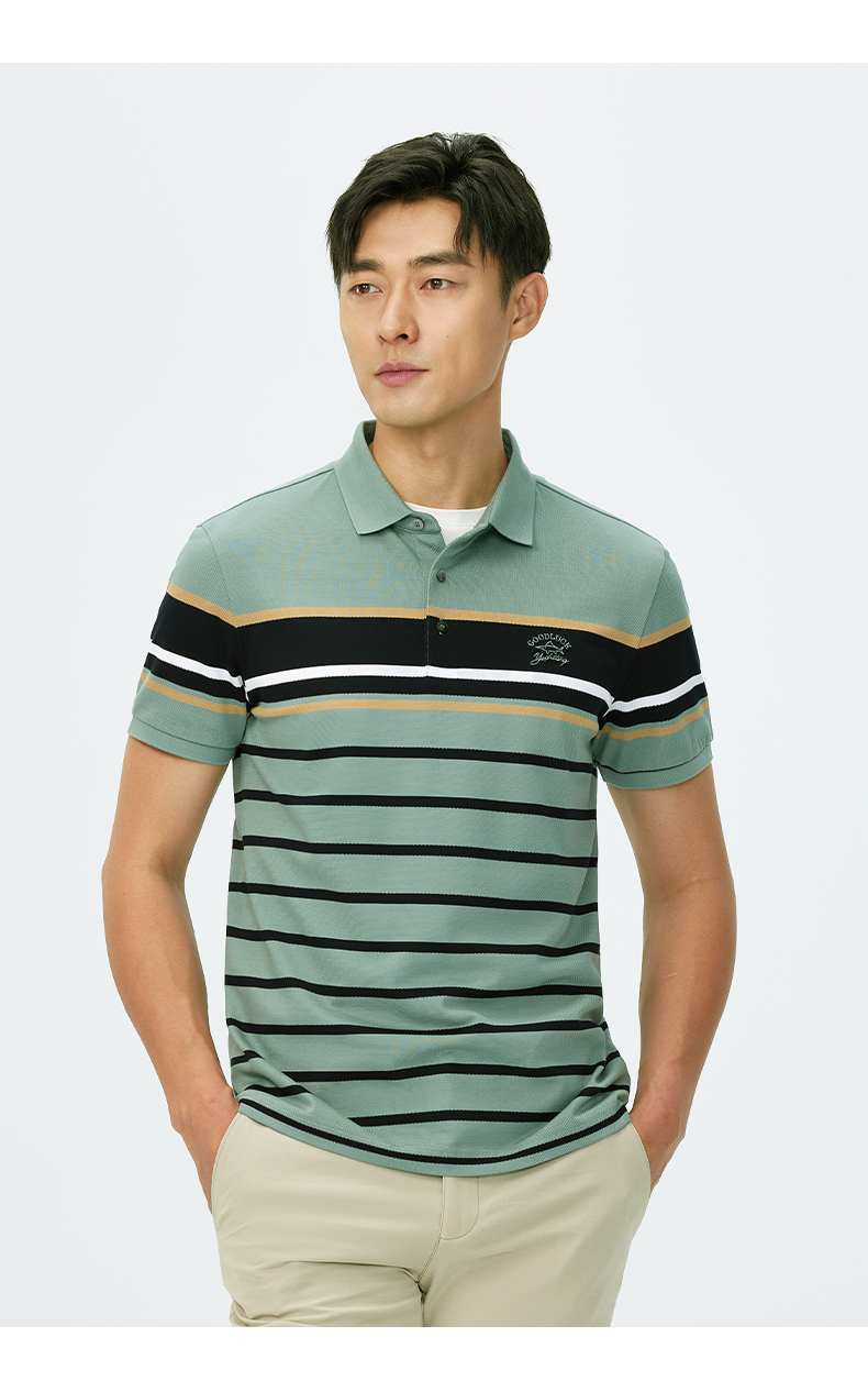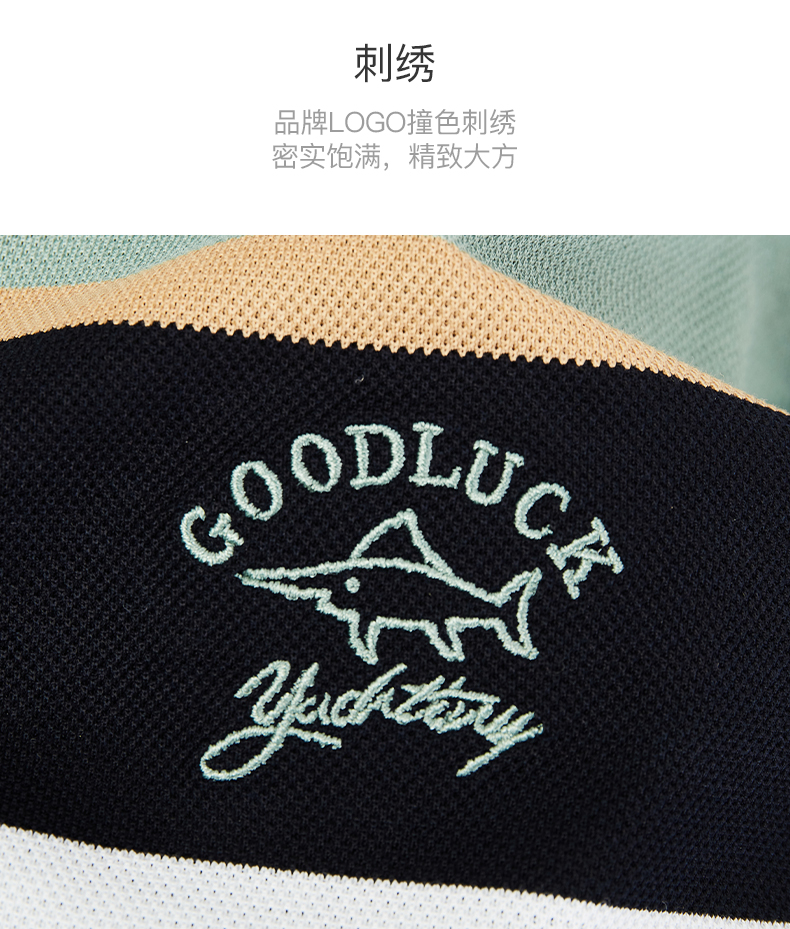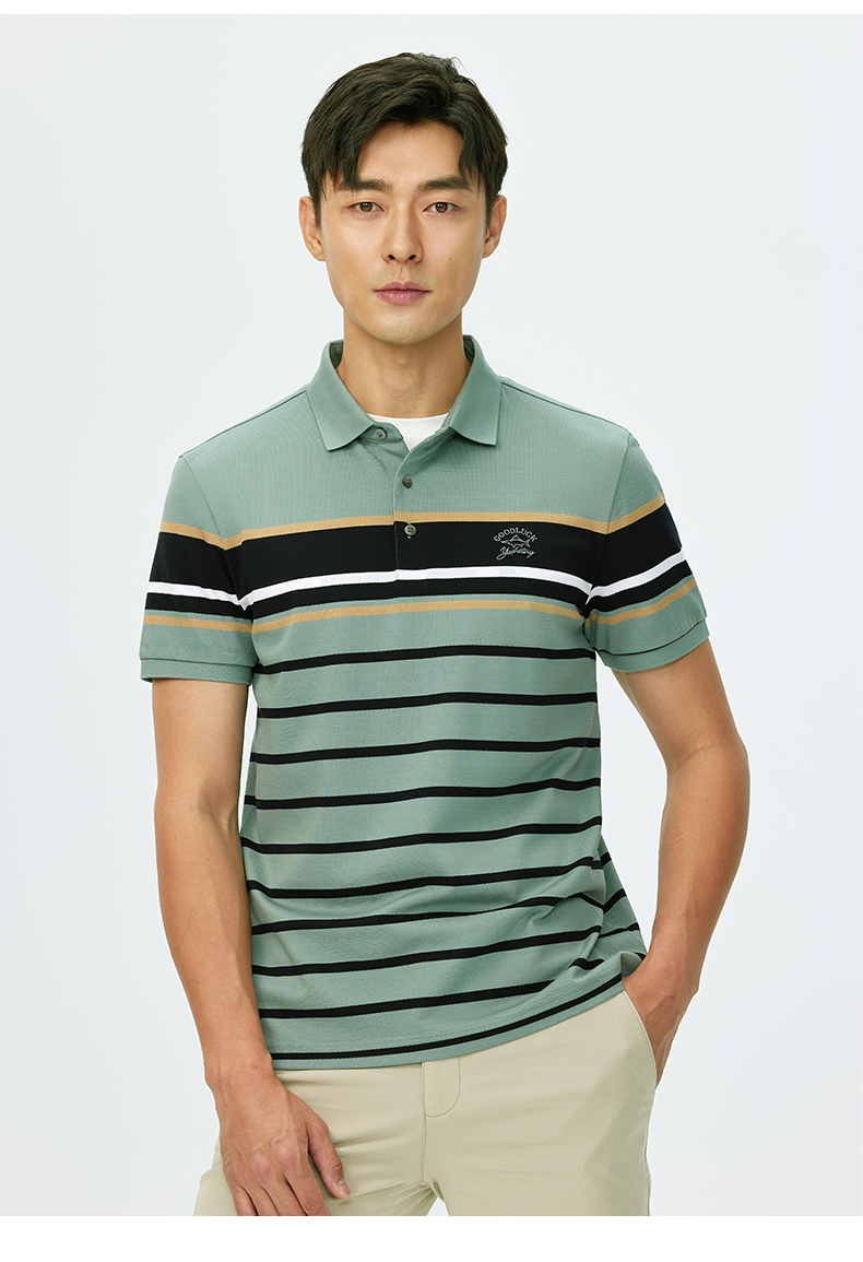 【莱赛尔】德鲨夏季新款短袖翻领t恤男条纹撞色休闲POLO衫
