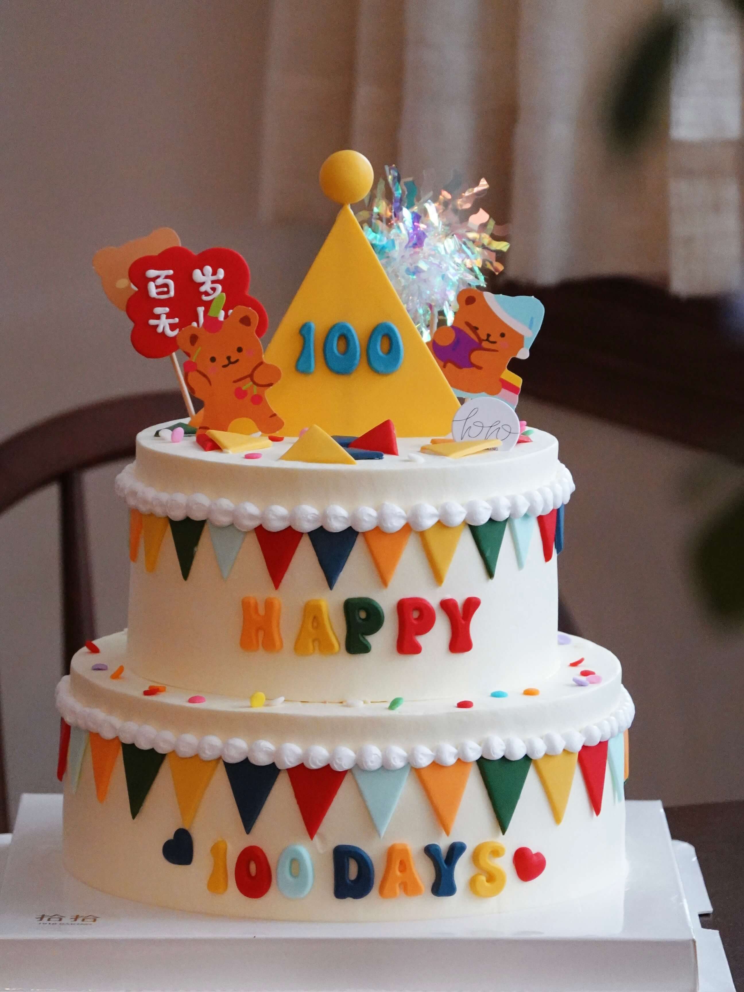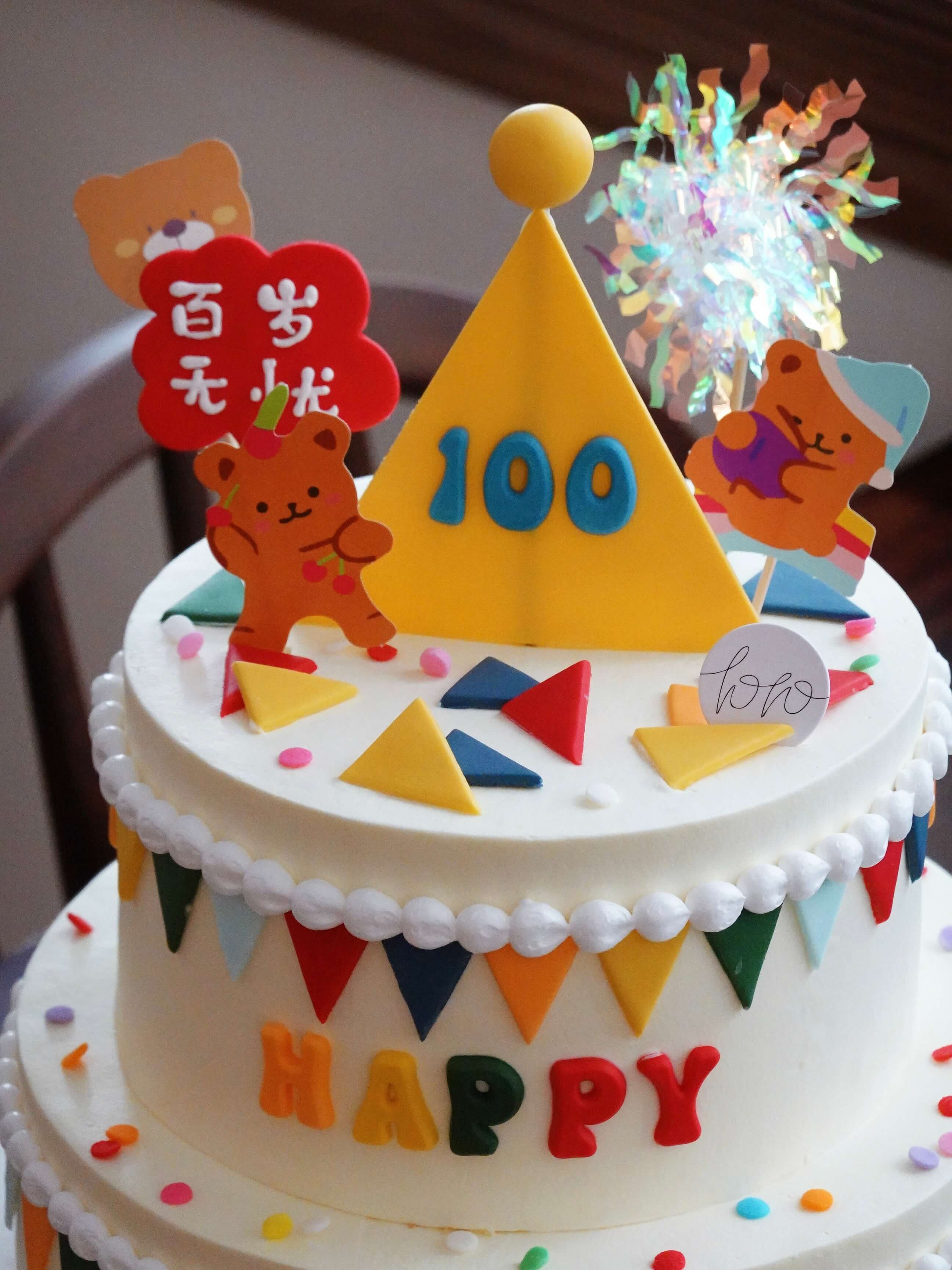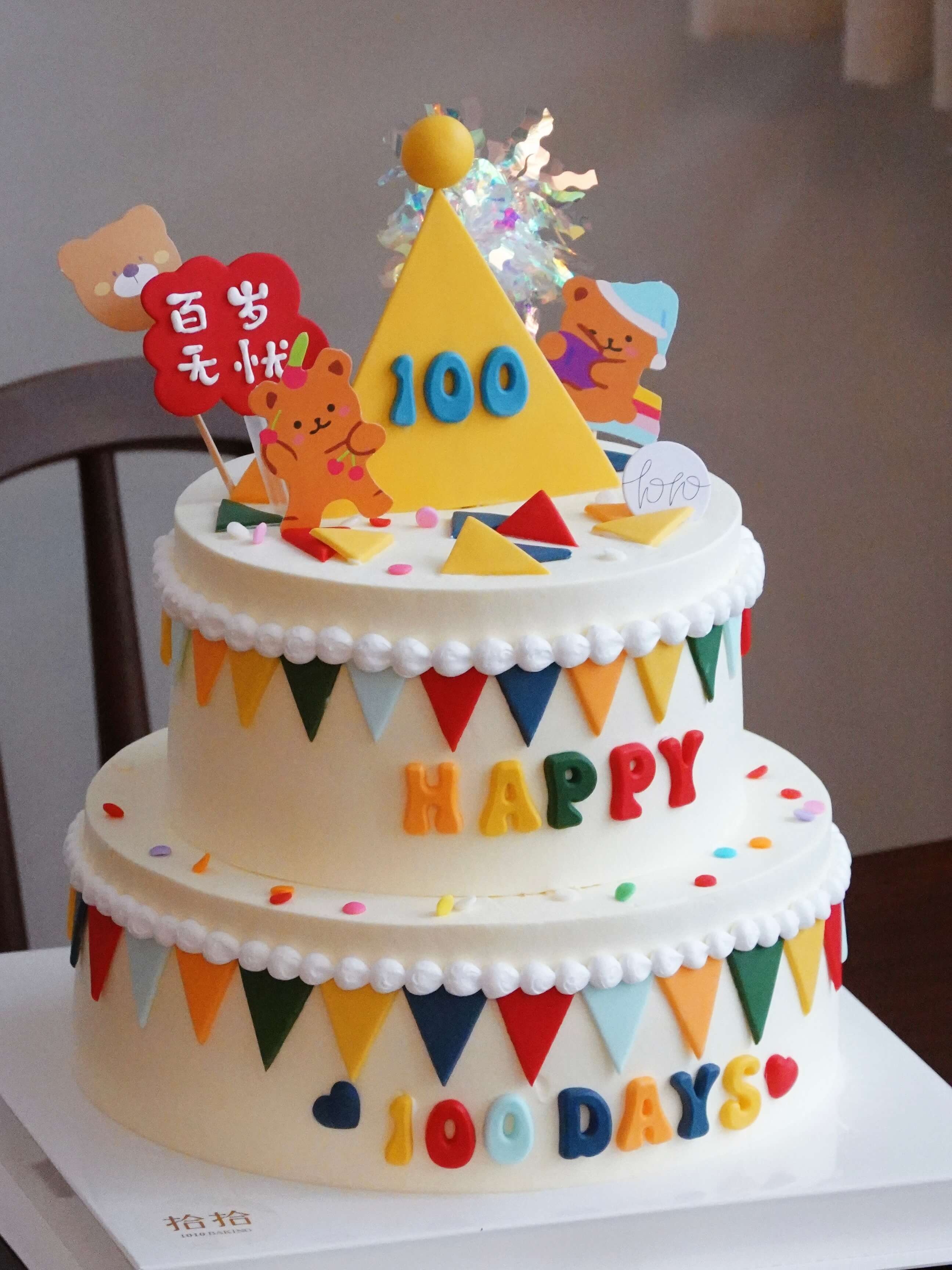 「百岁无忧·快乐小熊」满月百日周岁·翻糖巧克力·100%动物奶油(附图6+8寸双层·提前3天预订)