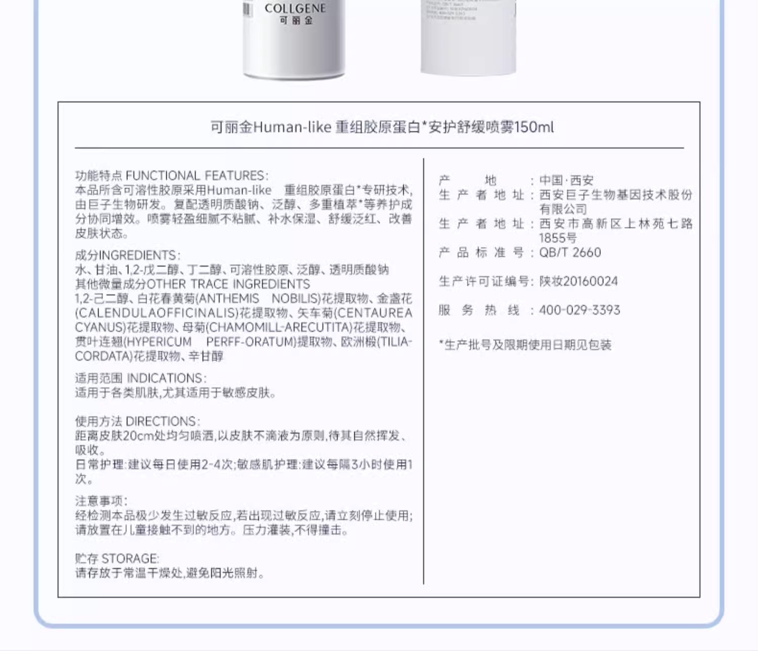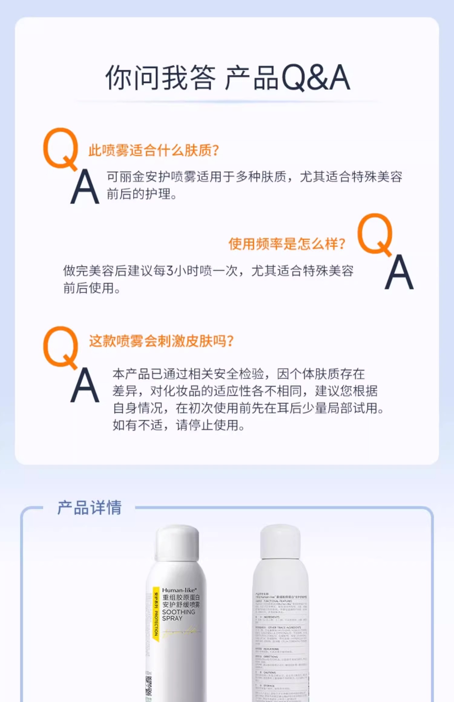 【可丽金安护舒缓喷雾】可丽金Human-like重组胶原蛋白安护舒缓喷雾150ml/瓶