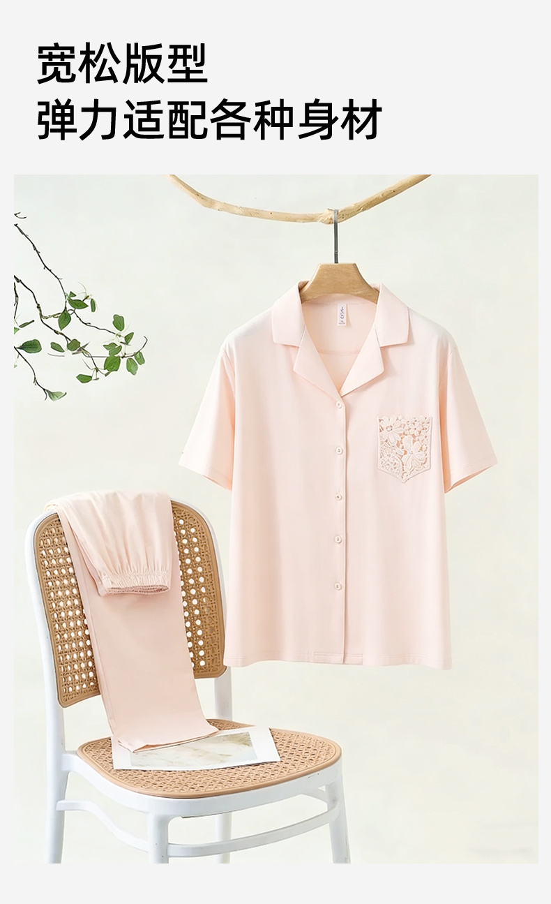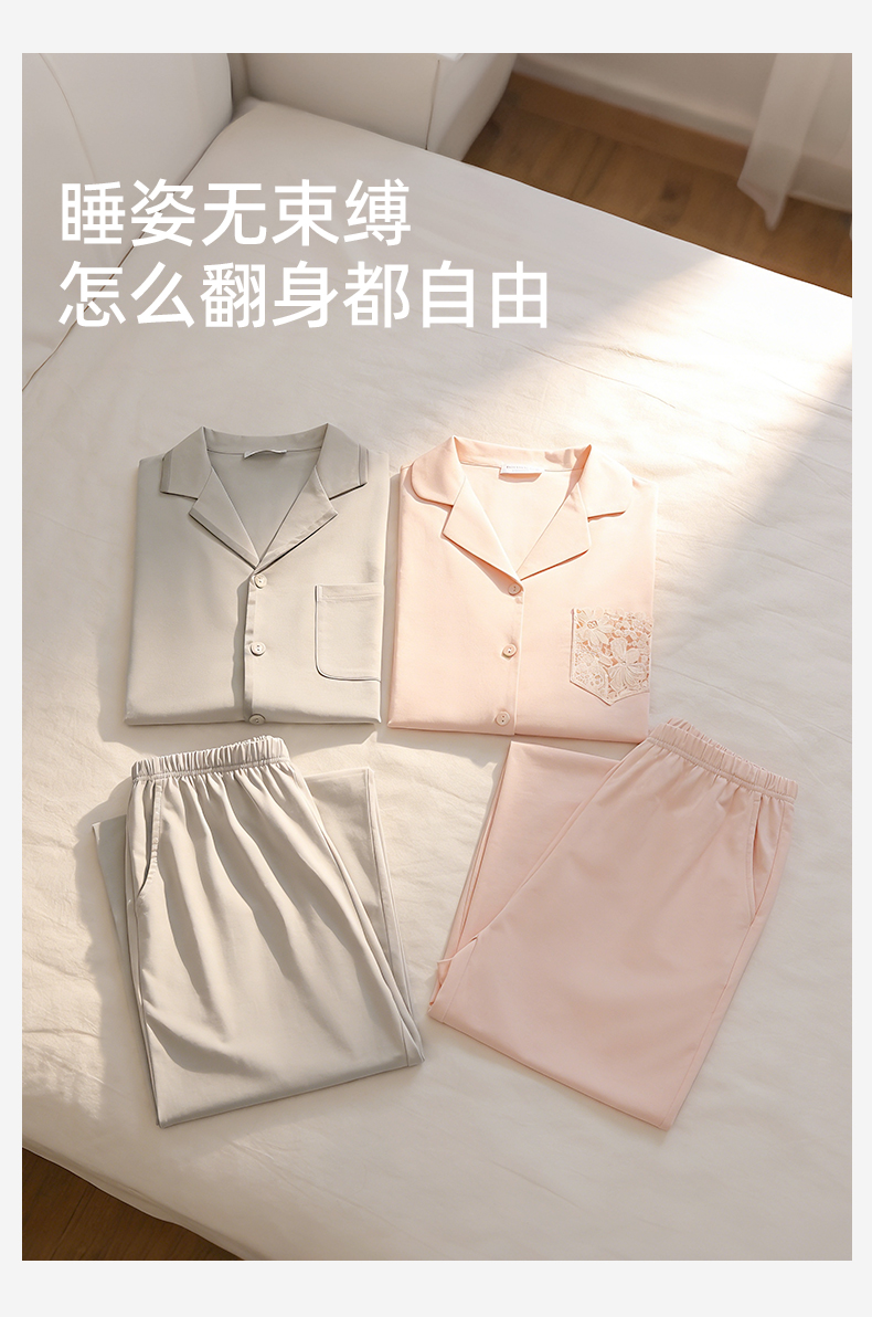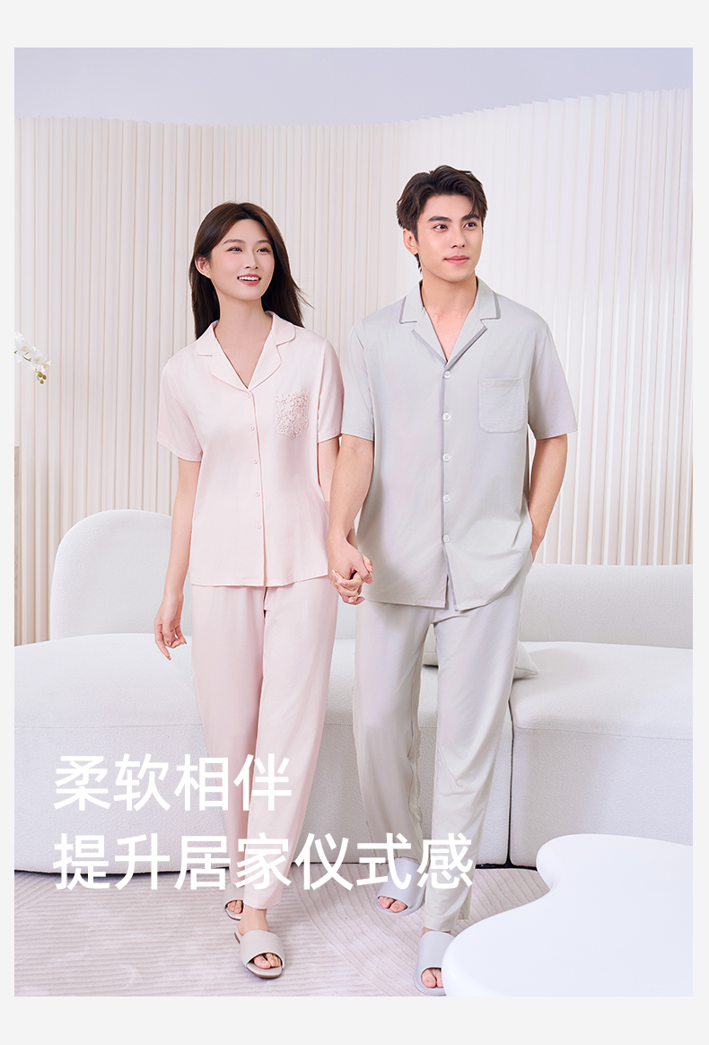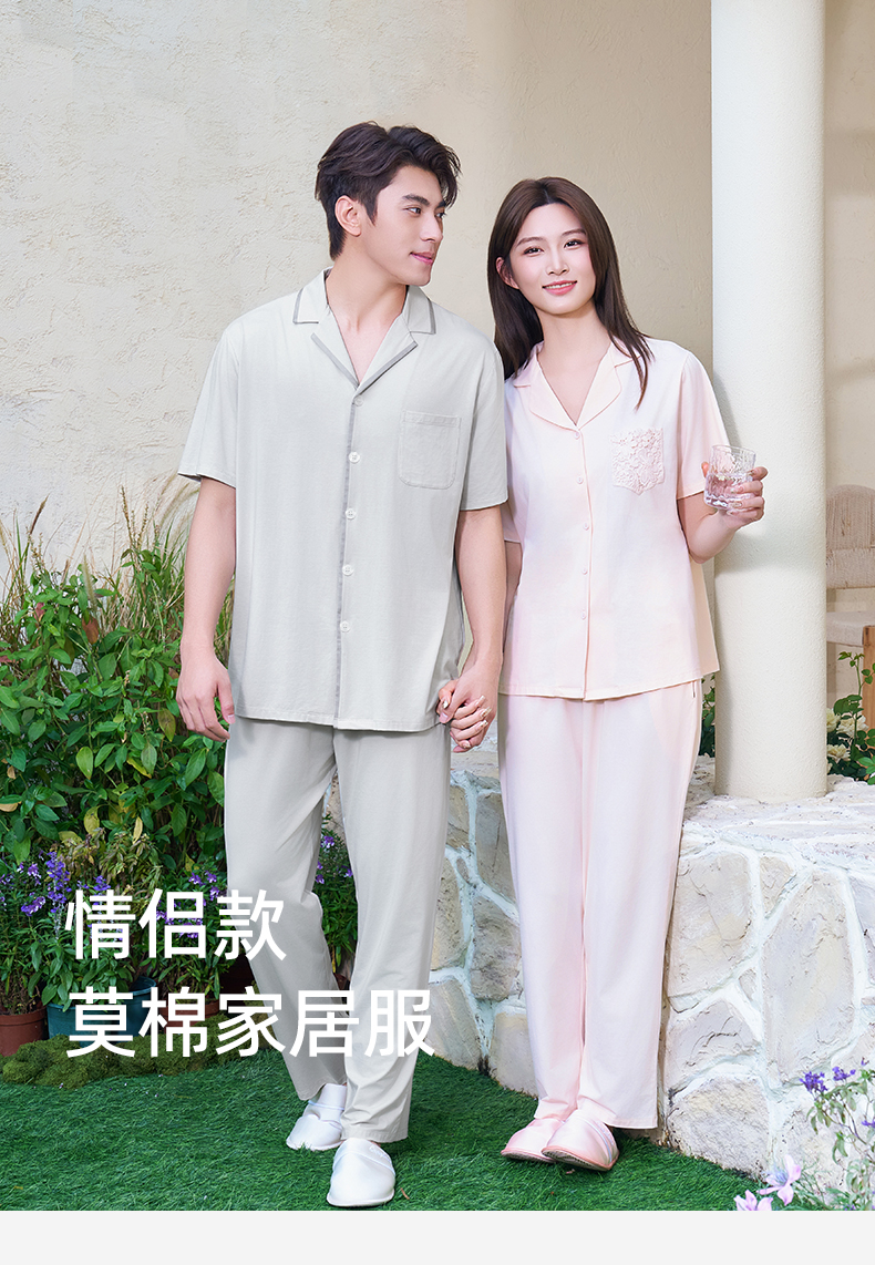 【商场同款】熳洁儿 开衫莫棉家居服春夏新款短袖九分裤情侣套装26203220/26203920