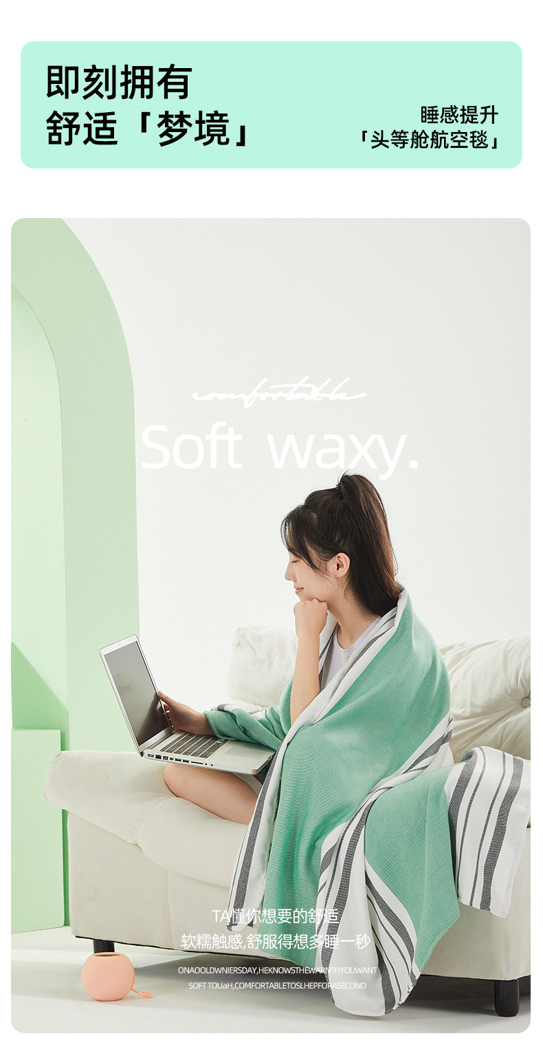 「四款配色!轻奢质感」蕉下航空毯头等舱飞机毛毯 轻奢提花毯加厚抗皱磨毛毯柔软午睡毯沙床上用品居家布艺