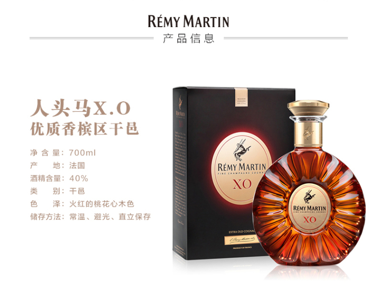 40°人头马(RemyMartin)XO干邑白兰地700ml