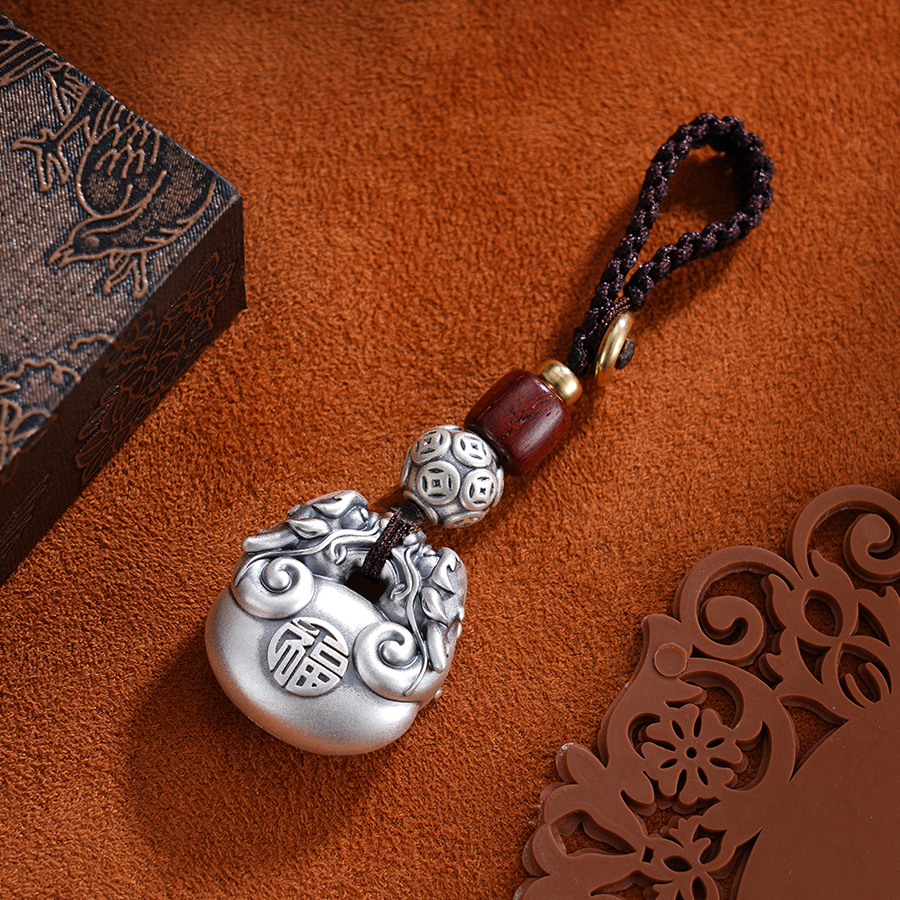 【寓意】:作品灵感源自神兽貔貅,两只貔貅以对称的姿态,共同构成了一只手提袋造型,寓意着守财护财、财源滚滚。