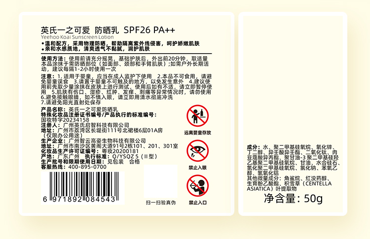 英氏熊猫防晒乳宝宝儿童专用25g/50g敏感肌物理防晒霜隔离紫外线温和 1件装
