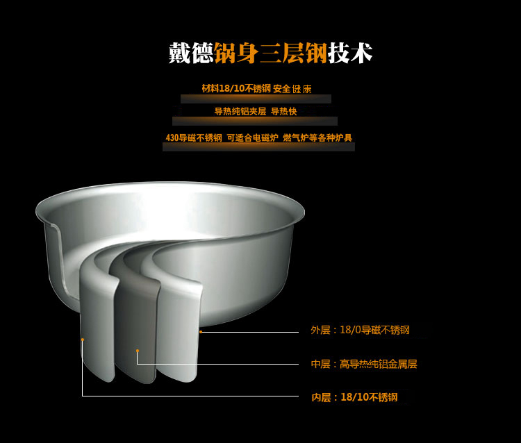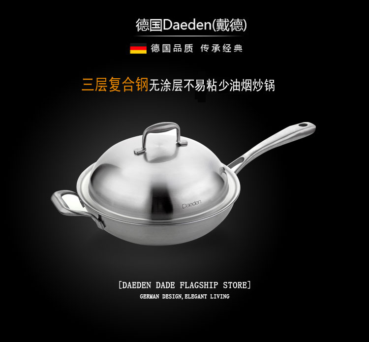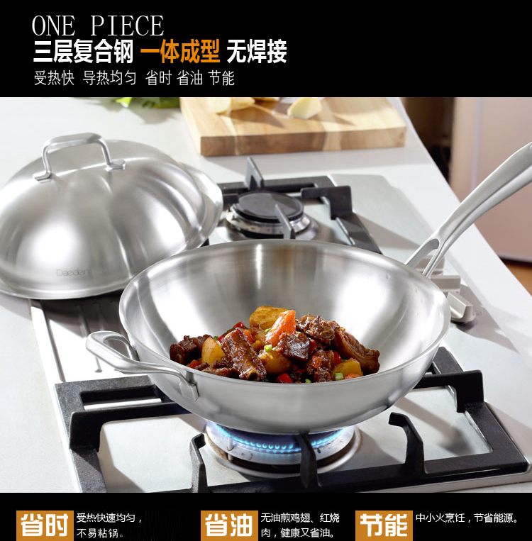 戴德 不锈钢炒锅少油烟锅家用电磁炉燃气炒菜锅